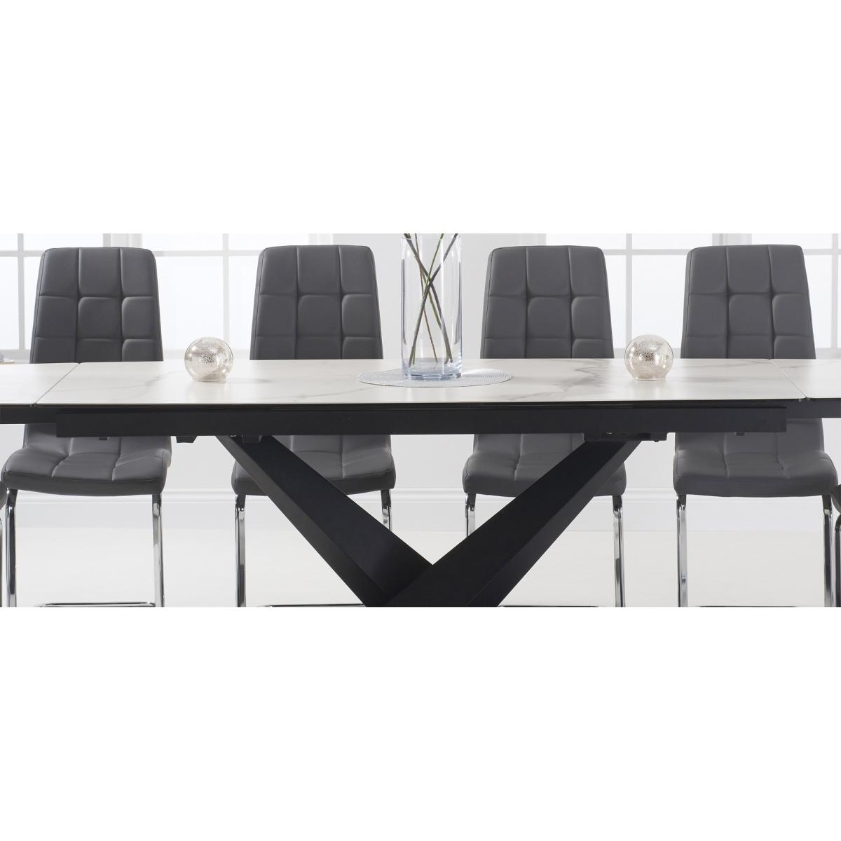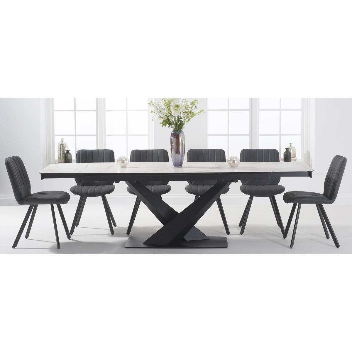 Style and practicality come to mind when thinking of the Jacob dining table. It extends to seat more friends and family and comes with the striking Vigo chairs