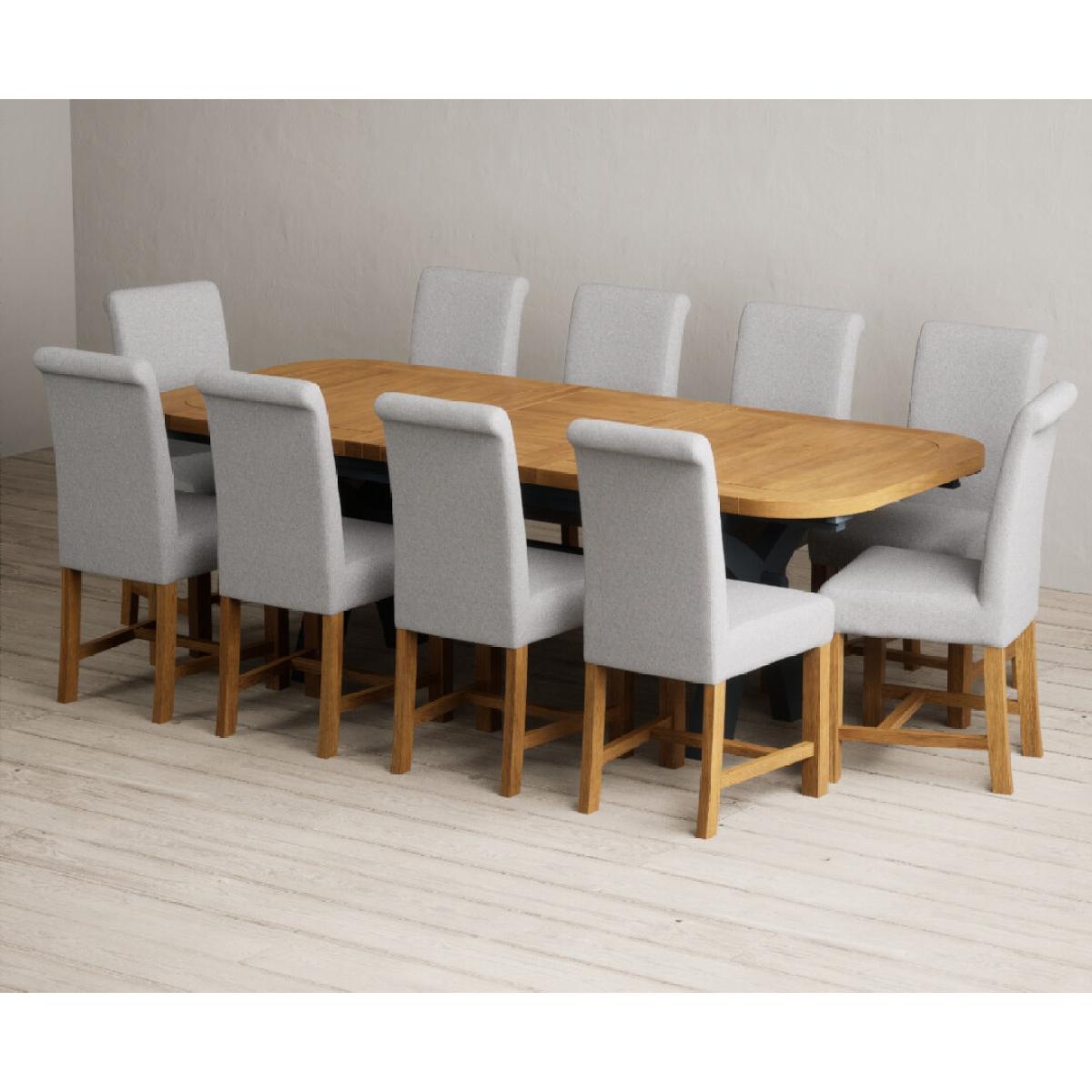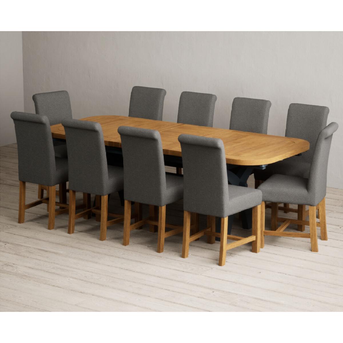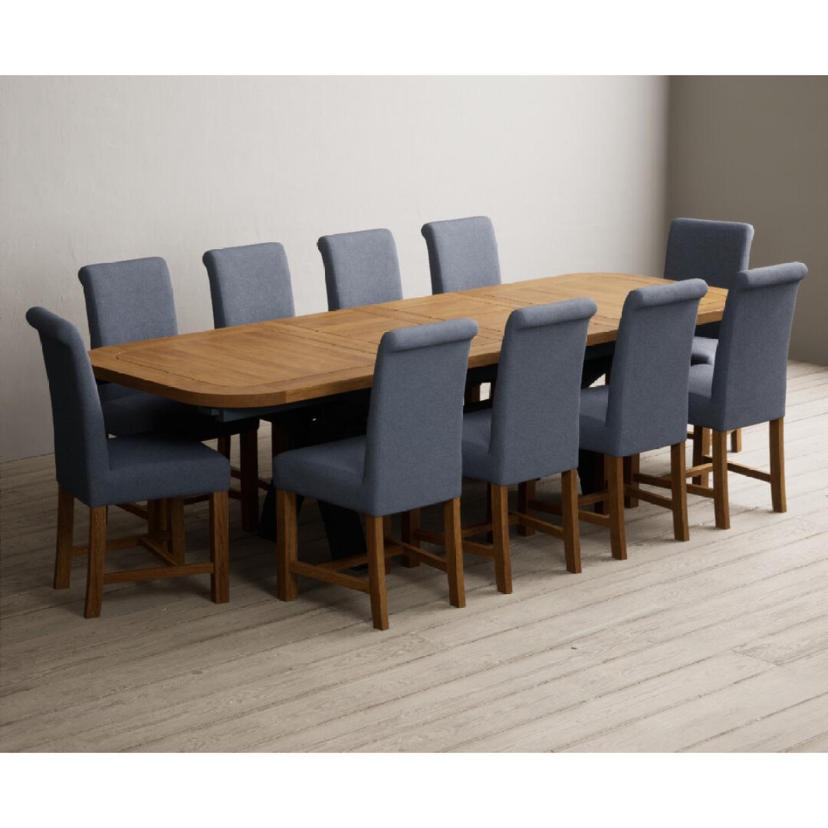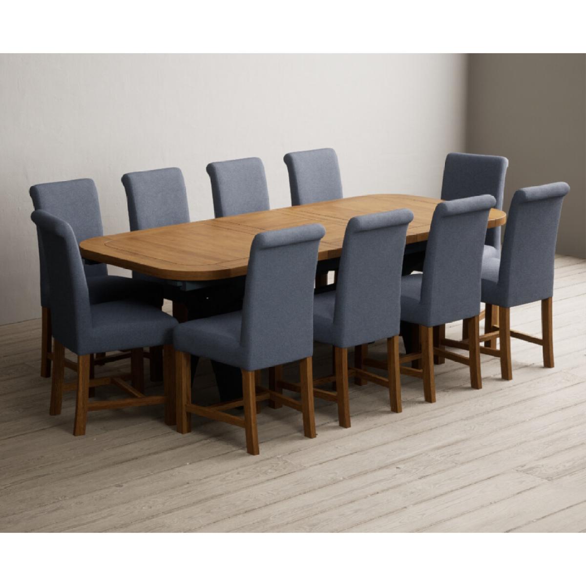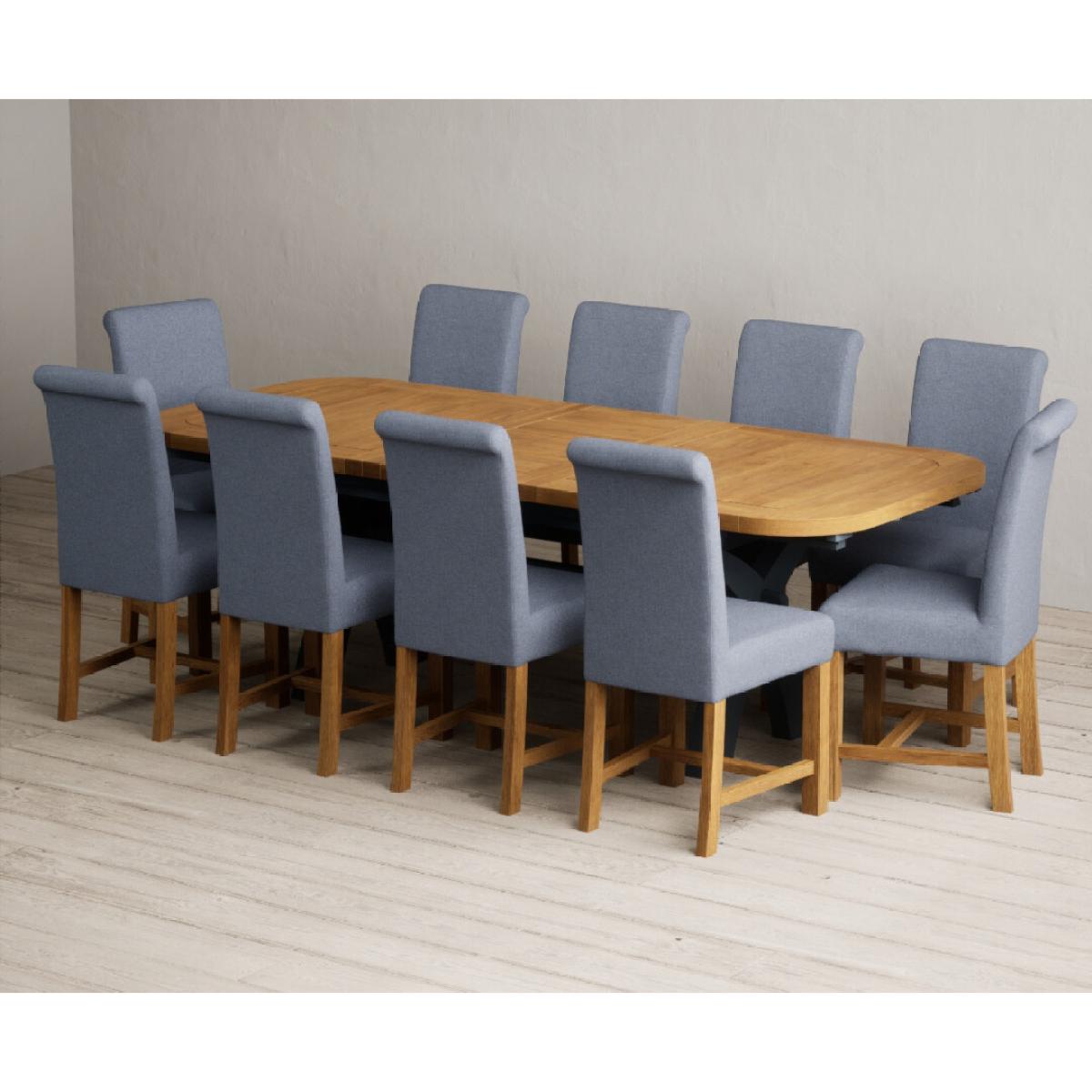 Extending Olympia 180cm Oak and Dark Blue Painted Dining Table with 10 Natural Chairs