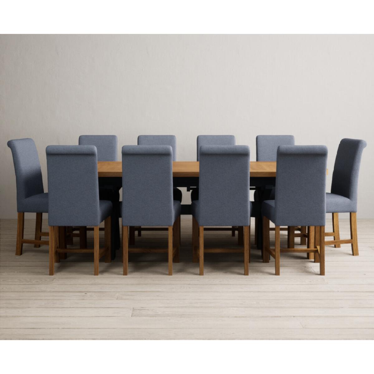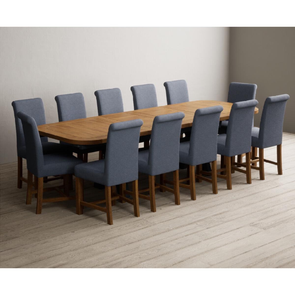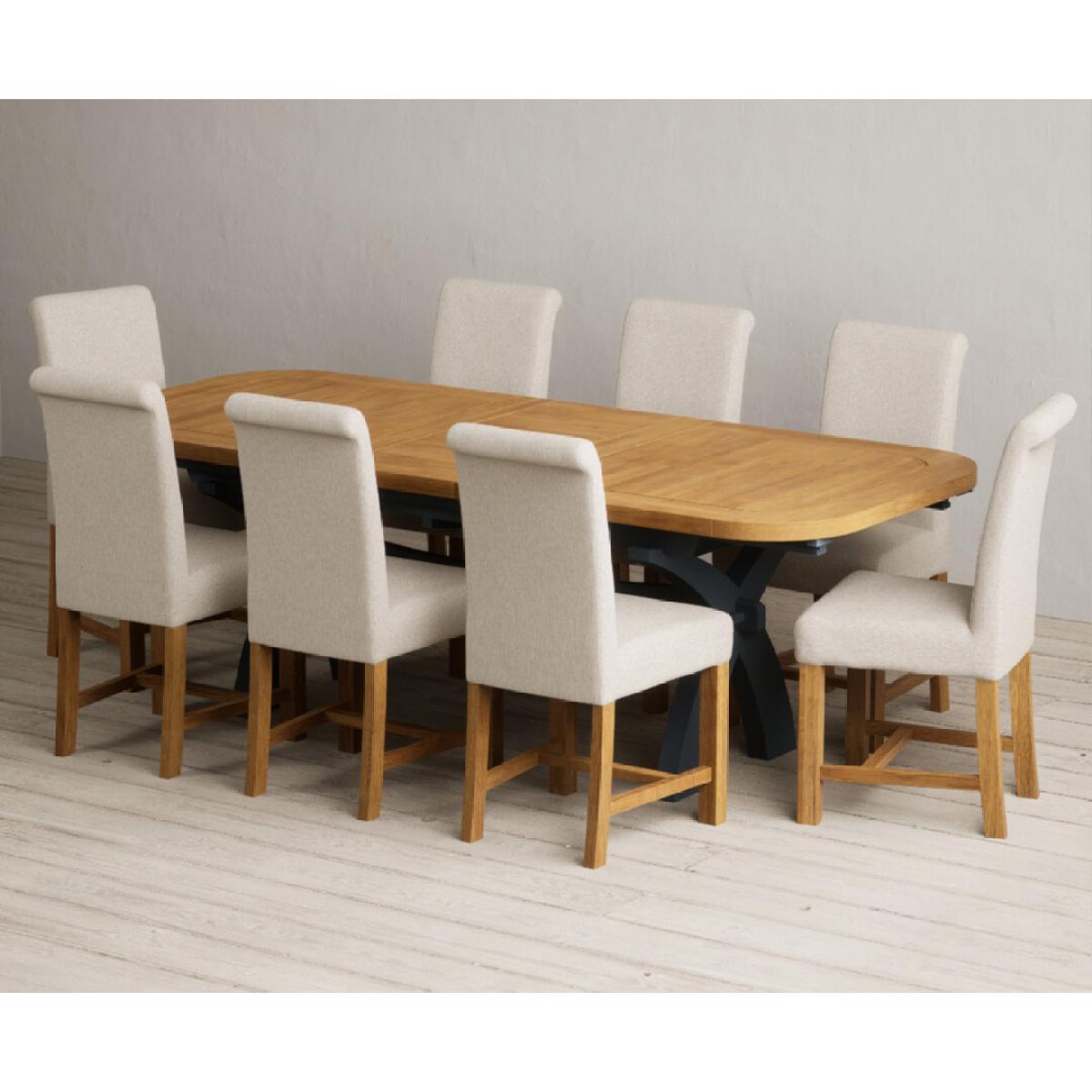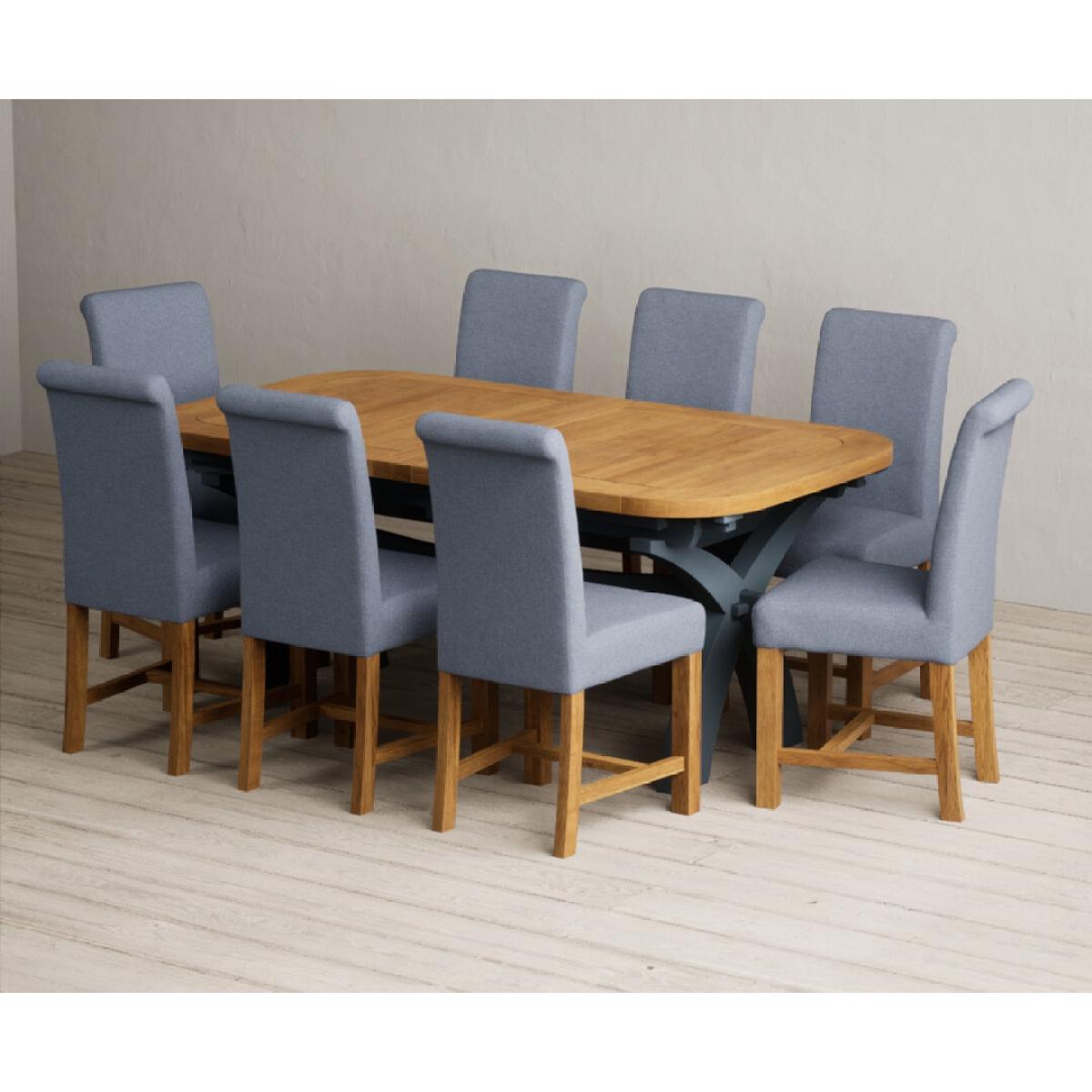 Extending Olympia 180cm Oak and Dark Blue Painted Dining Table with 10 Natural Chairs