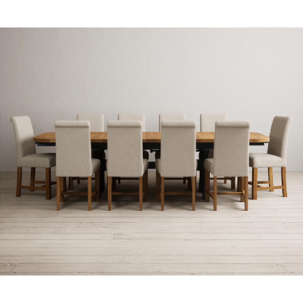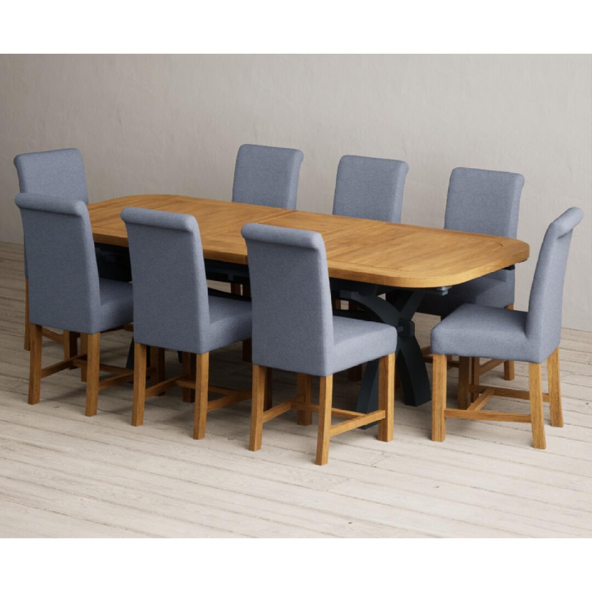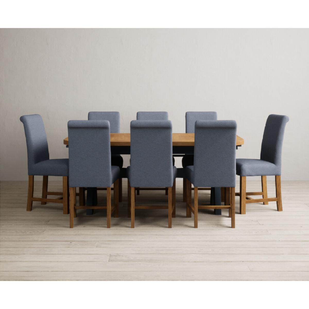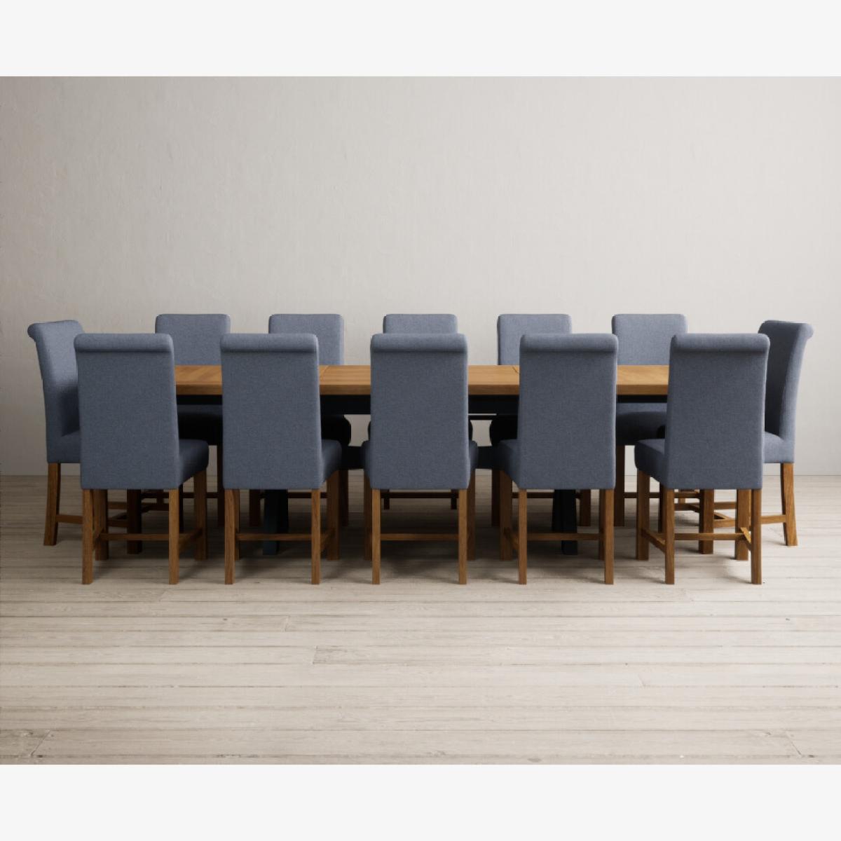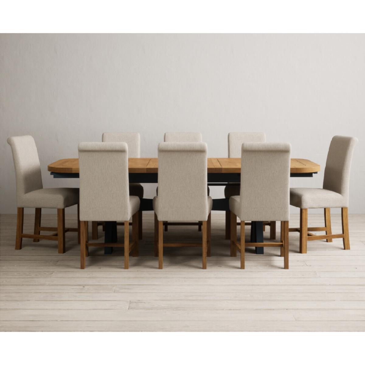 Extending Olympia 180cm Oak and Dark Blue Painted Dining Table with 10 Natural Chairs