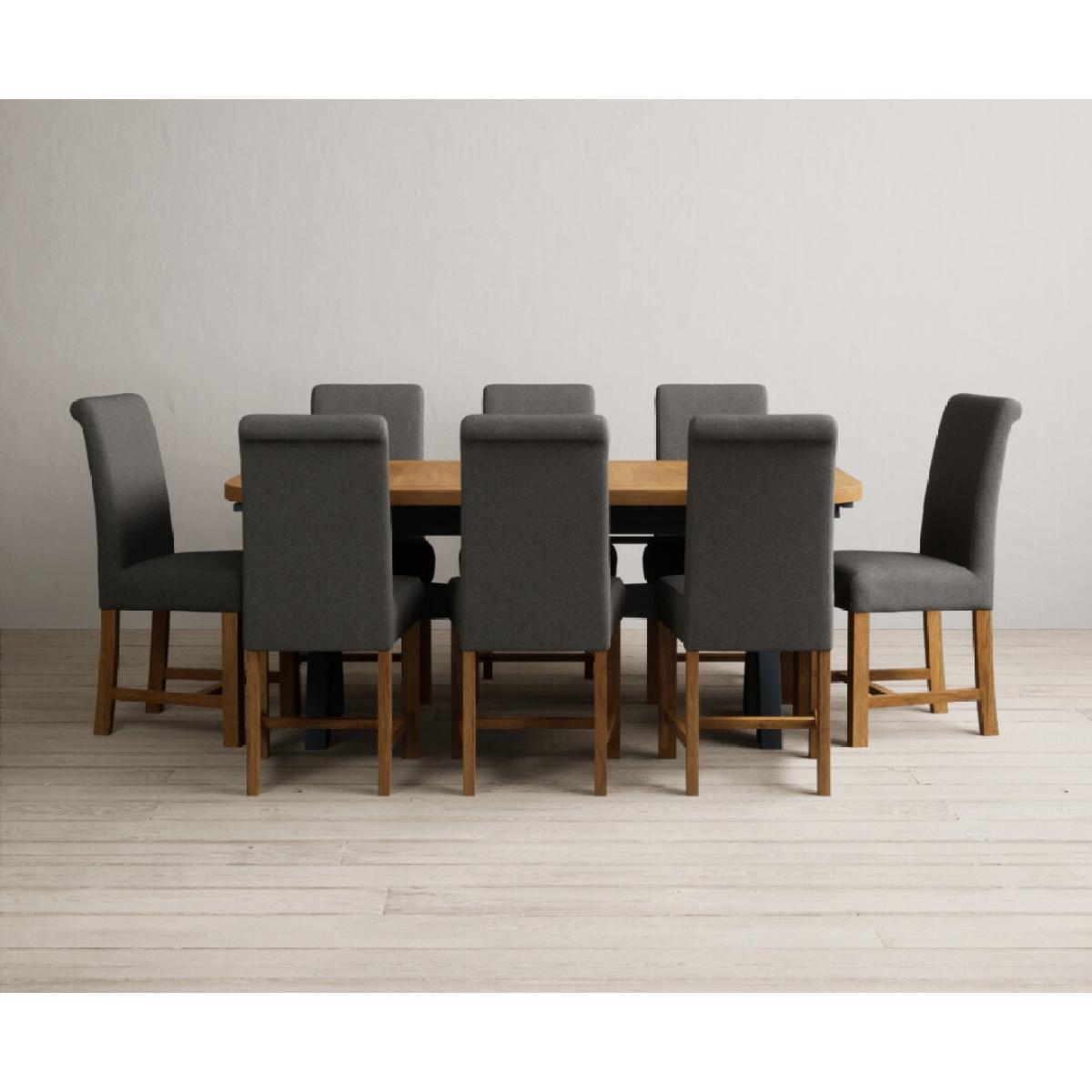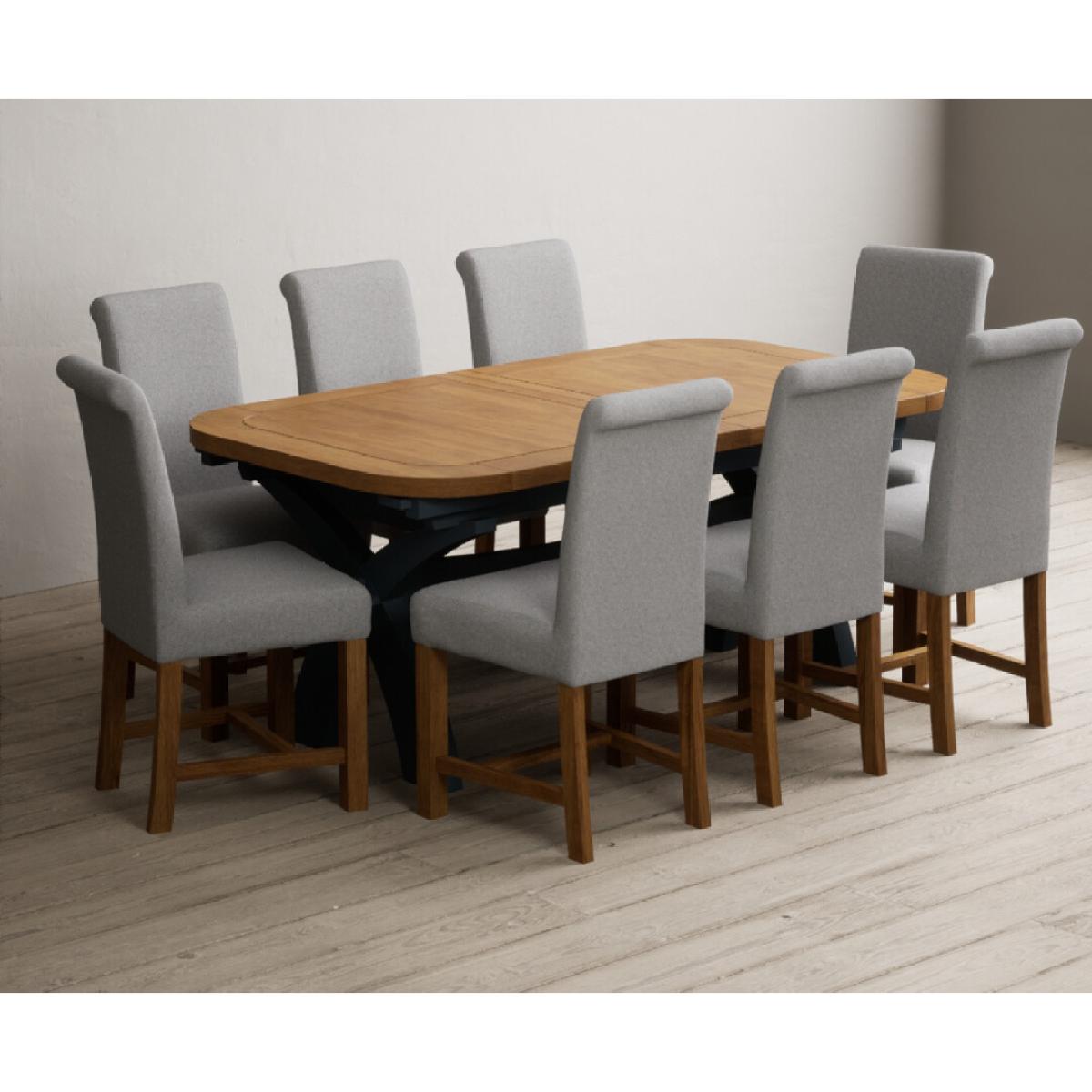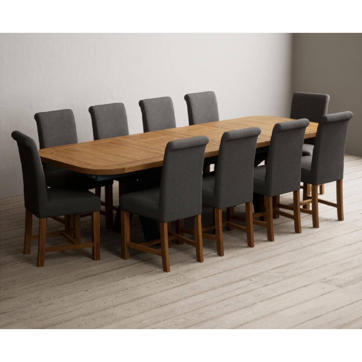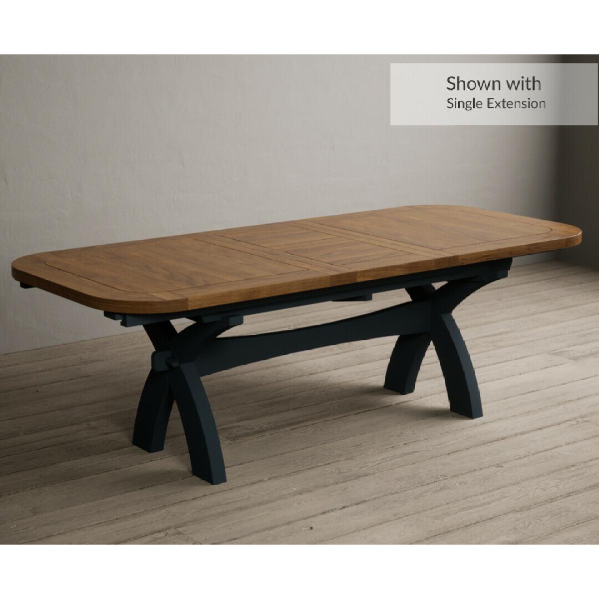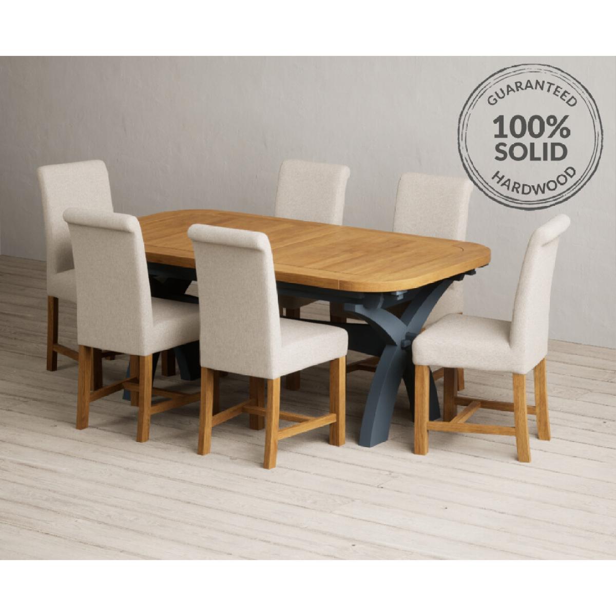 Extending Olympia 180cm Oak and Dark Blue Painted Dining Table with 10 Natural Chairs