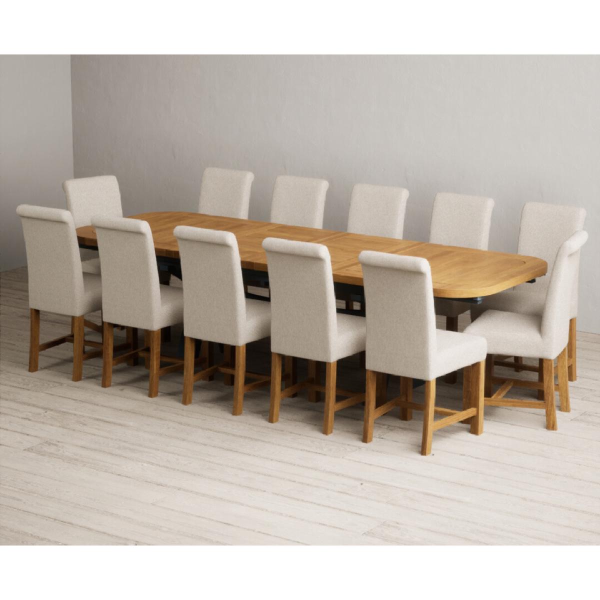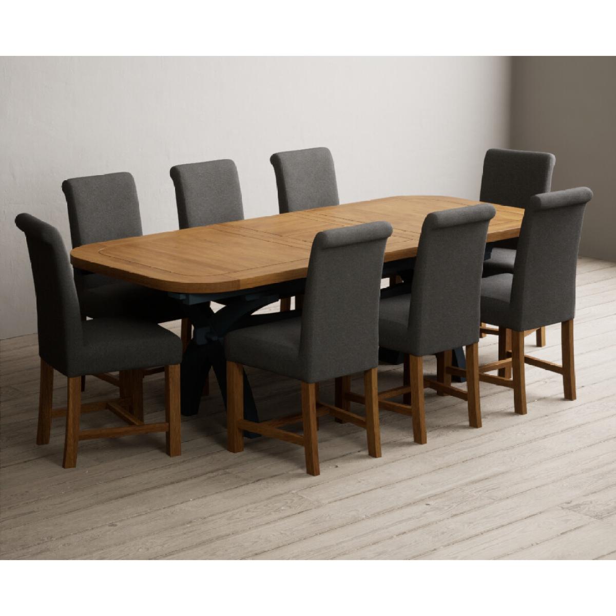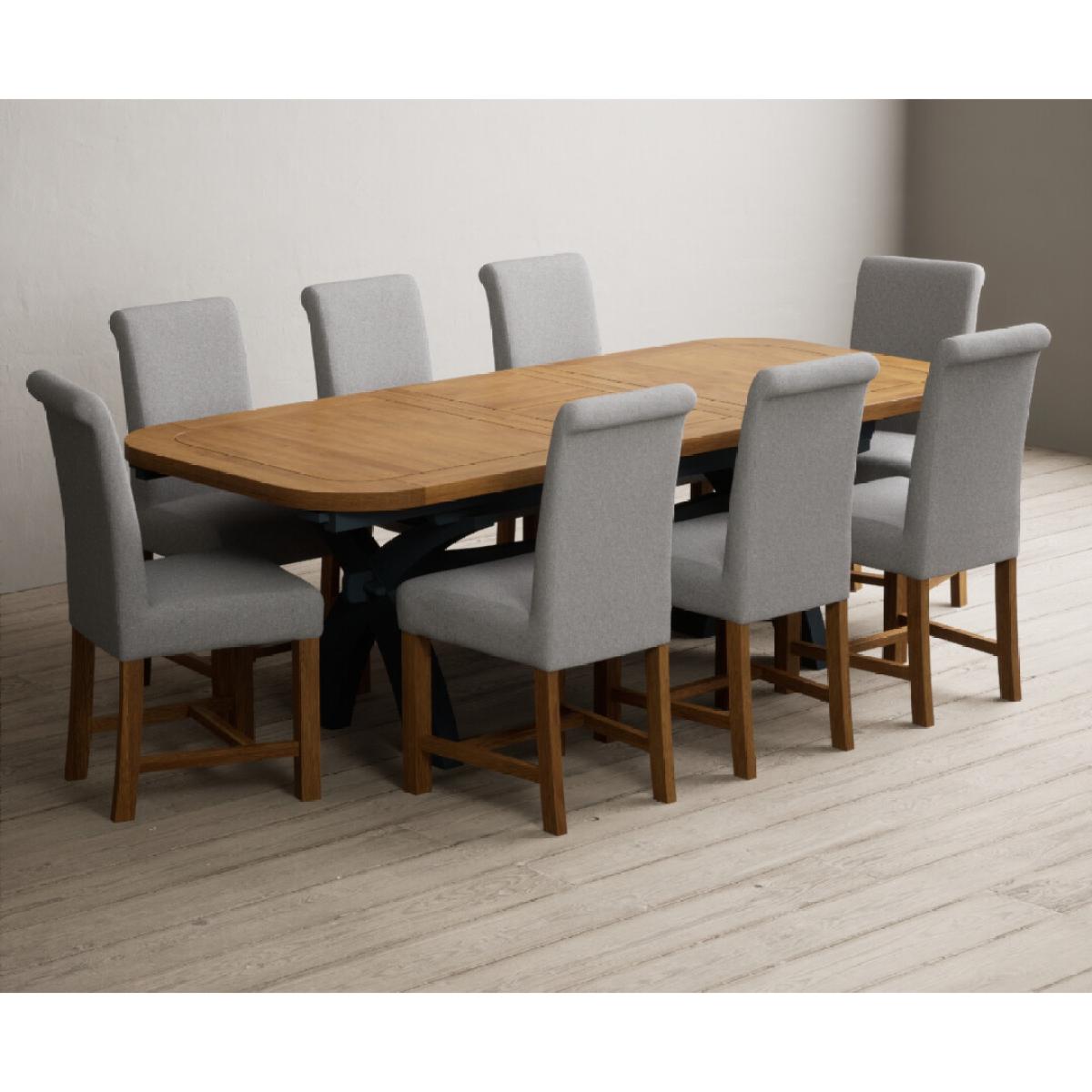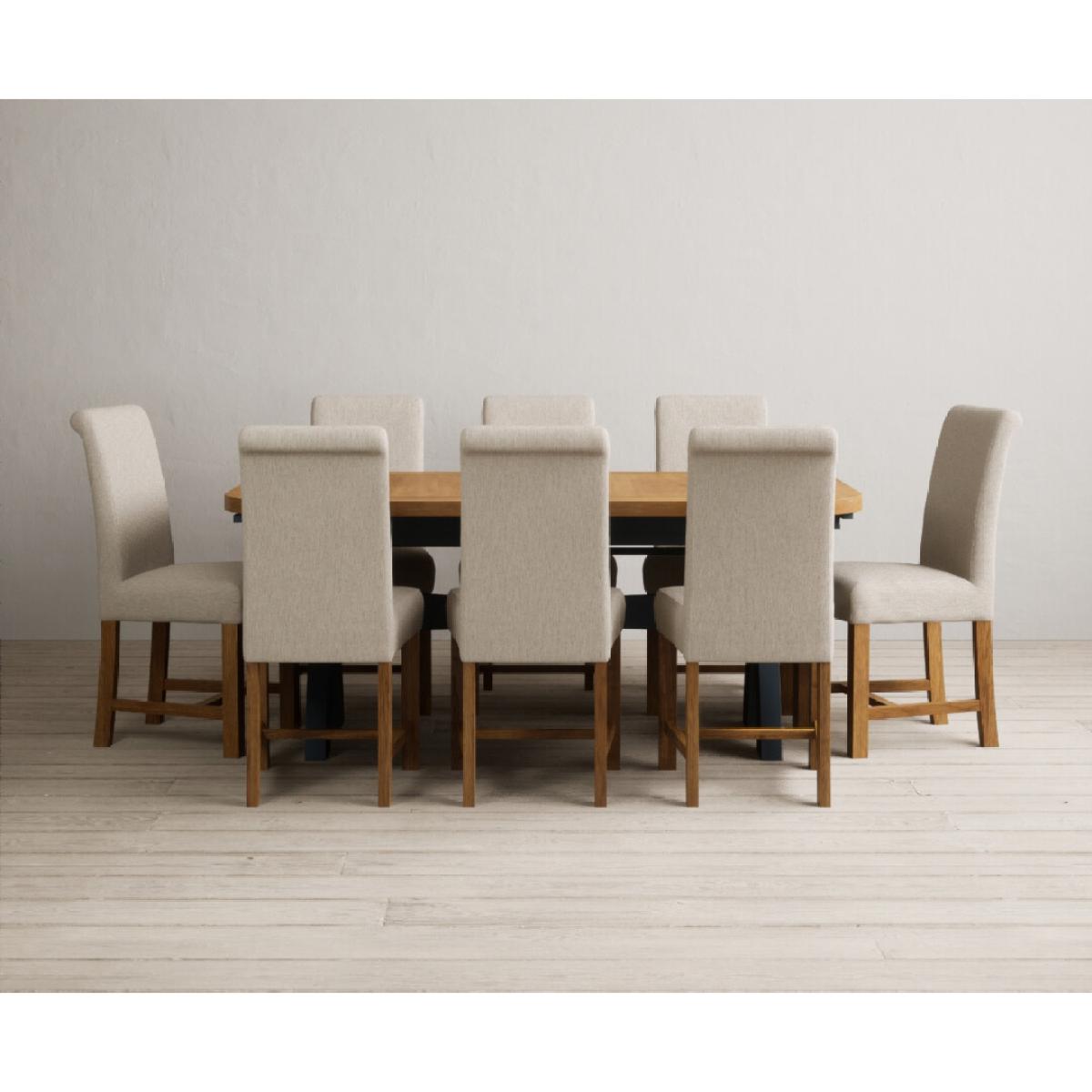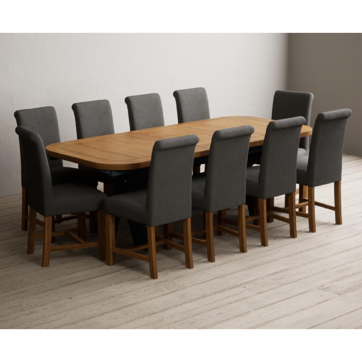 Extending Olympia 180cm Oak and Dark Blue Painted Dining Table with 10 Natural Chairs