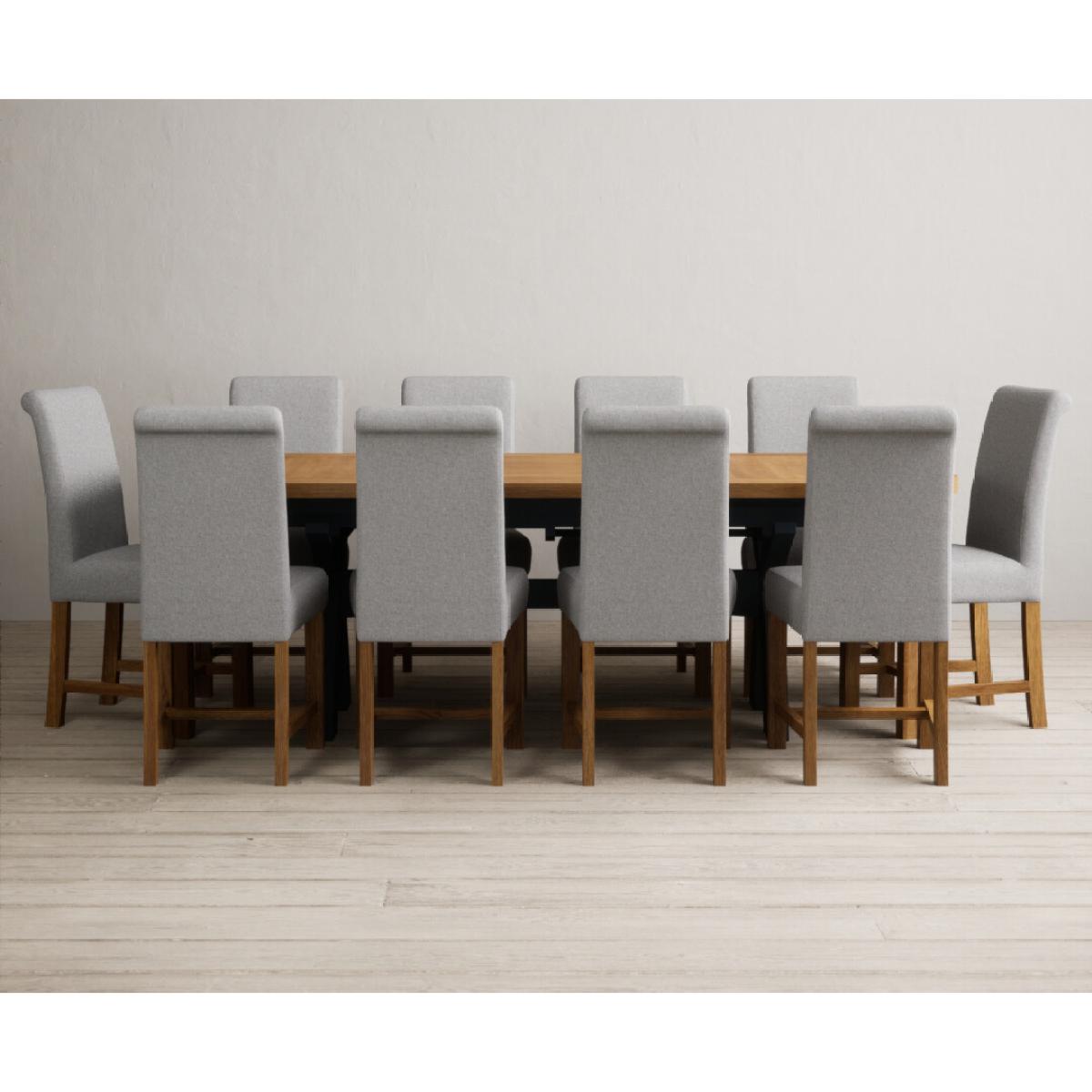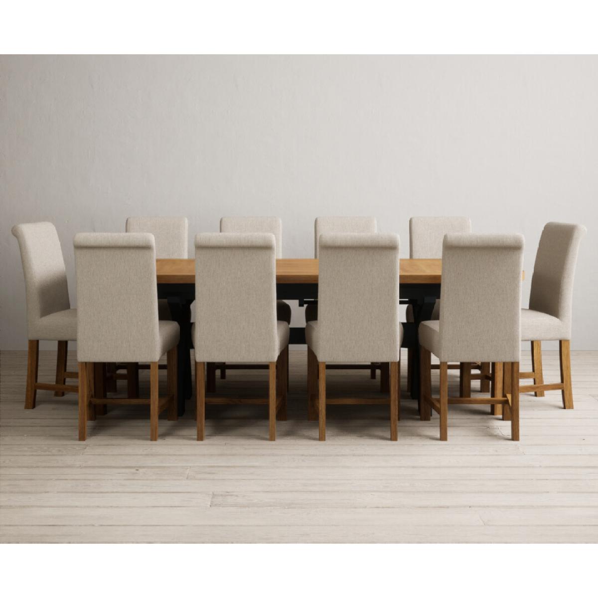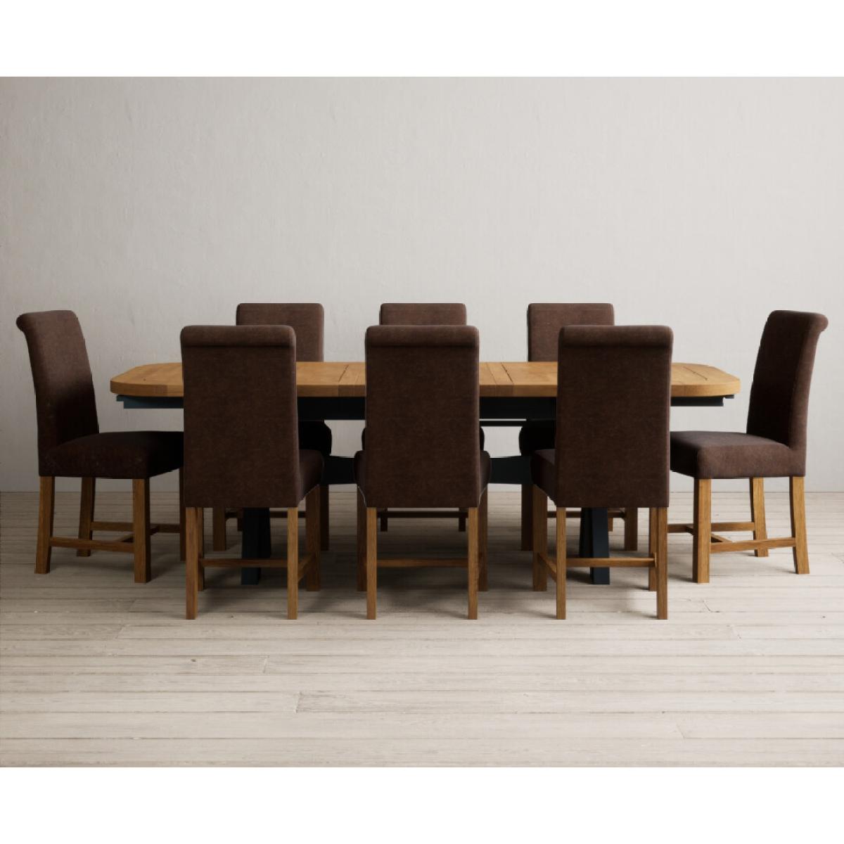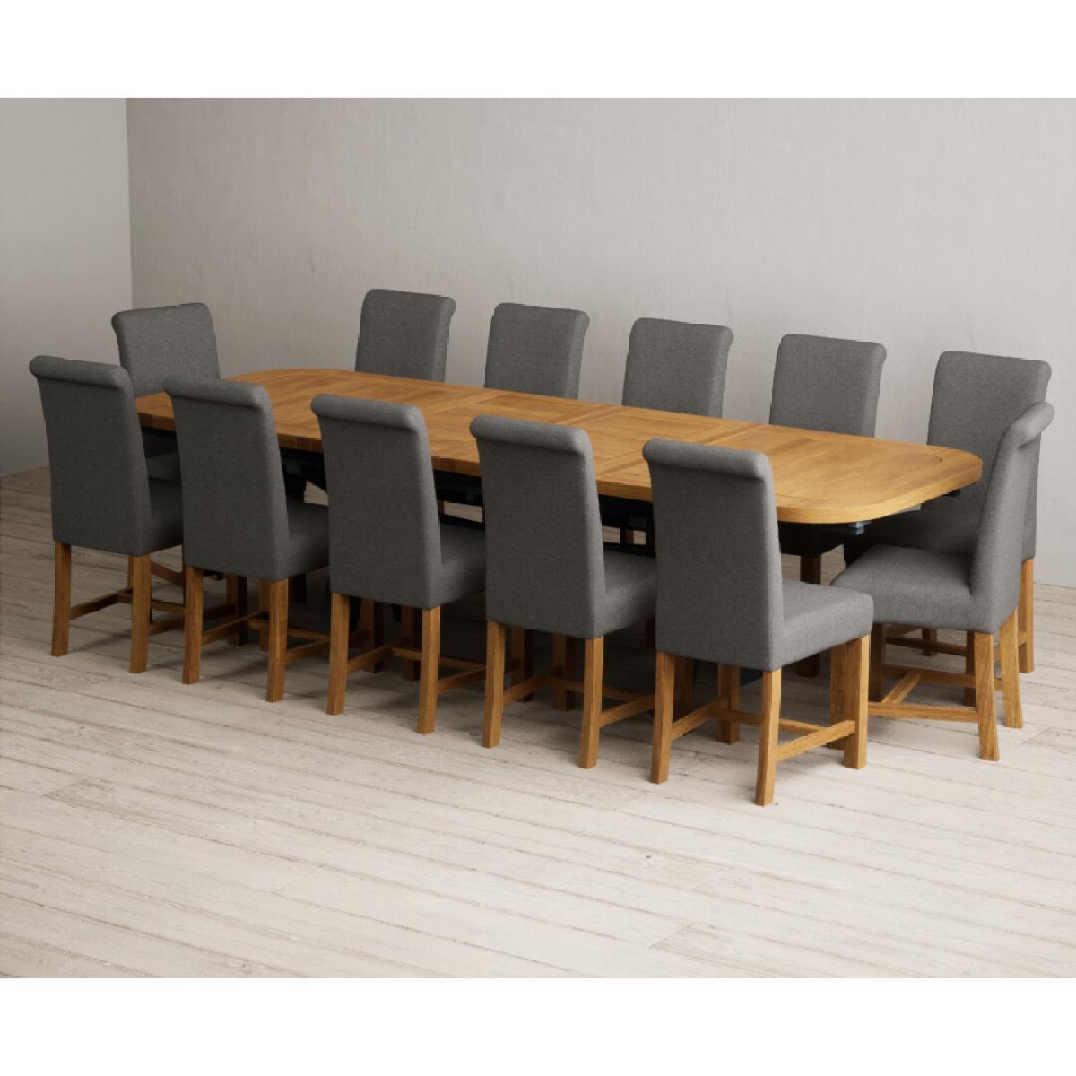 Extending Olympia 180cm Oak and Dark Blue Painted Dining Table with 10 Natural Chairs