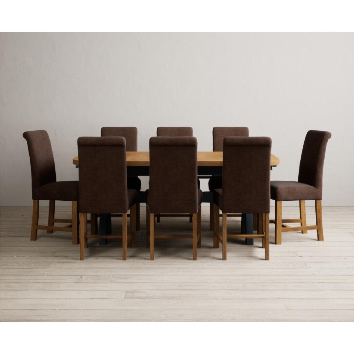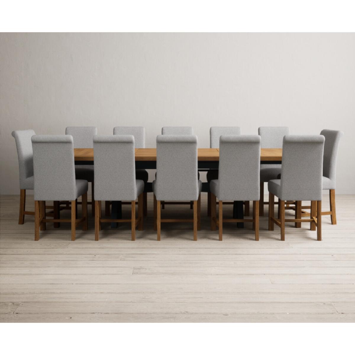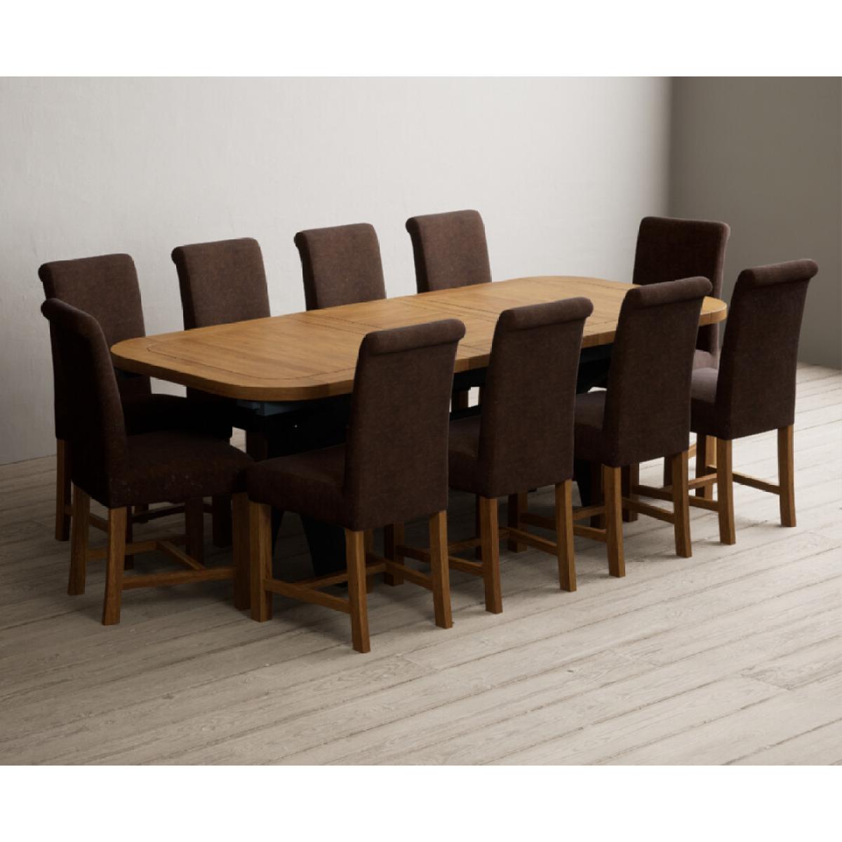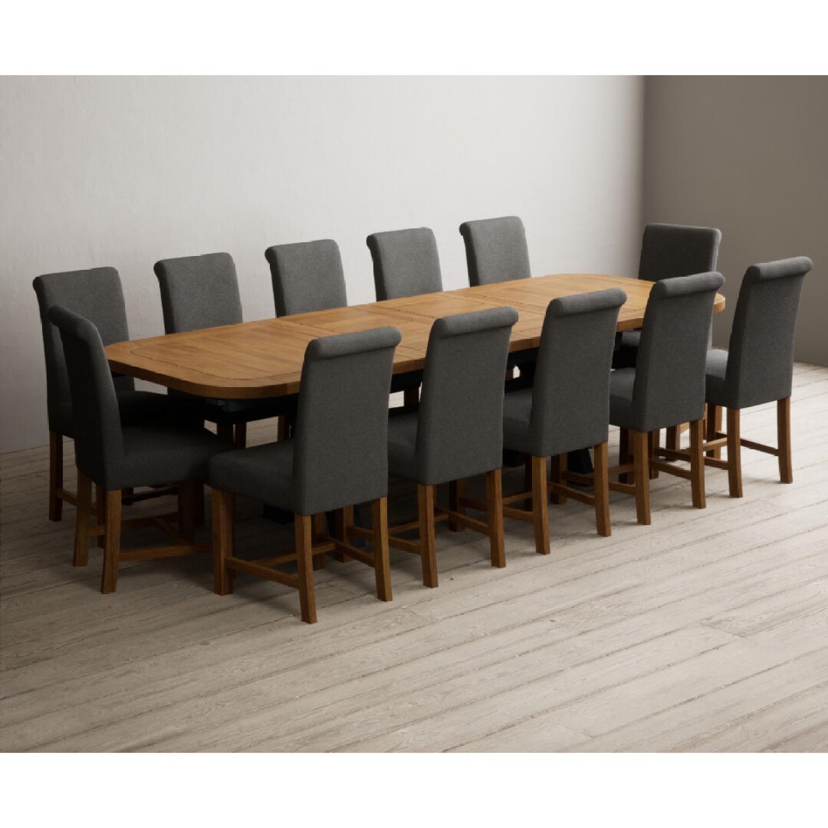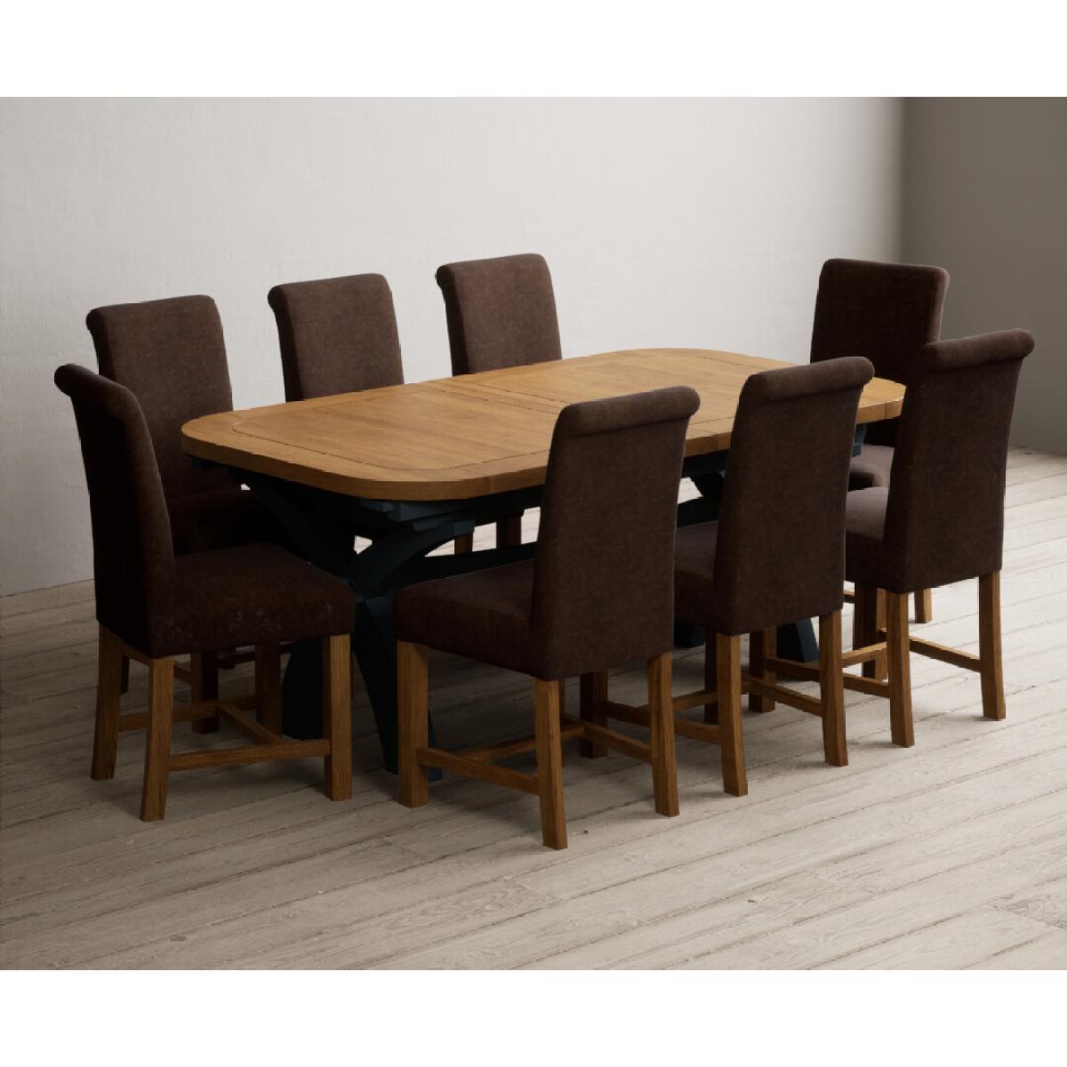 Extending Olympia 180cm Oak and Dark Blue Painted Dining Table with 10 Natural Chairs