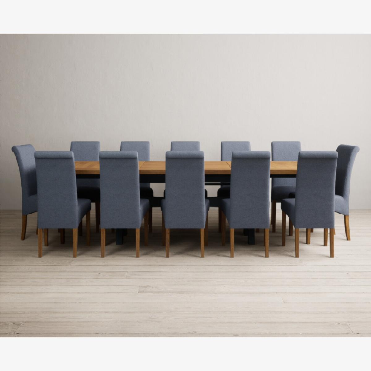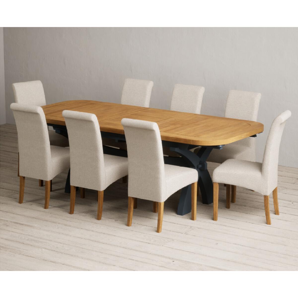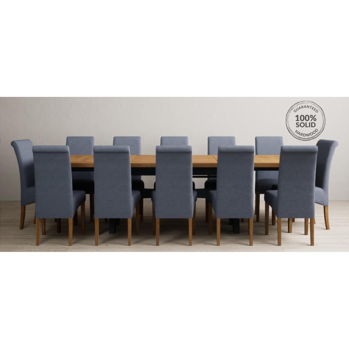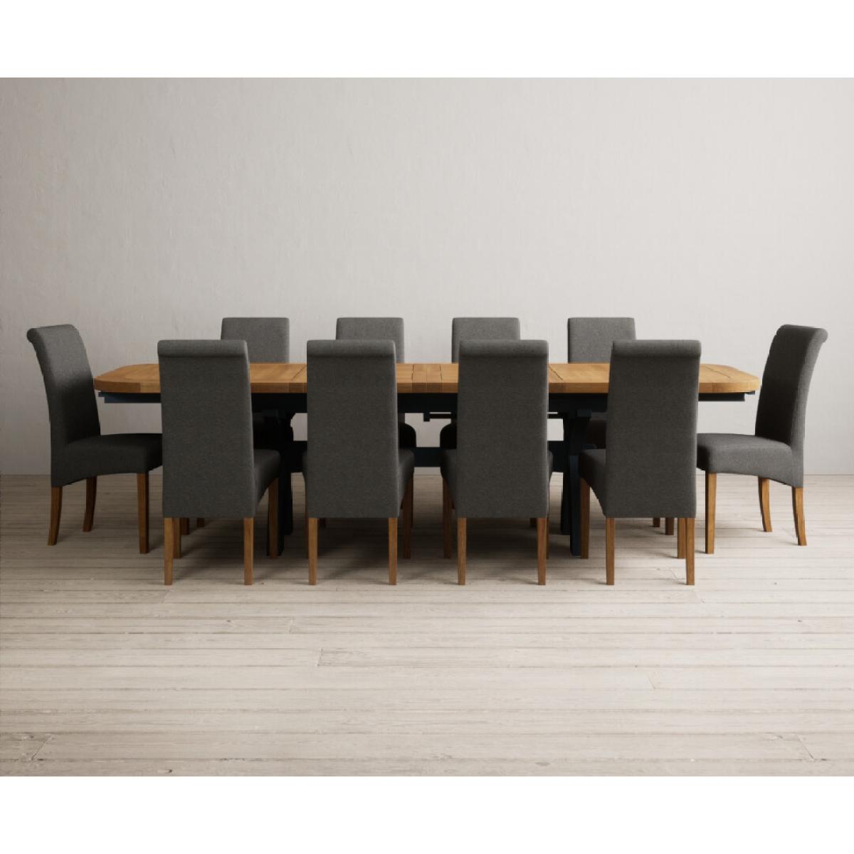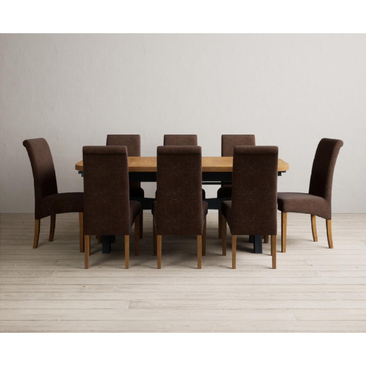 Extending Olympia 180cm Oak and Dark Blue Painted Dining Table with 6 Charcoal Grey Scroll Back Chairs