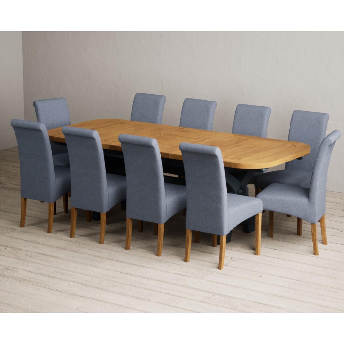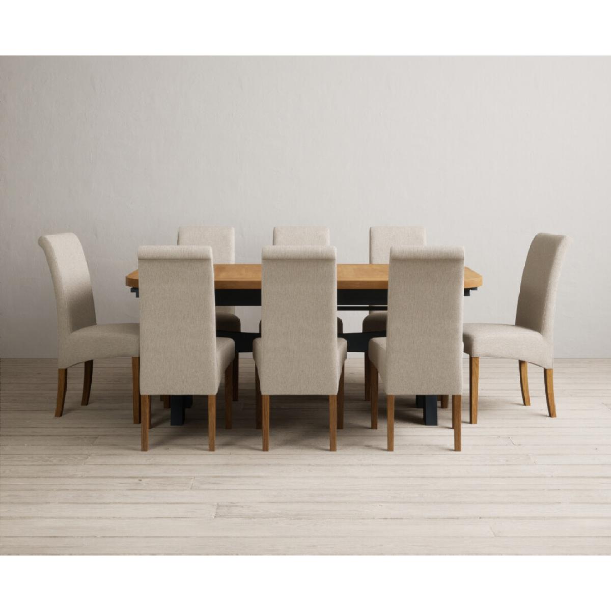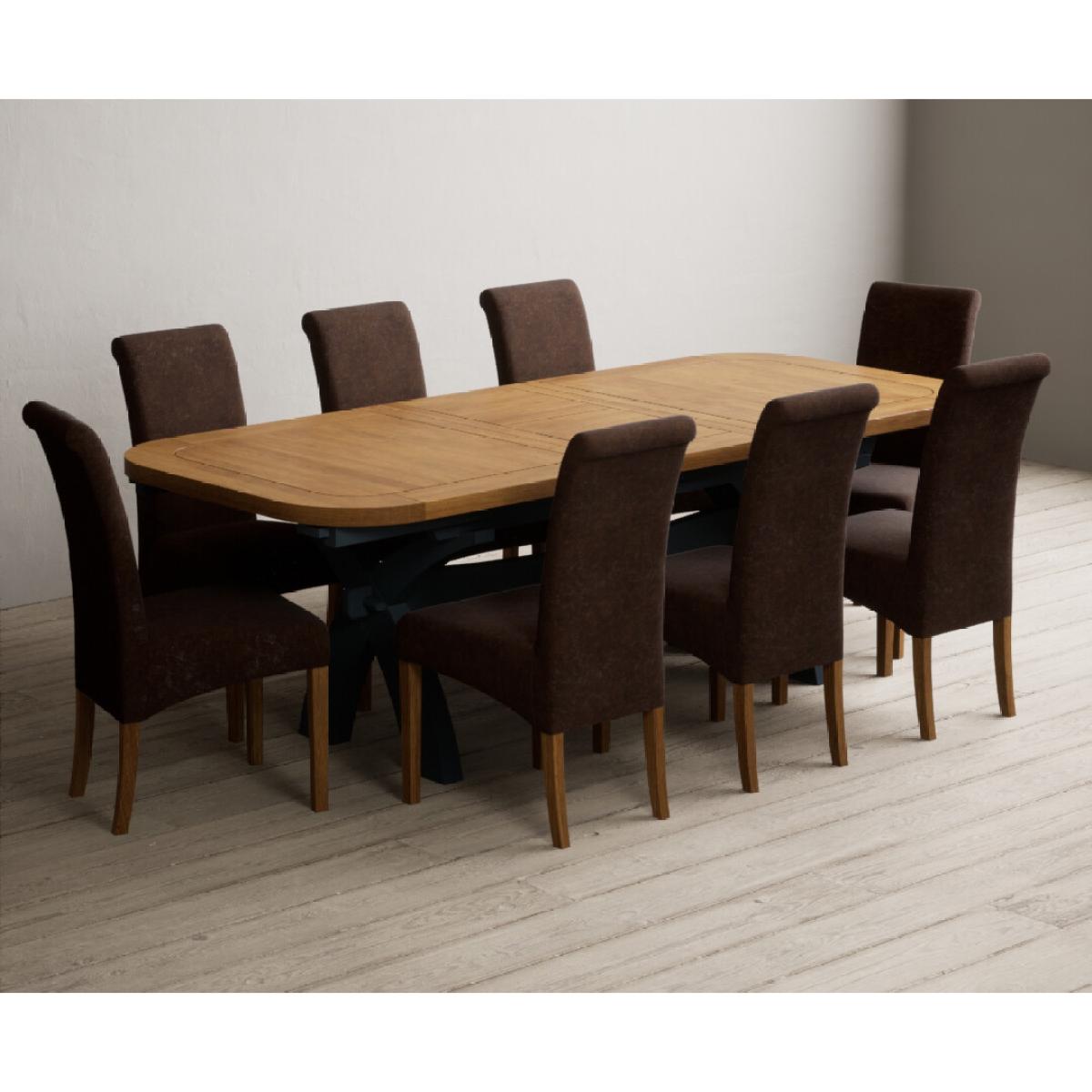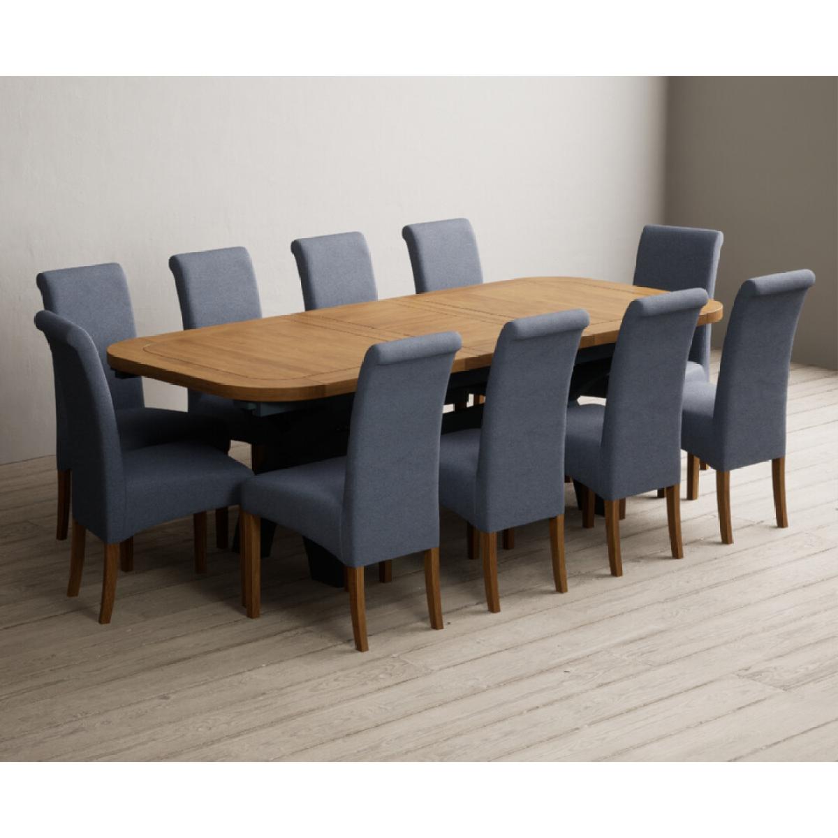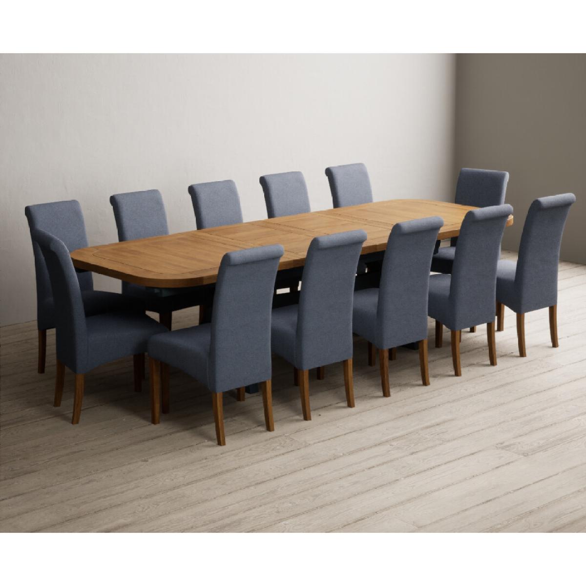 Extending Olympia 180cm Oak and Dark Blue Painted Dining Table with 6 Charcoal Grey Scroll Back Chairs