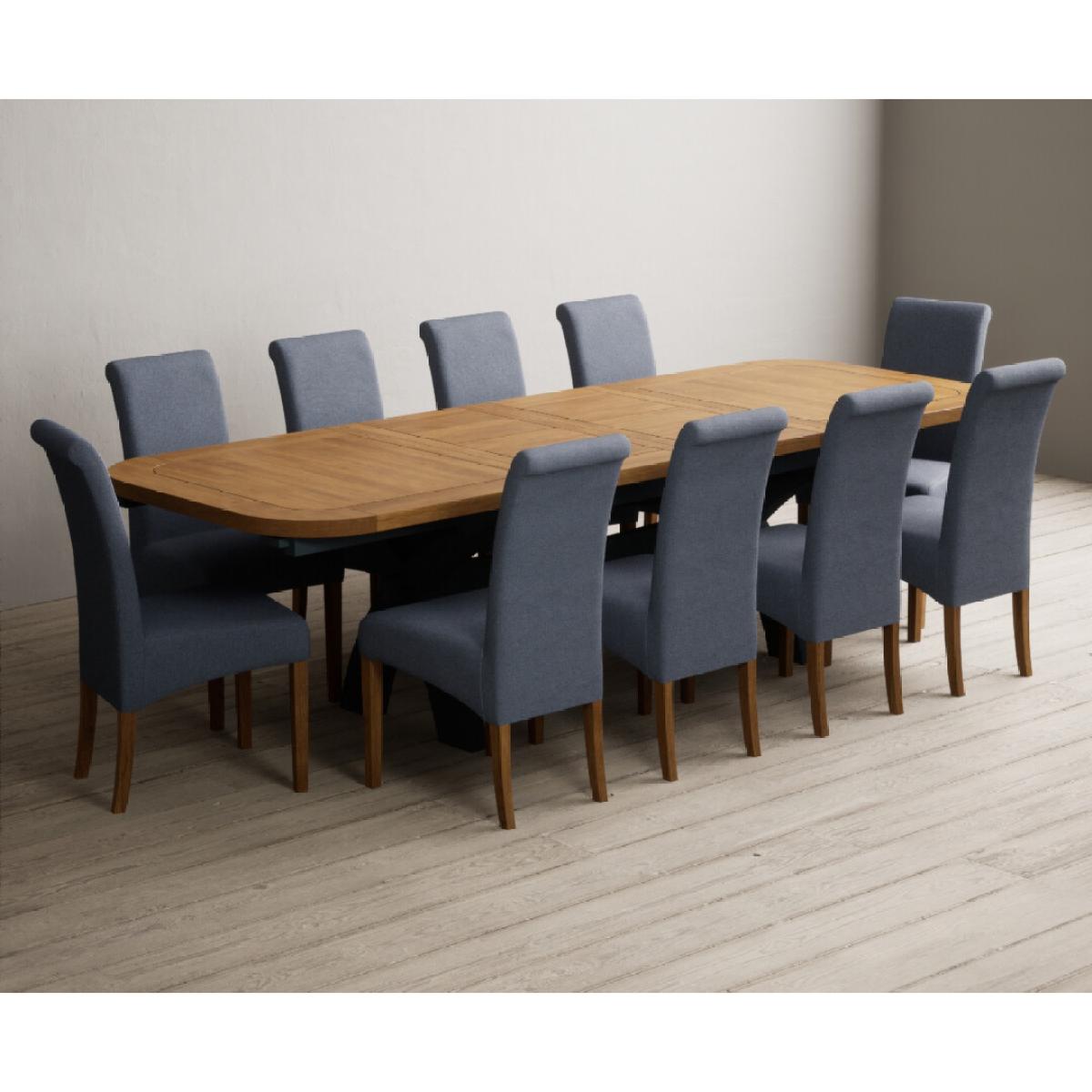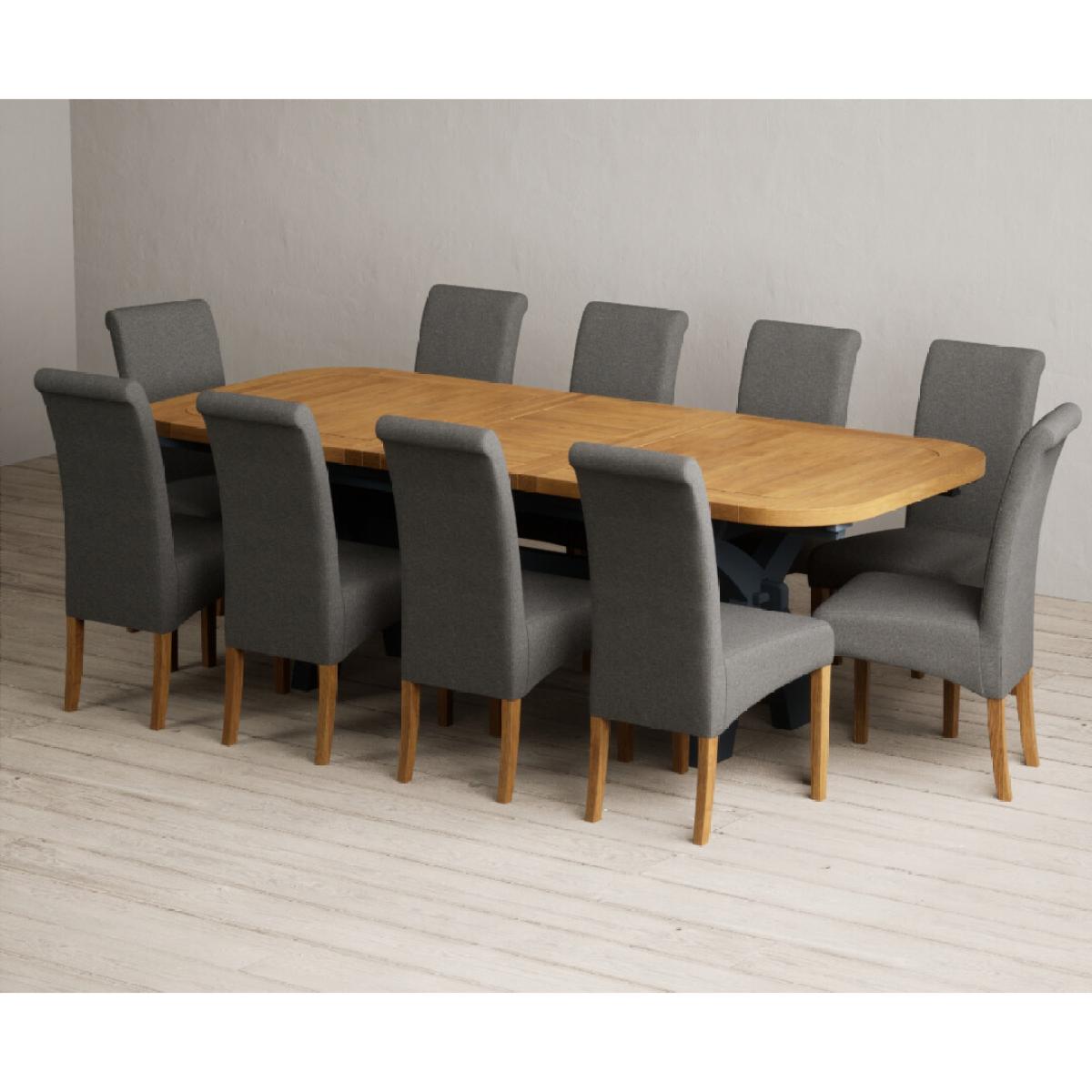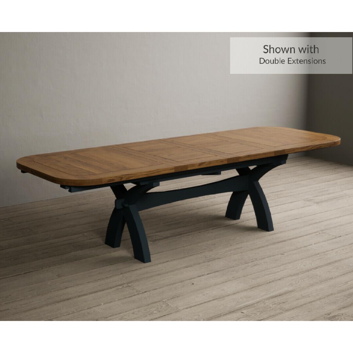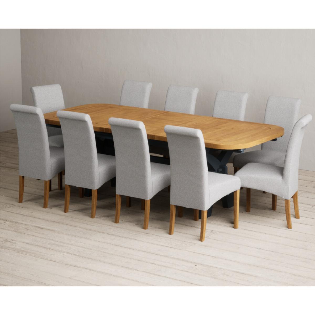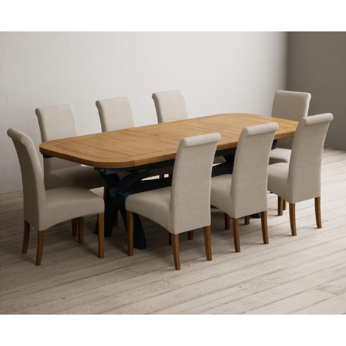 Extending Olympia 180cm Oak and Dark Blue Painted Dining Table with 6 Charcoal Grey Scroll Back Chairs