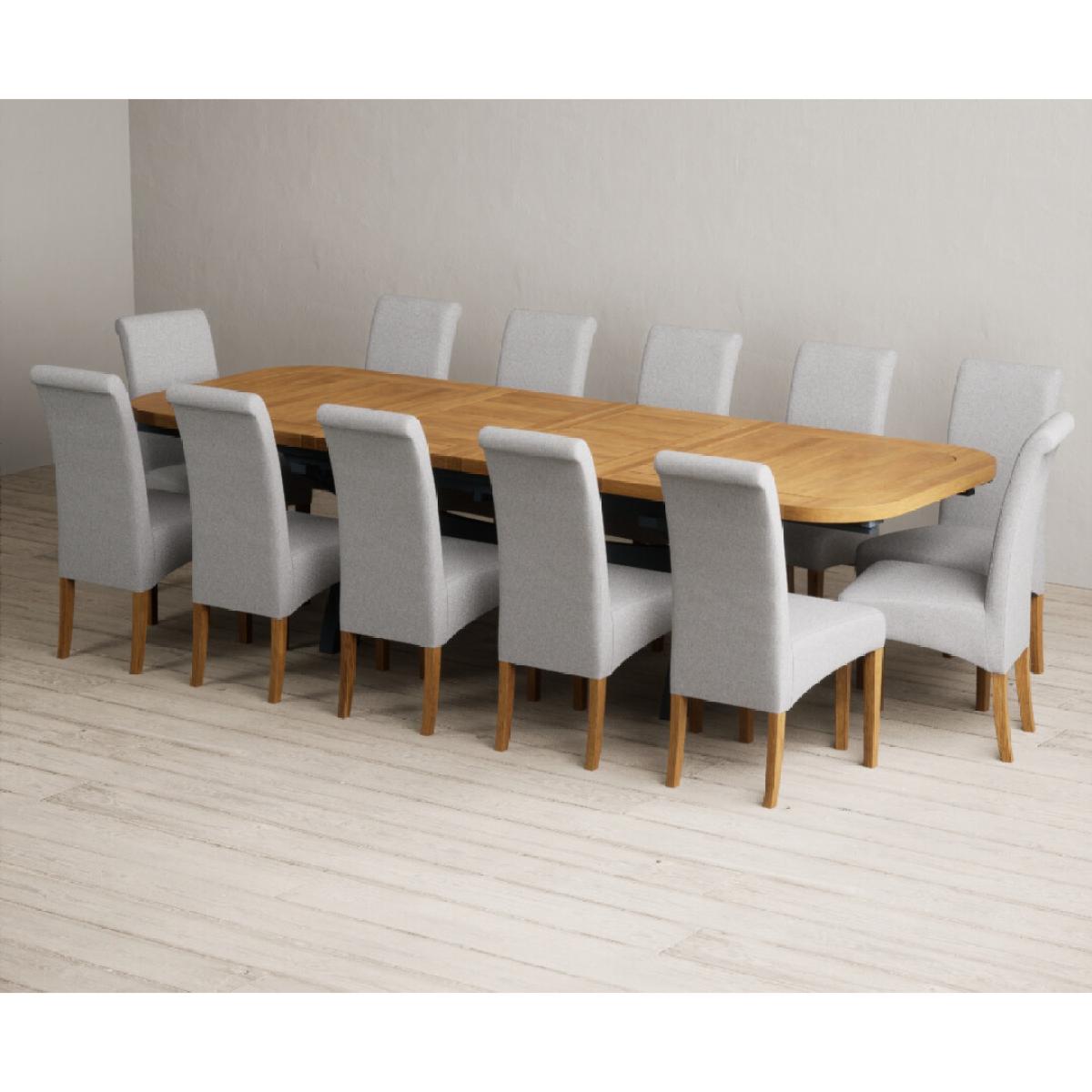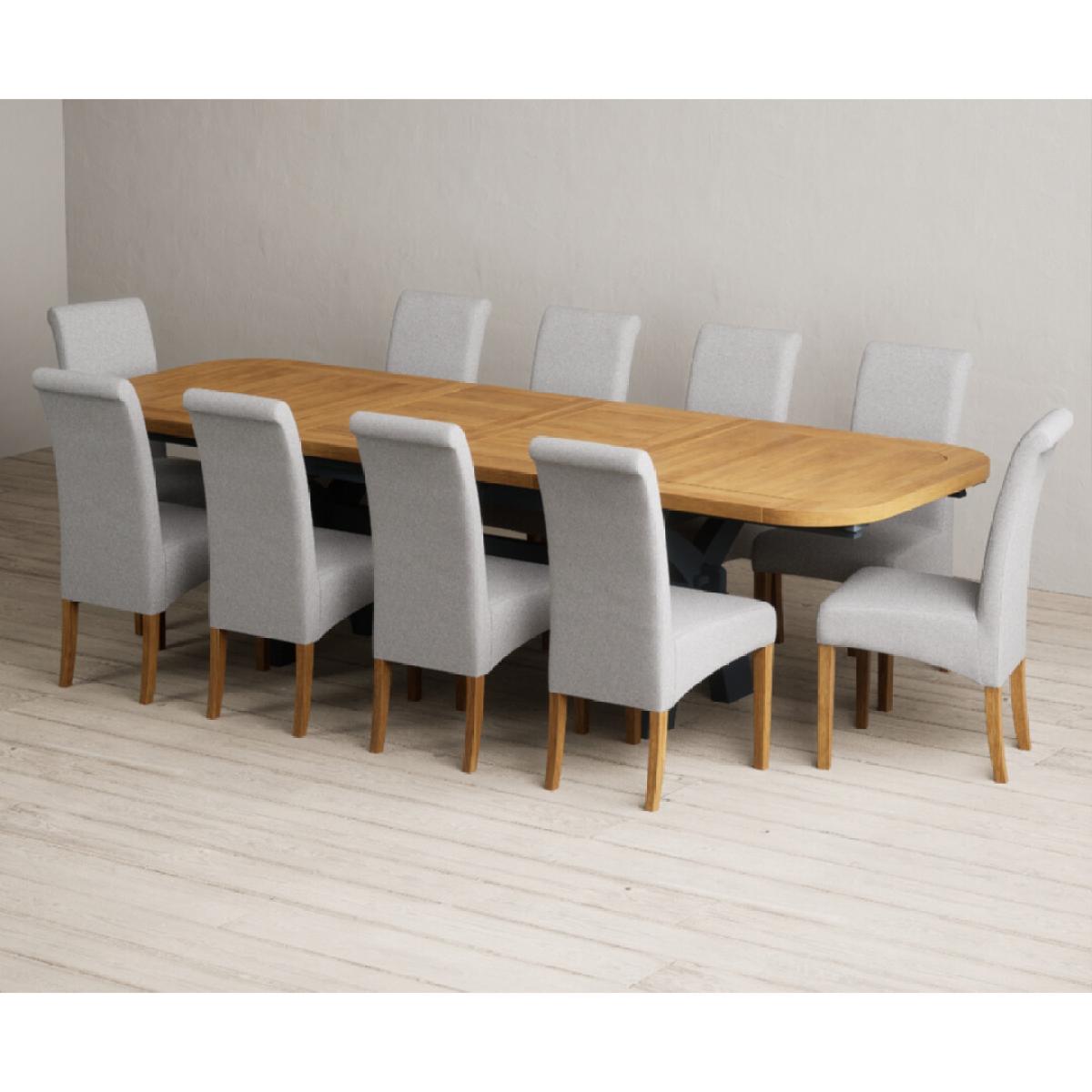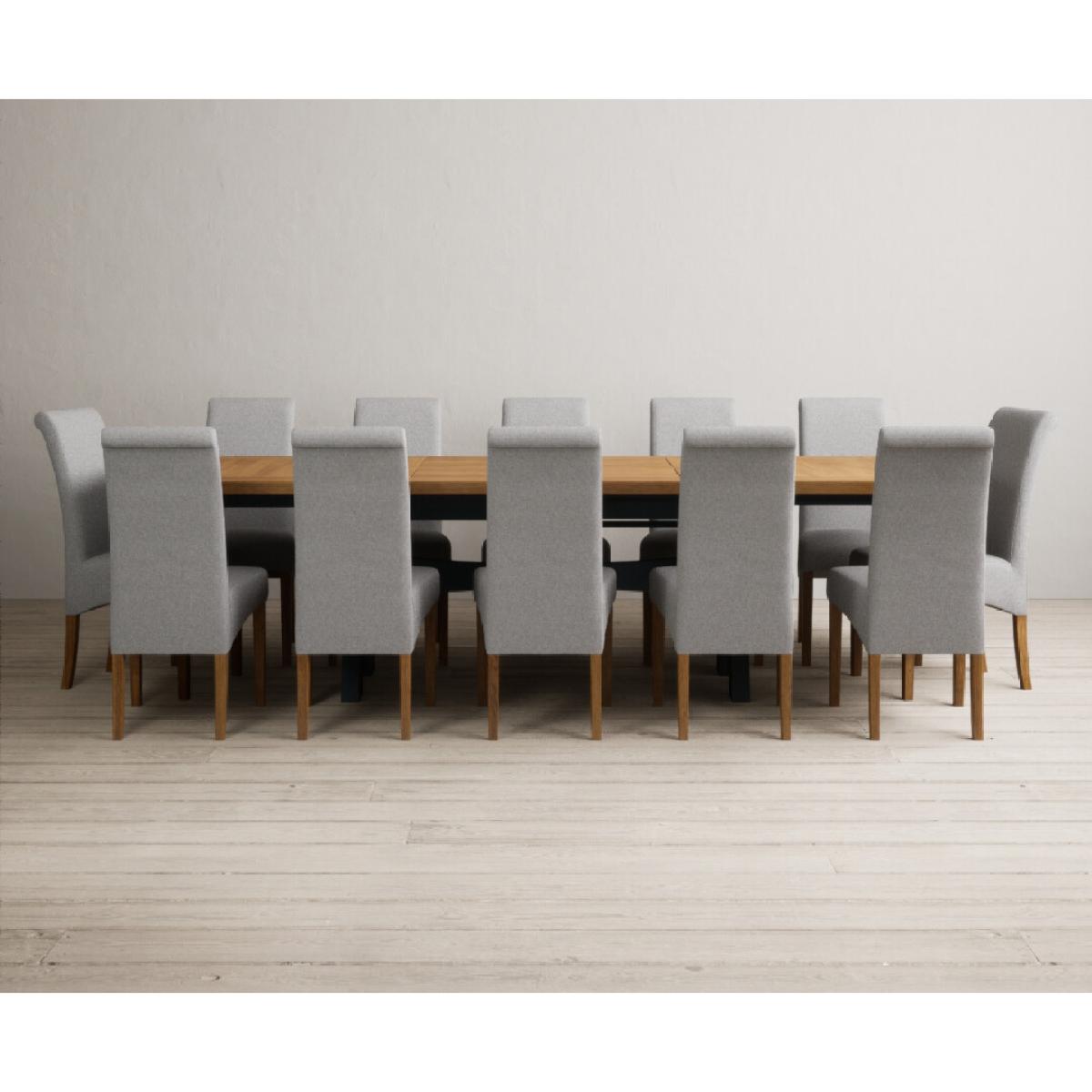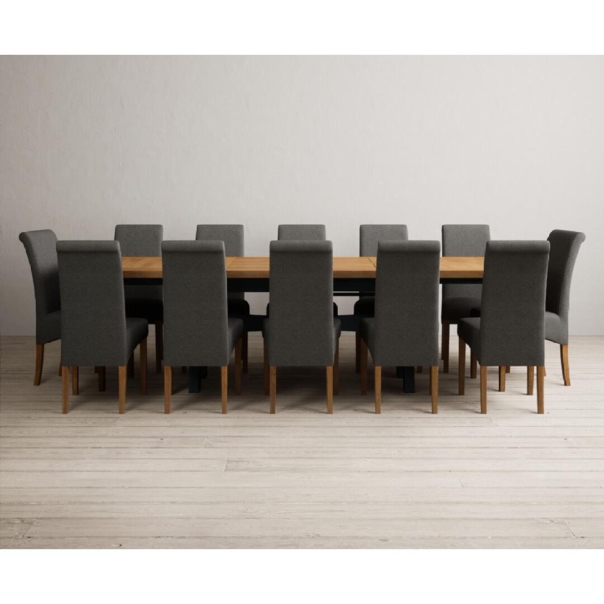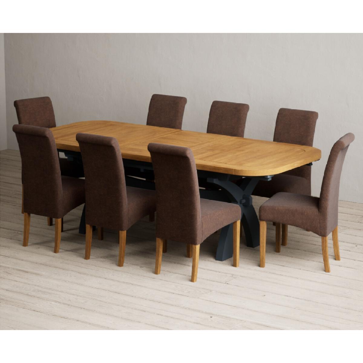 Extending Olympia 180cm Oak and Dark Blue Painted Dining Table with 6 Charcoal Grey Scroll Back Chairs