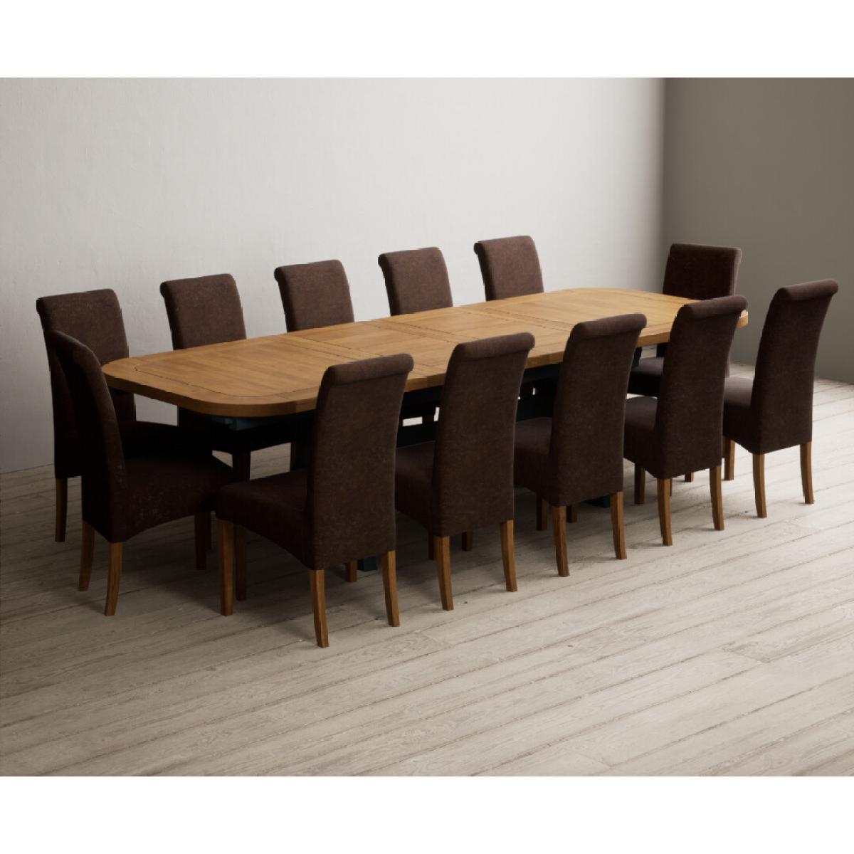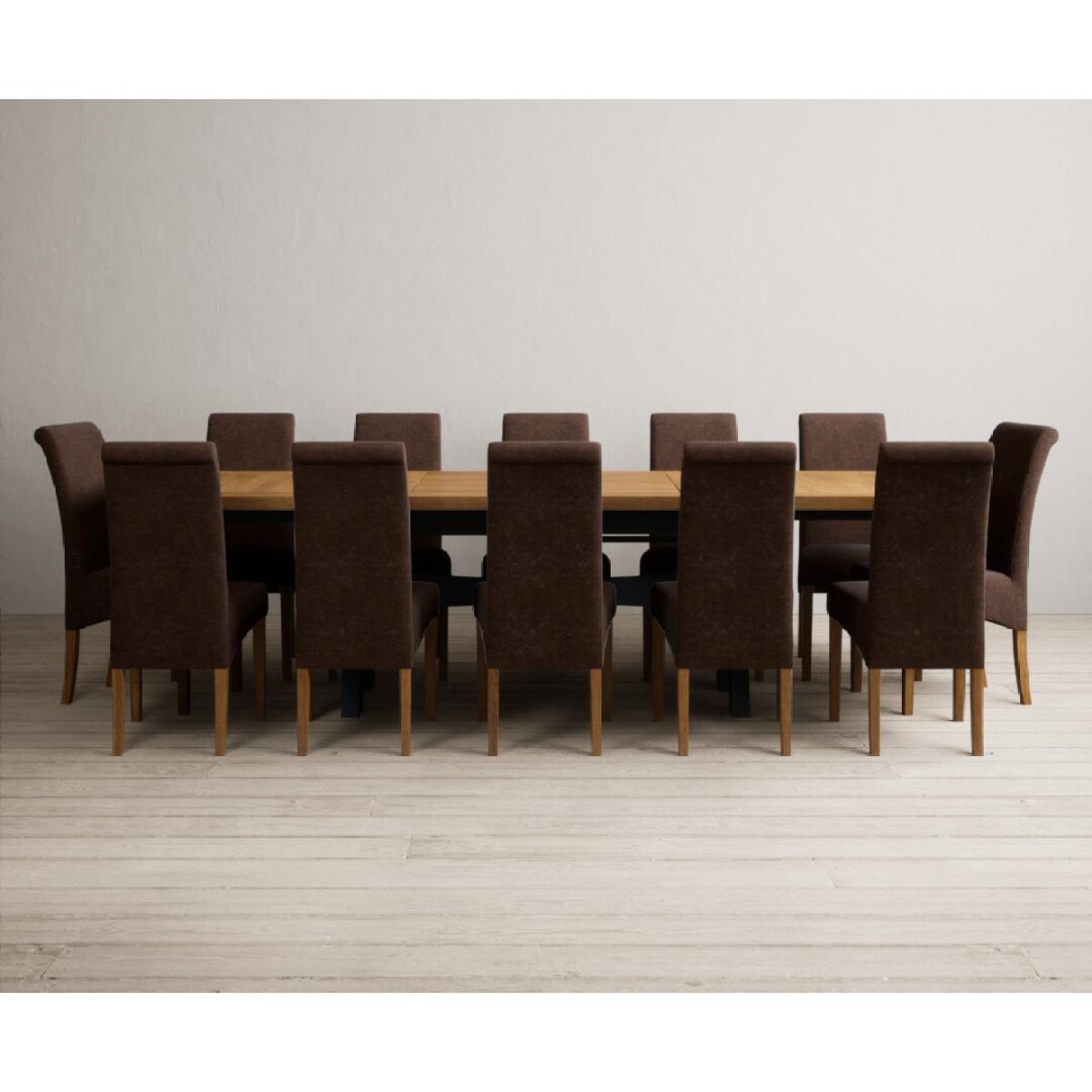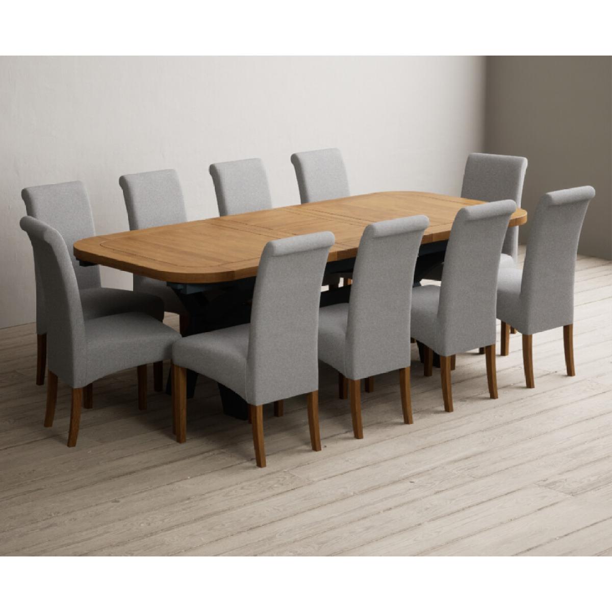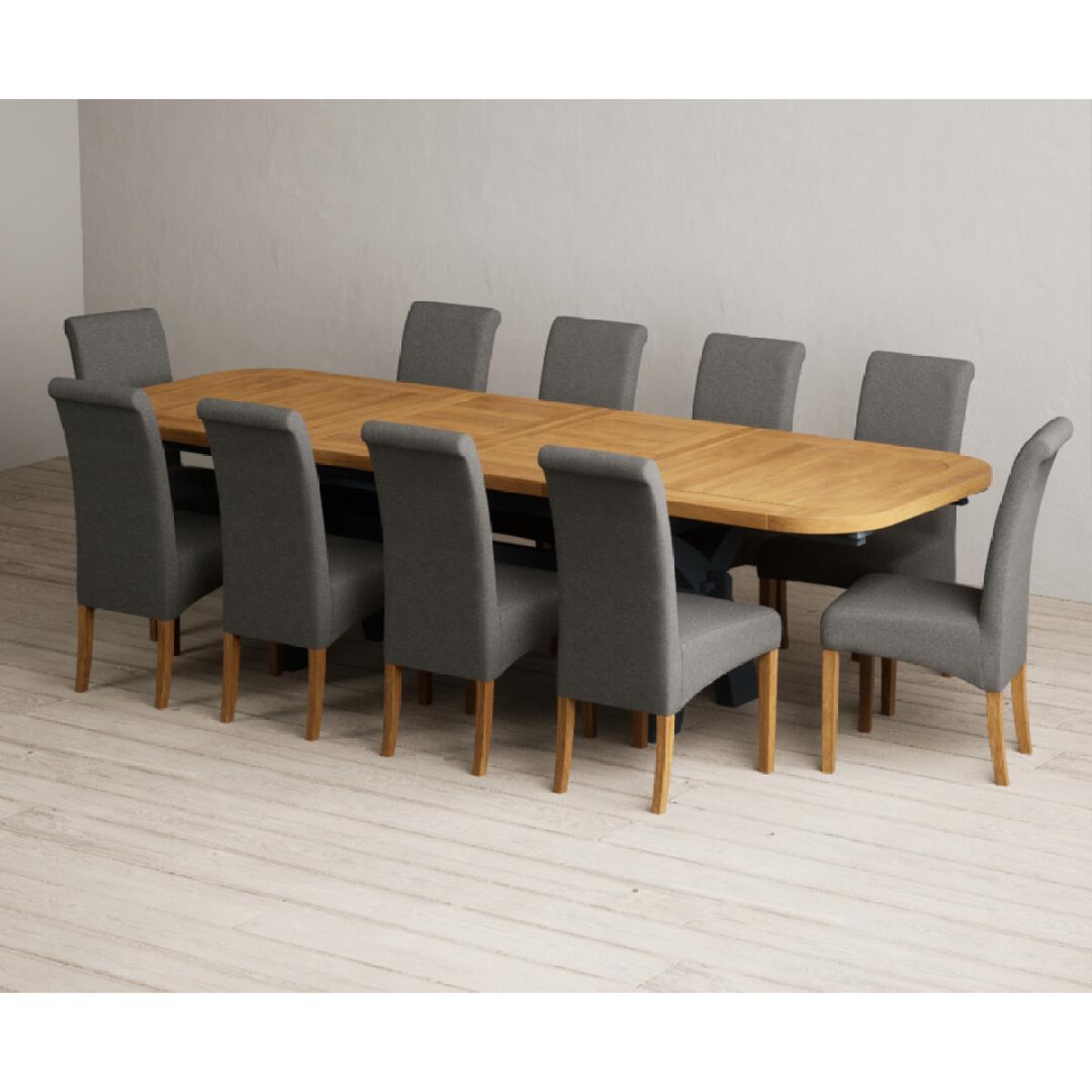 Extending Olympia 180cm Oak and Dark Blue Painted Dining Table with 6 Charcoal Grey Scroll Back Chairs