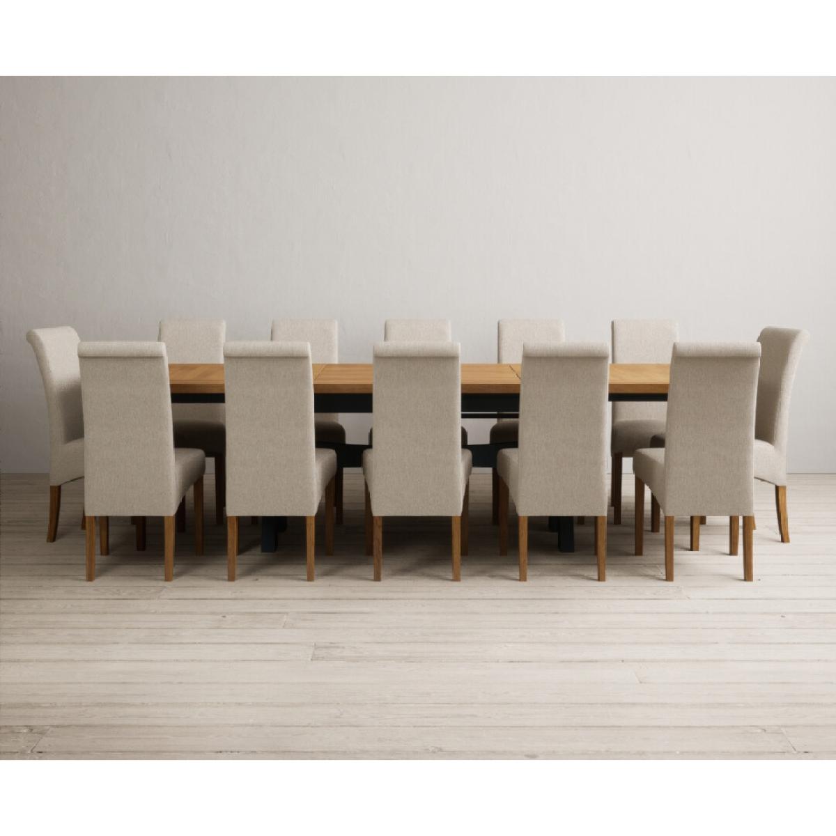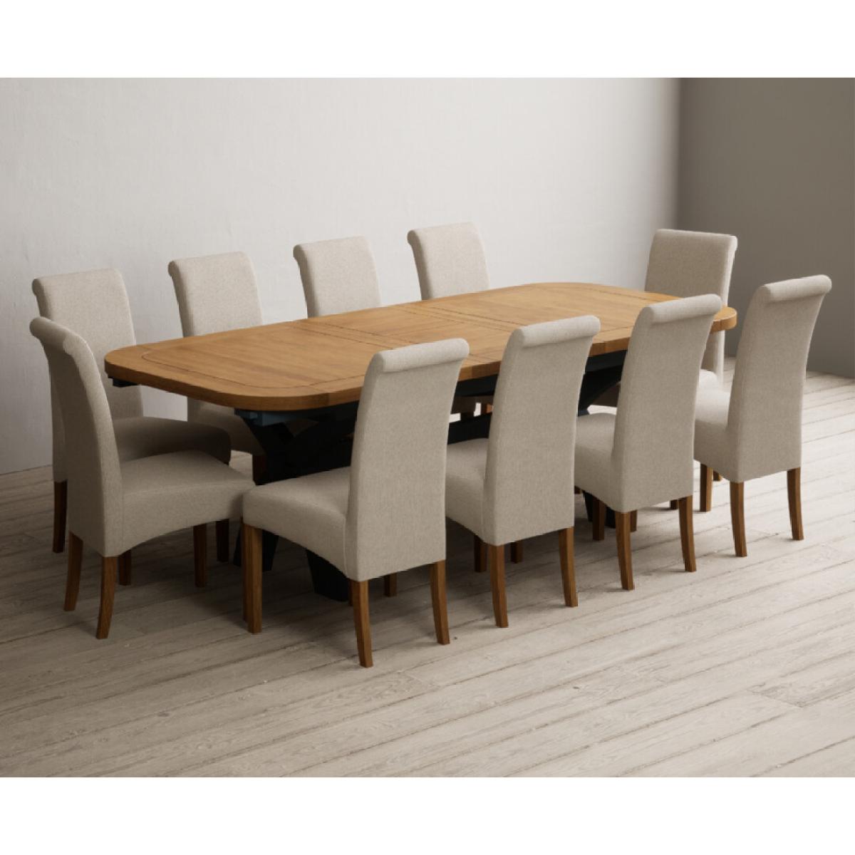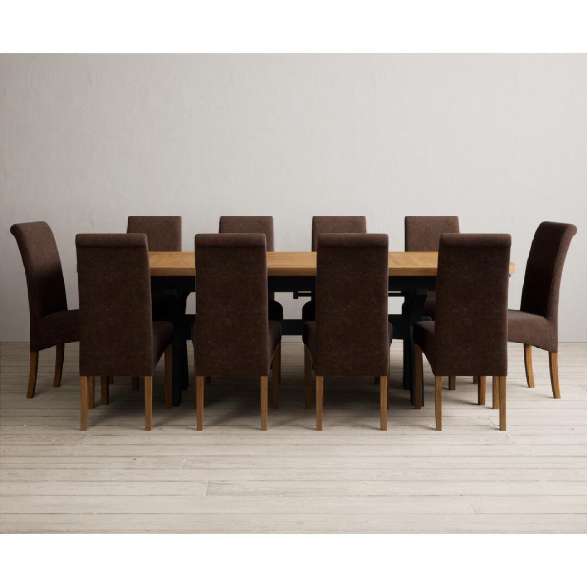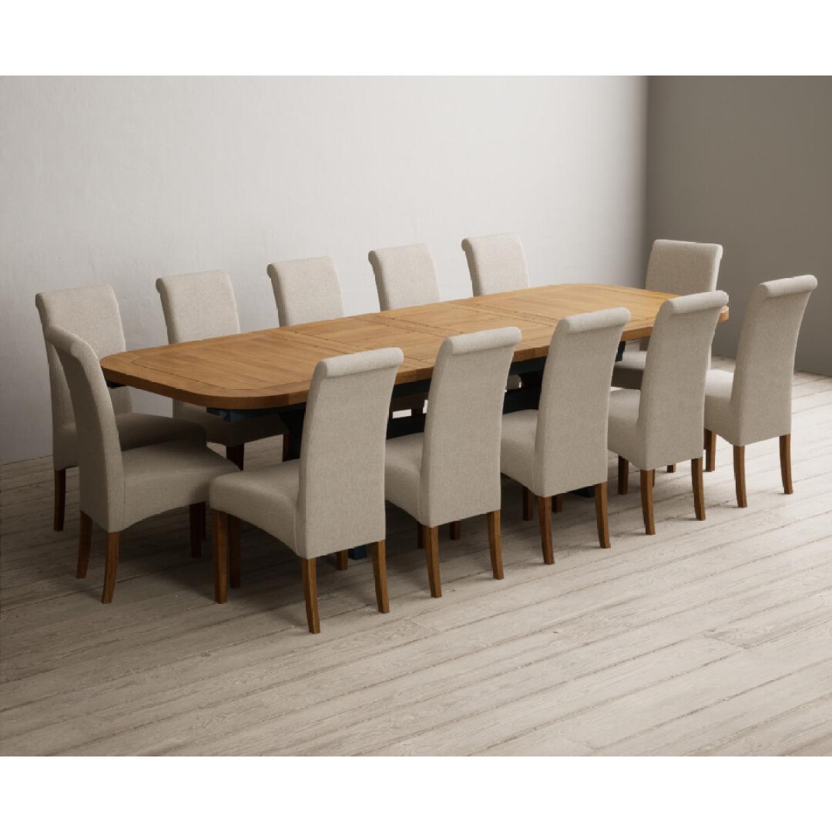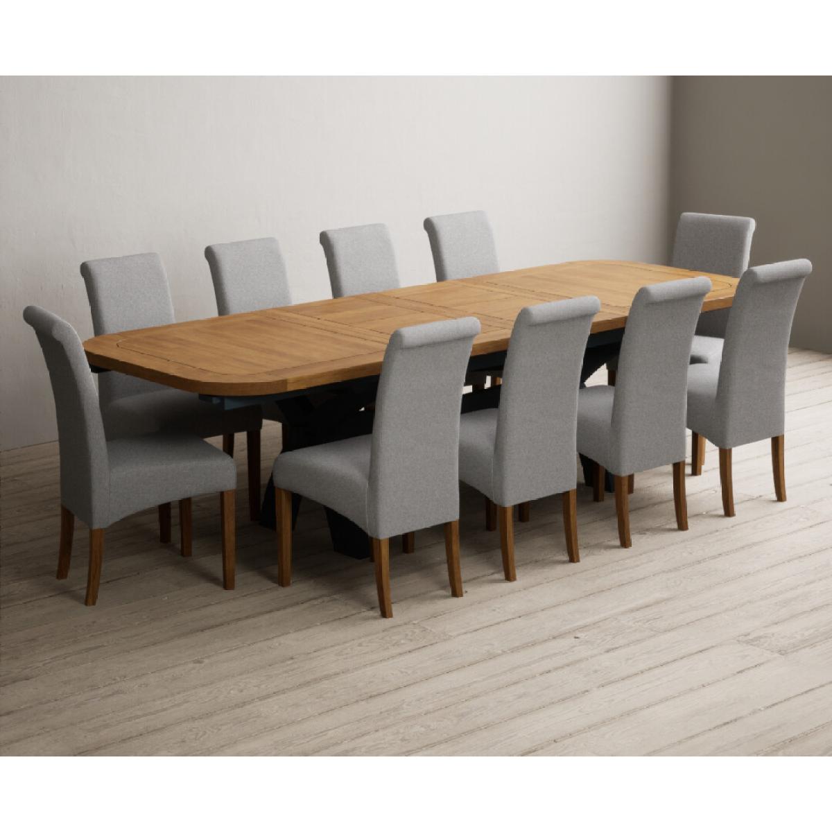 Extending Olympia 180cm Oak and Dark Blue Painted Dining Table with 6 Charcoal Grey Scroll Back Chairs