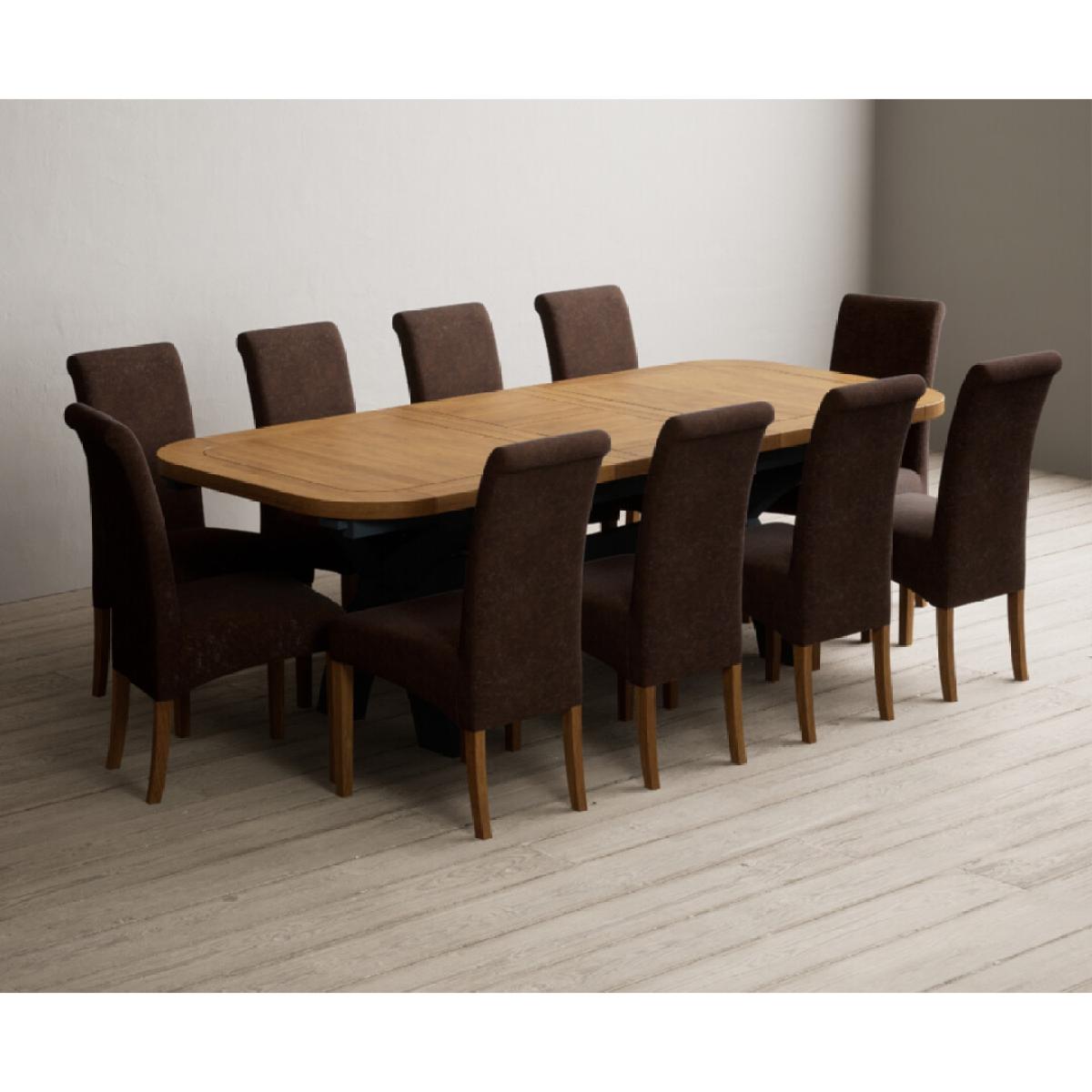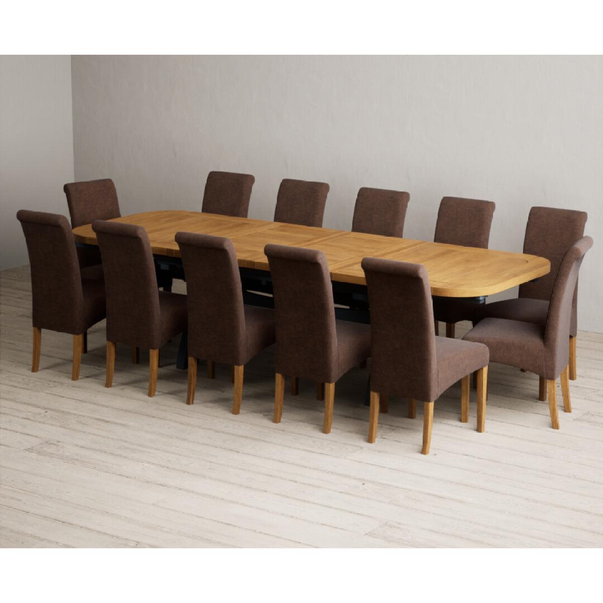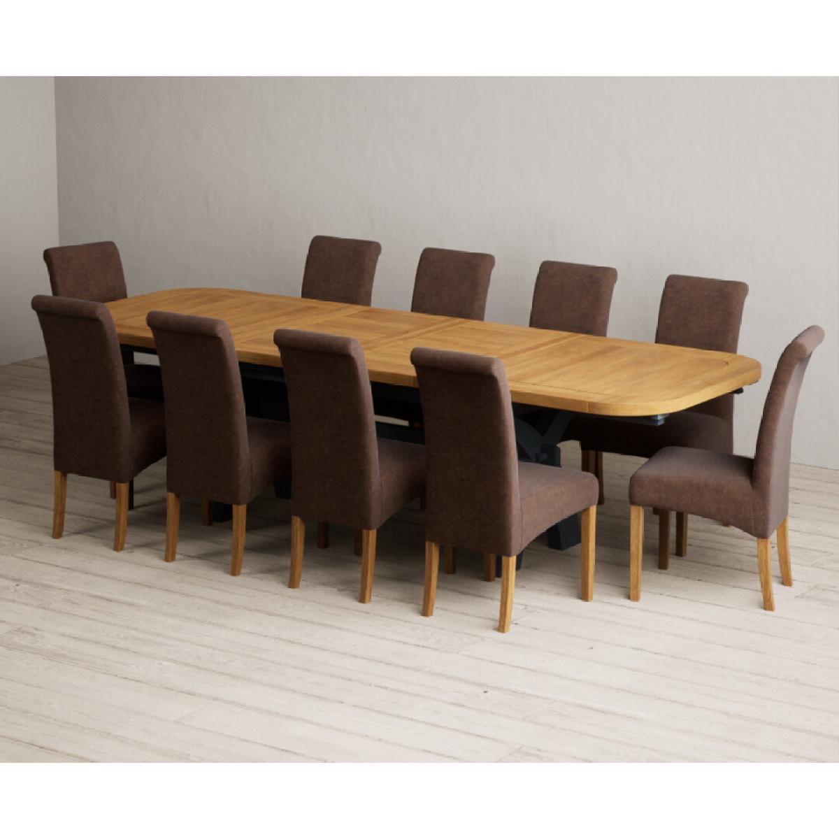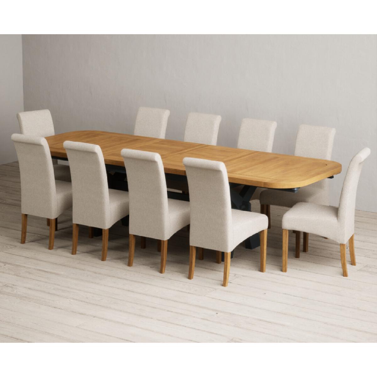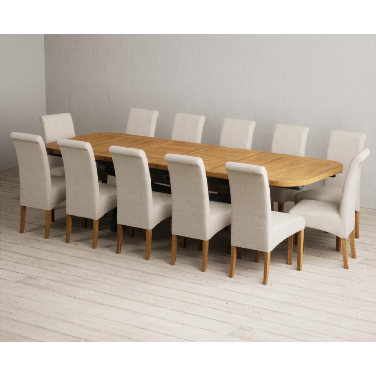Extending Olympia 180cm Oak and Dark Blue Painted Dining Table with 6 Charcoal Grey Scroll Back Chairs