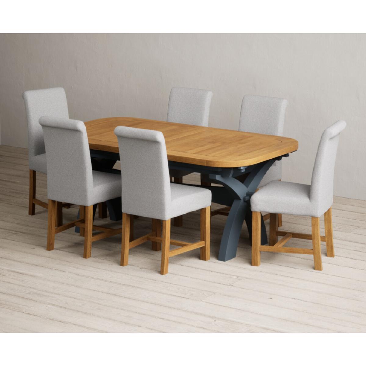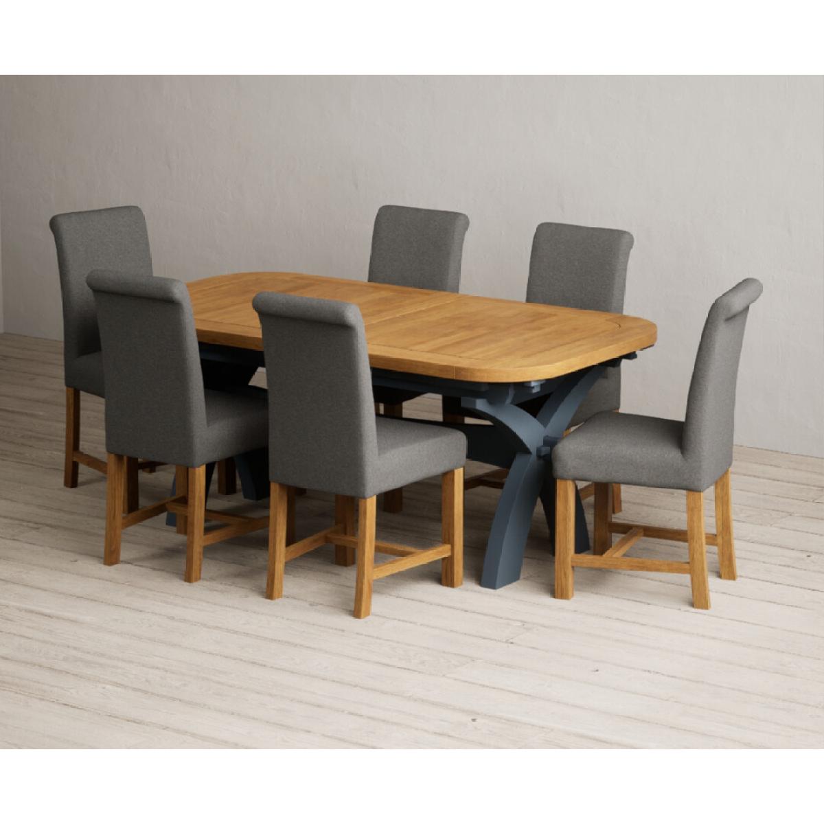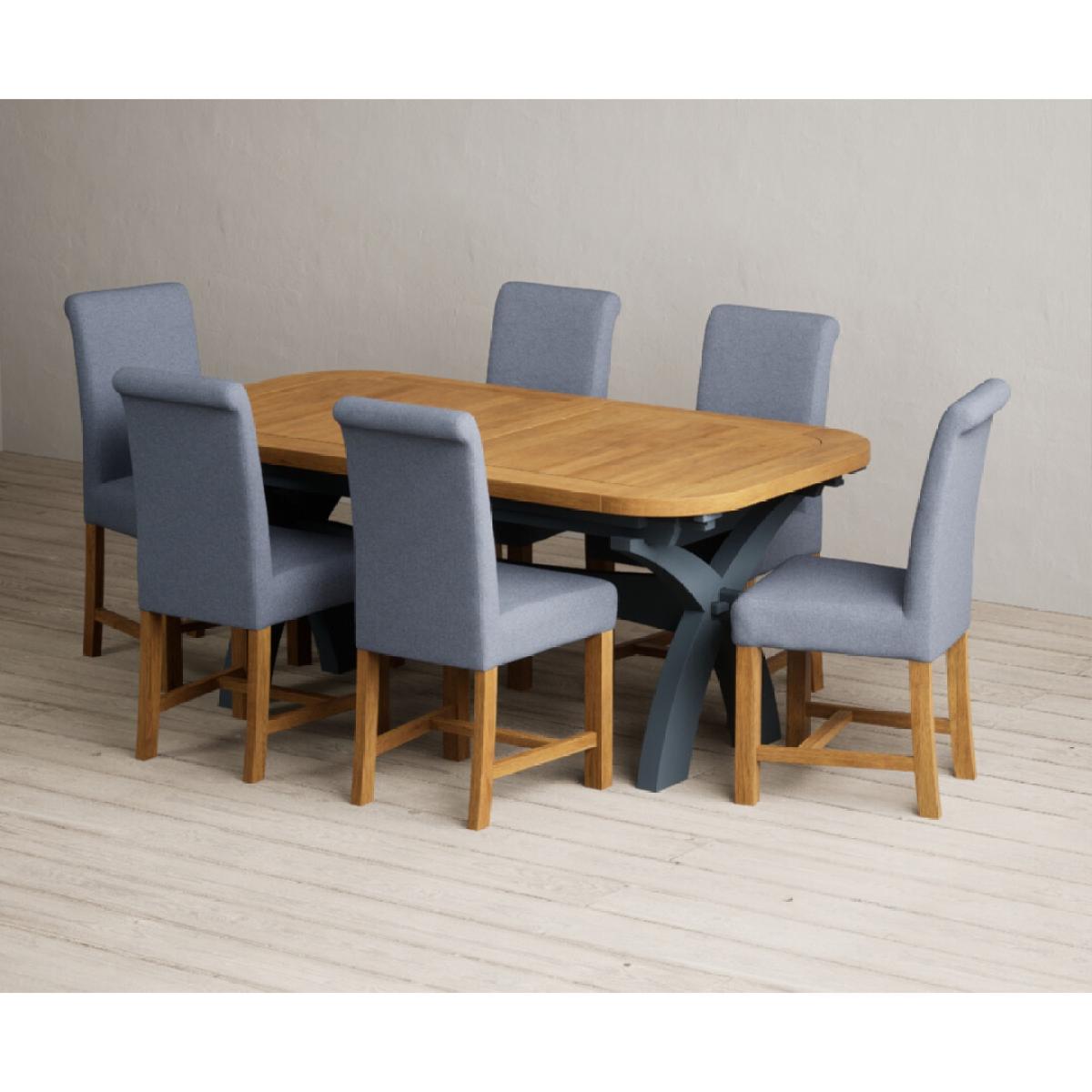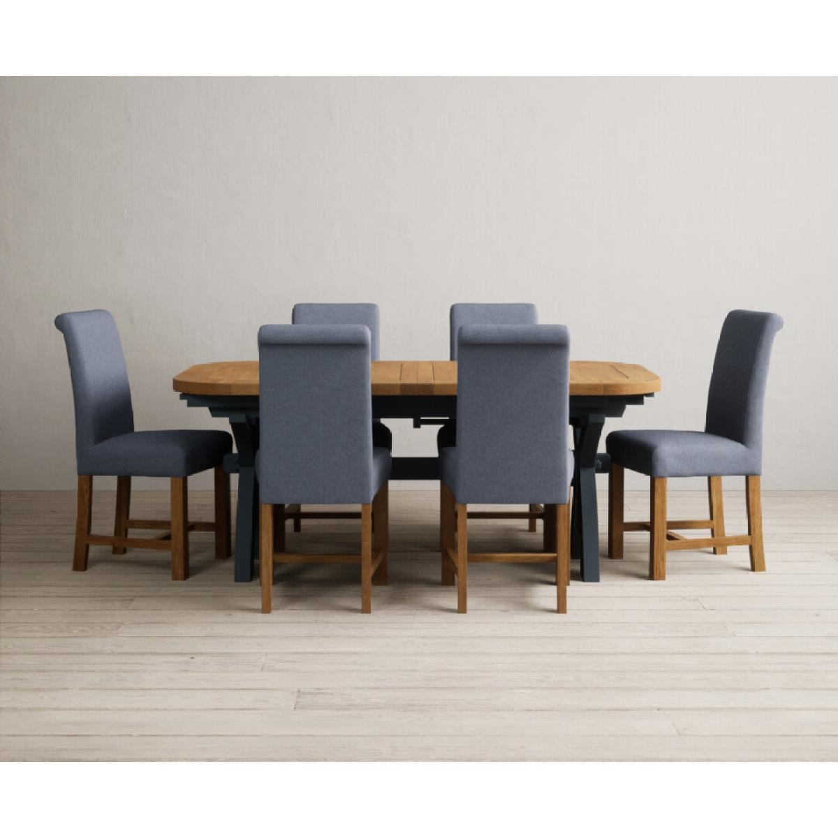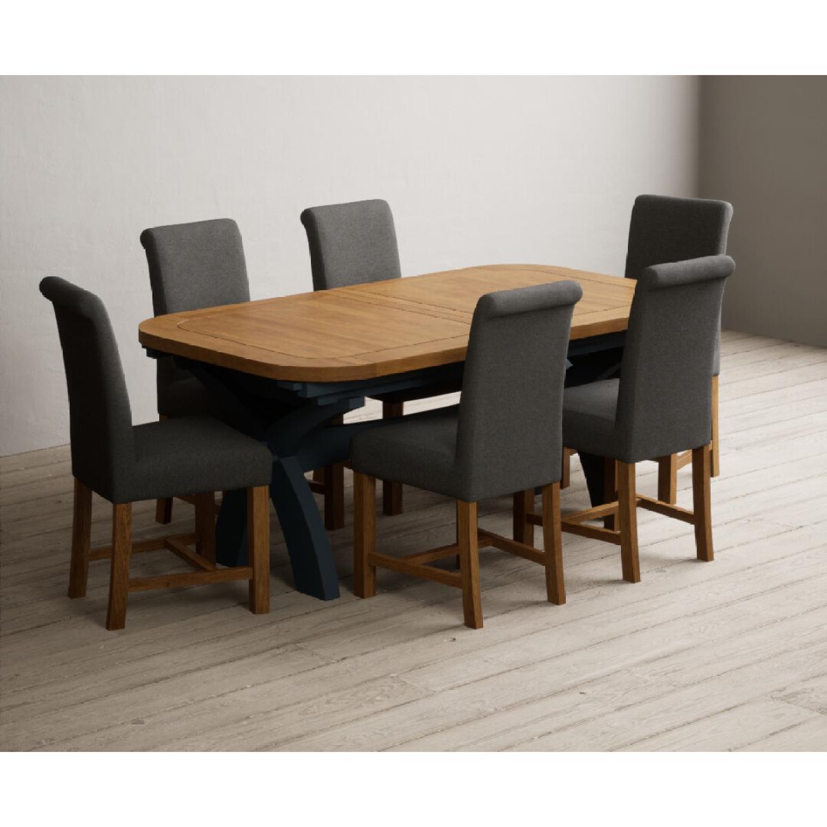 Extending Olympia 180cm Oak and Dark Blue Painted Dining Table with 6 Grey Chairs