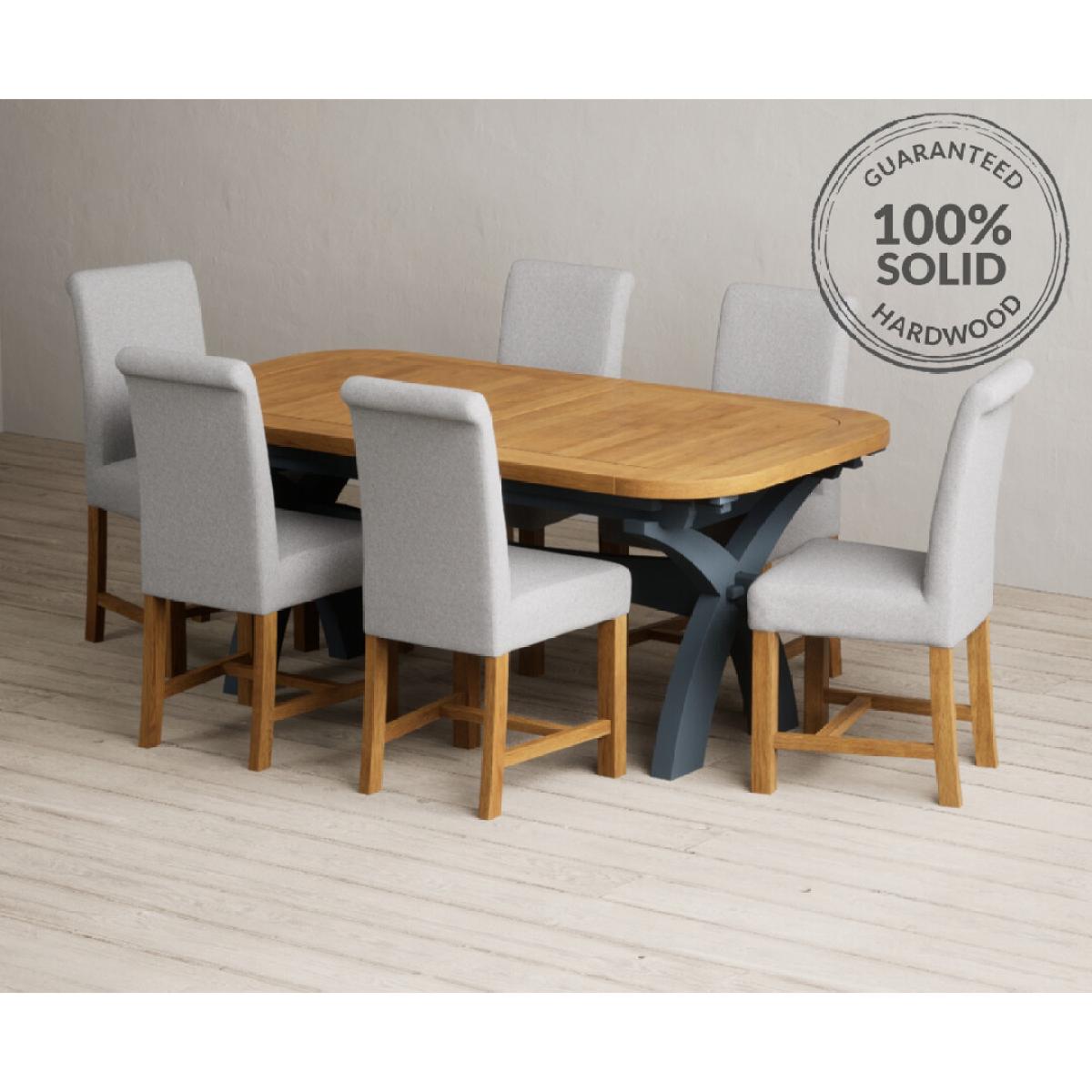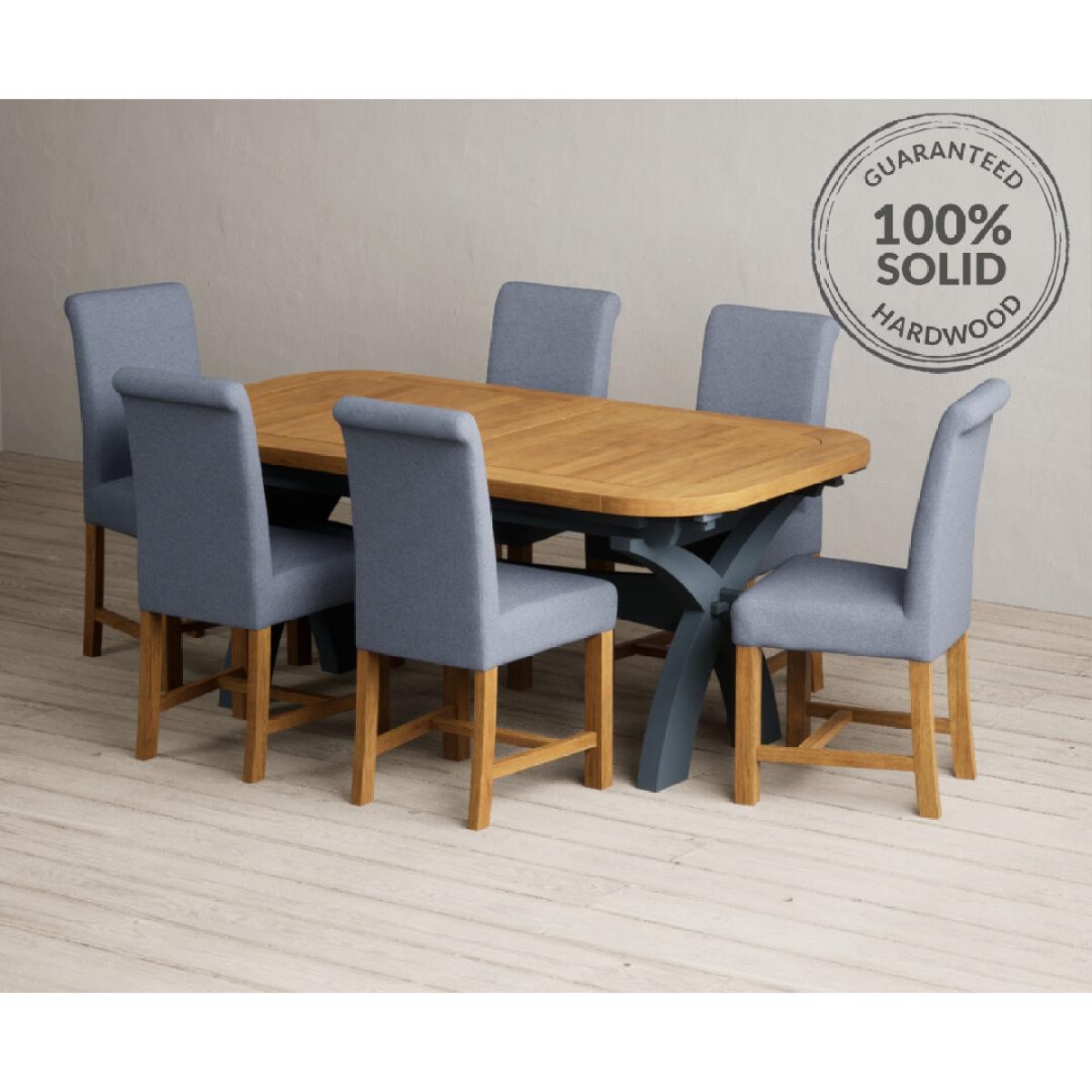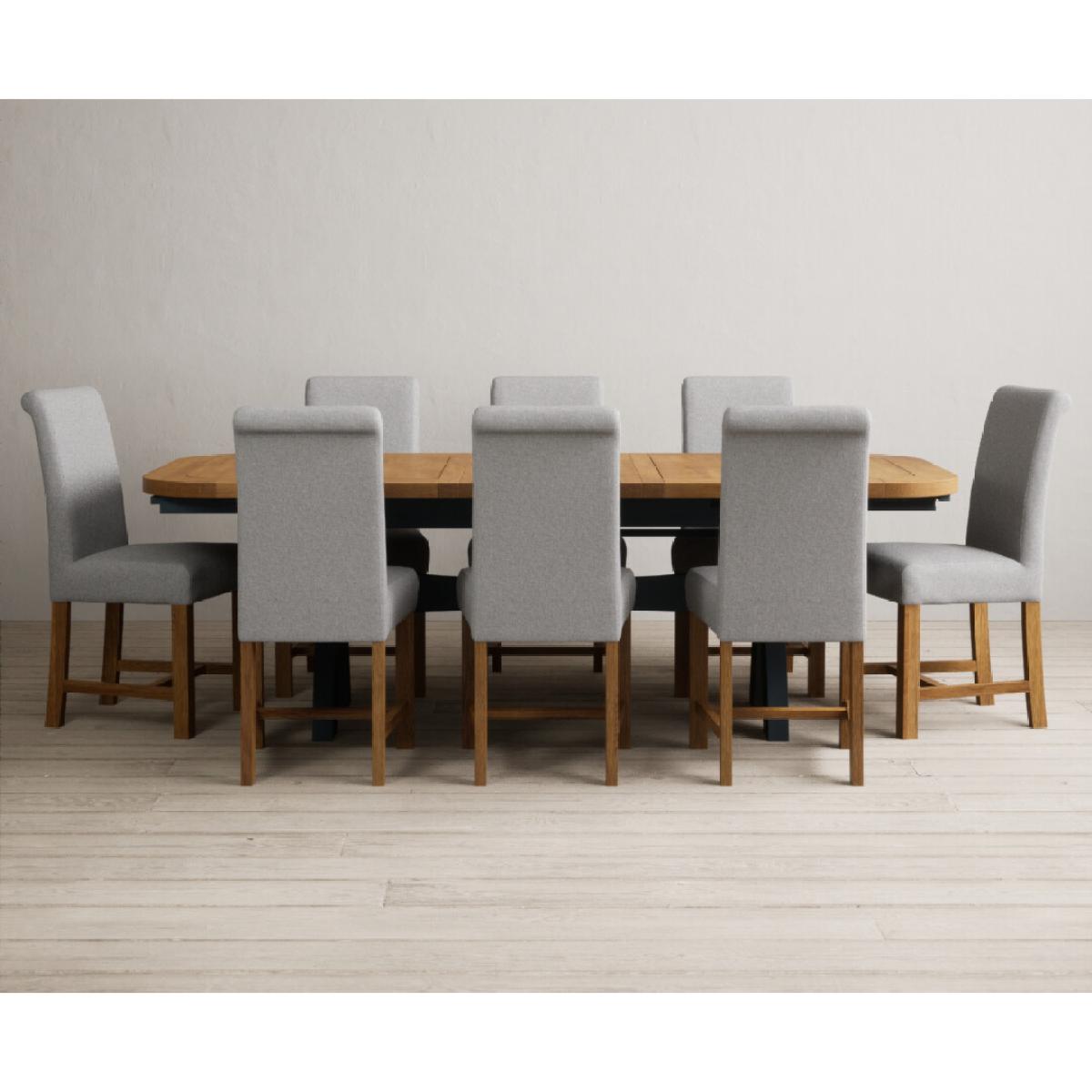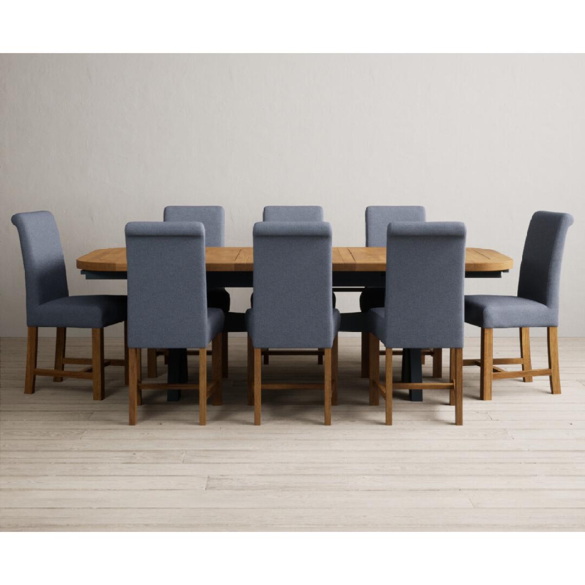 Extending Olympia 180cm Oak and Dark Blue Painted Dining Table with 6 Grey Chairs