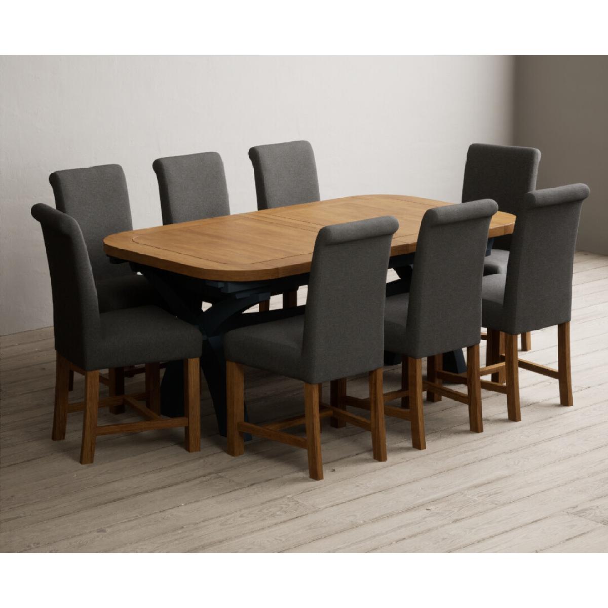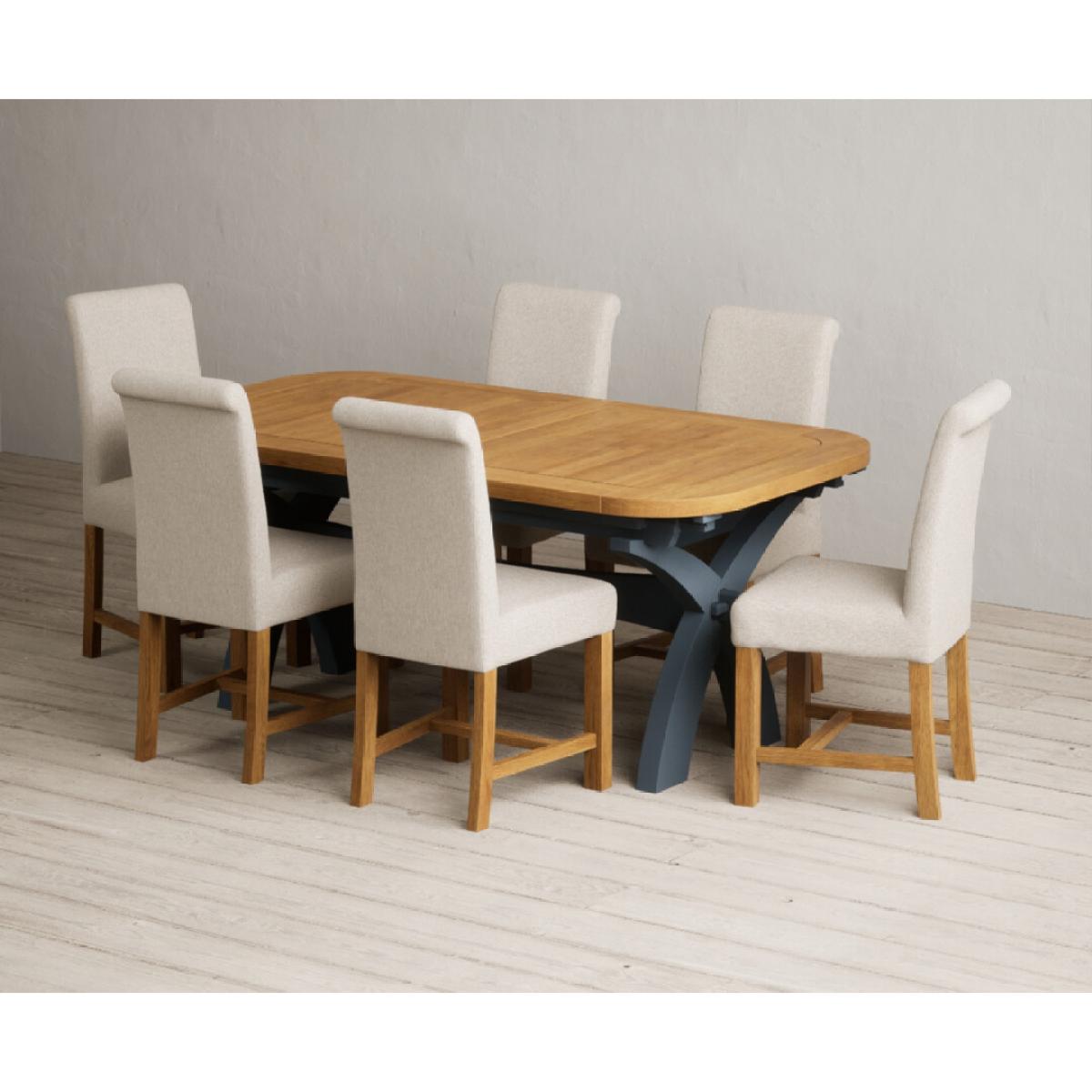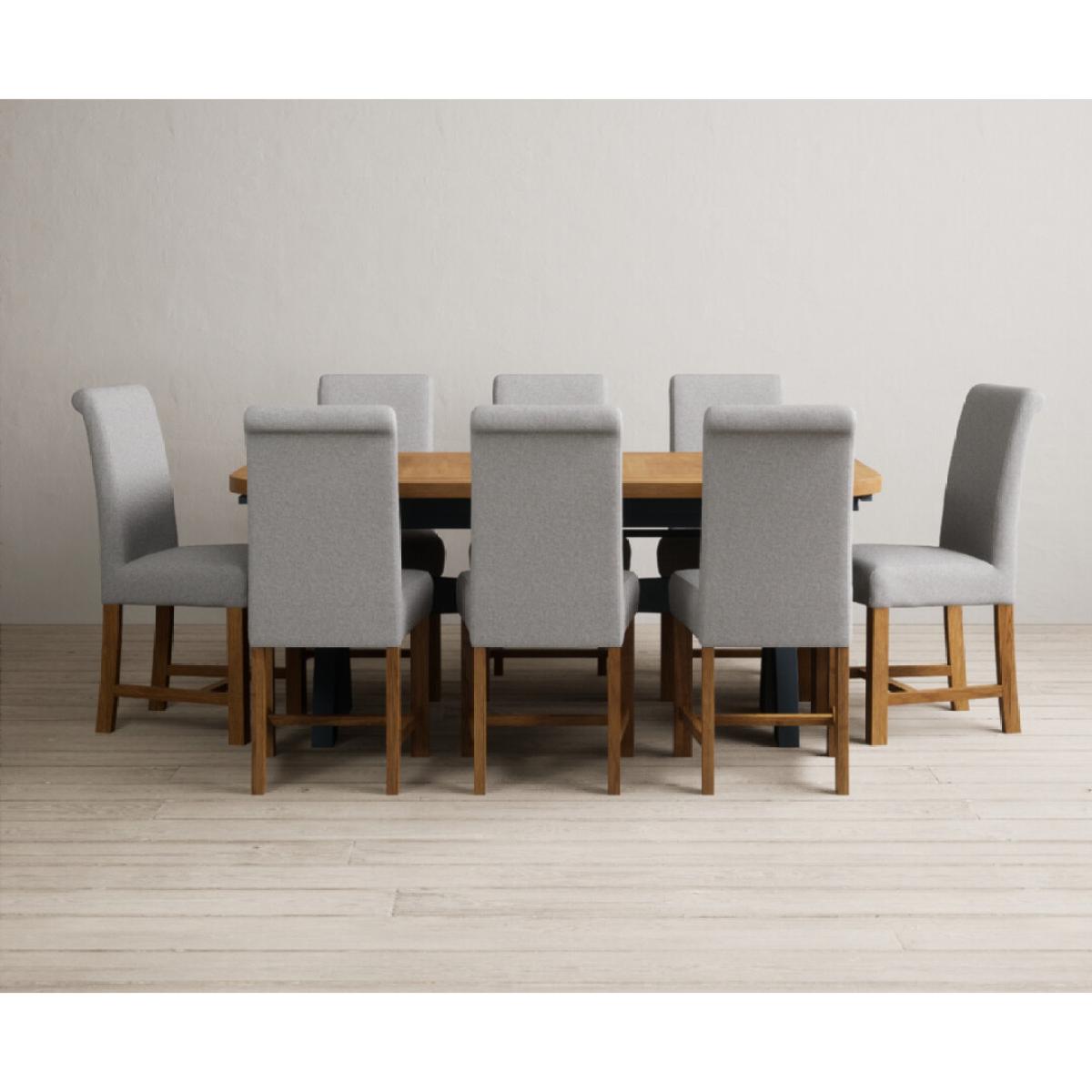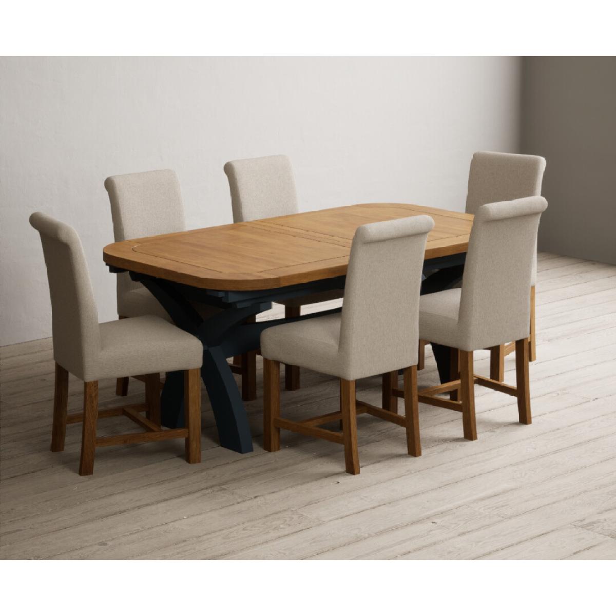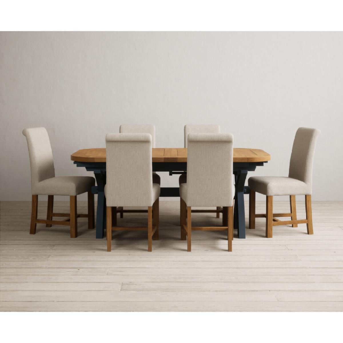 Extending Olympia 180cm Oak and Dark Blue Painted Dining Table with 6 Grey Chairs
