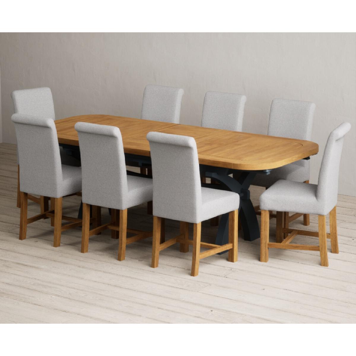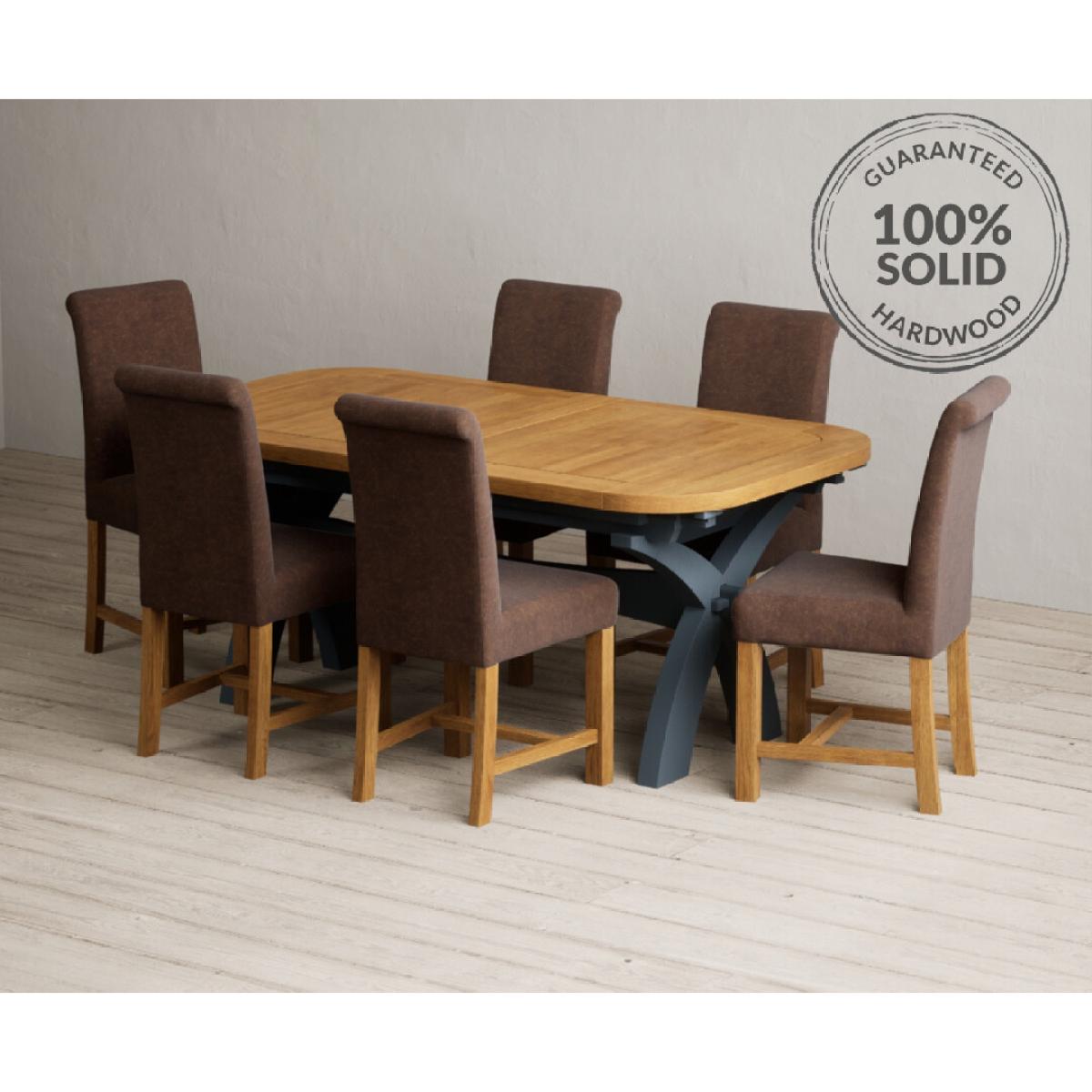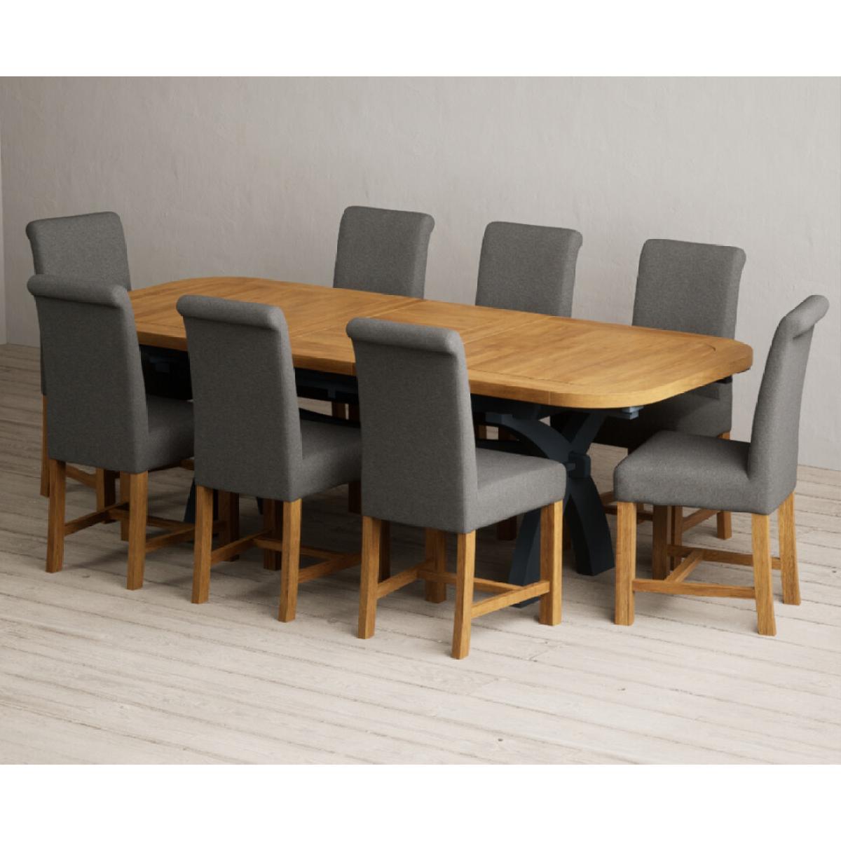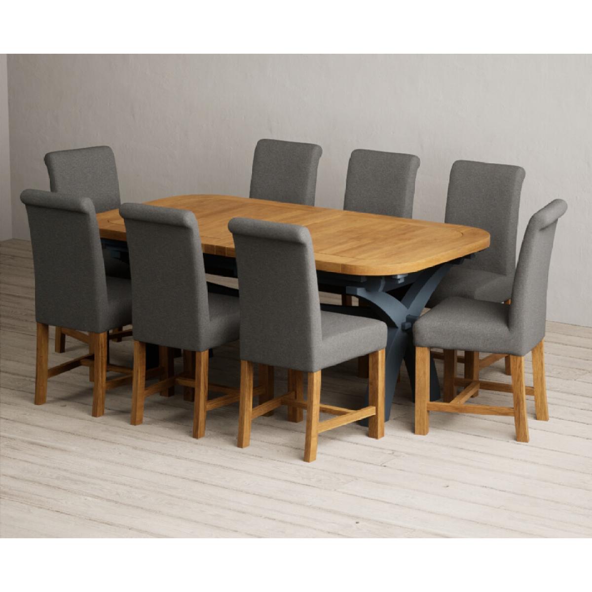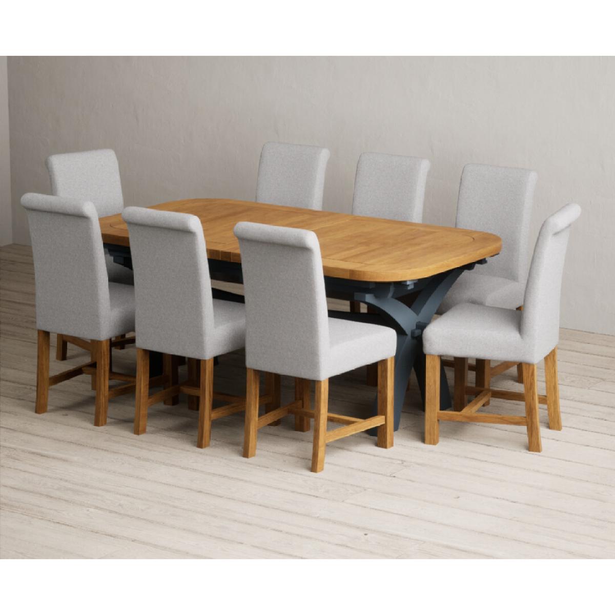 Extending Olympia 180cm Oak and Dark Blue Painted Dining Table with 6 Grey Chairs