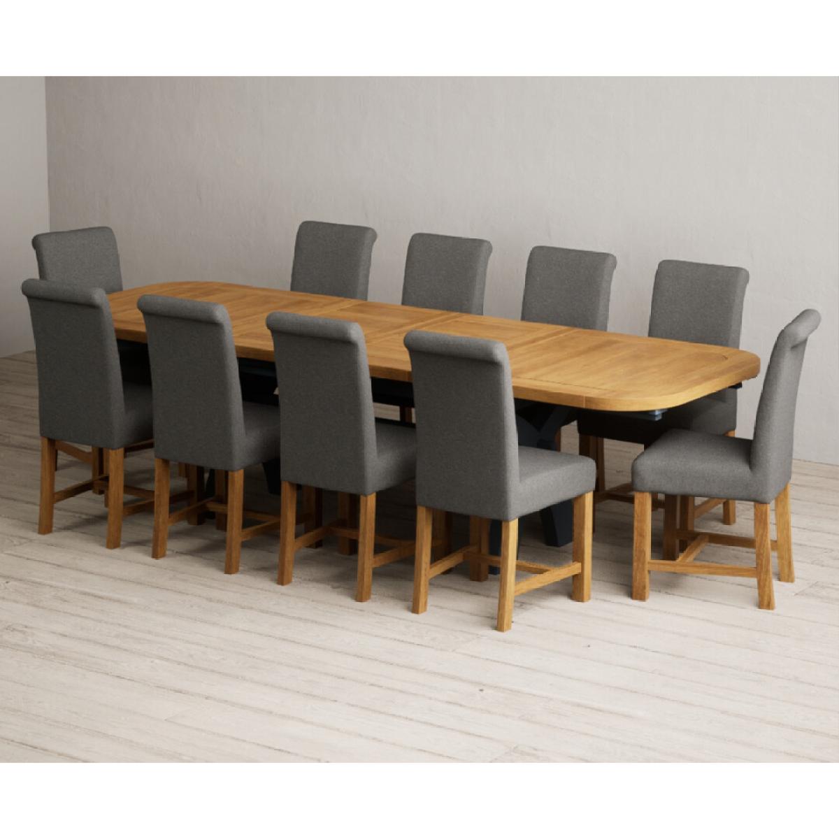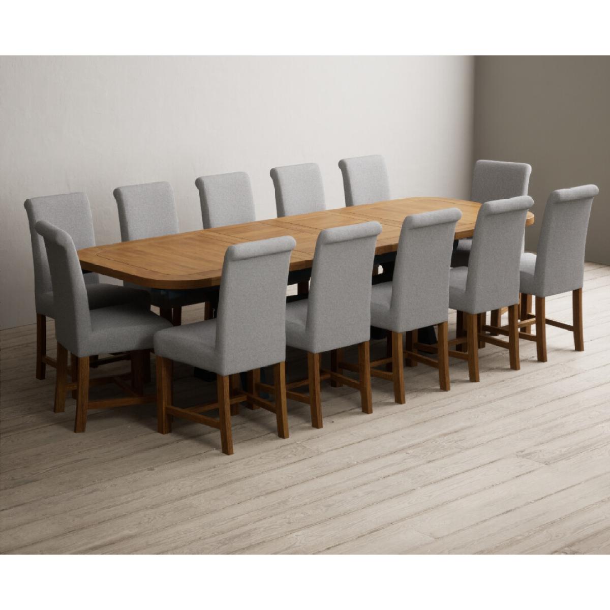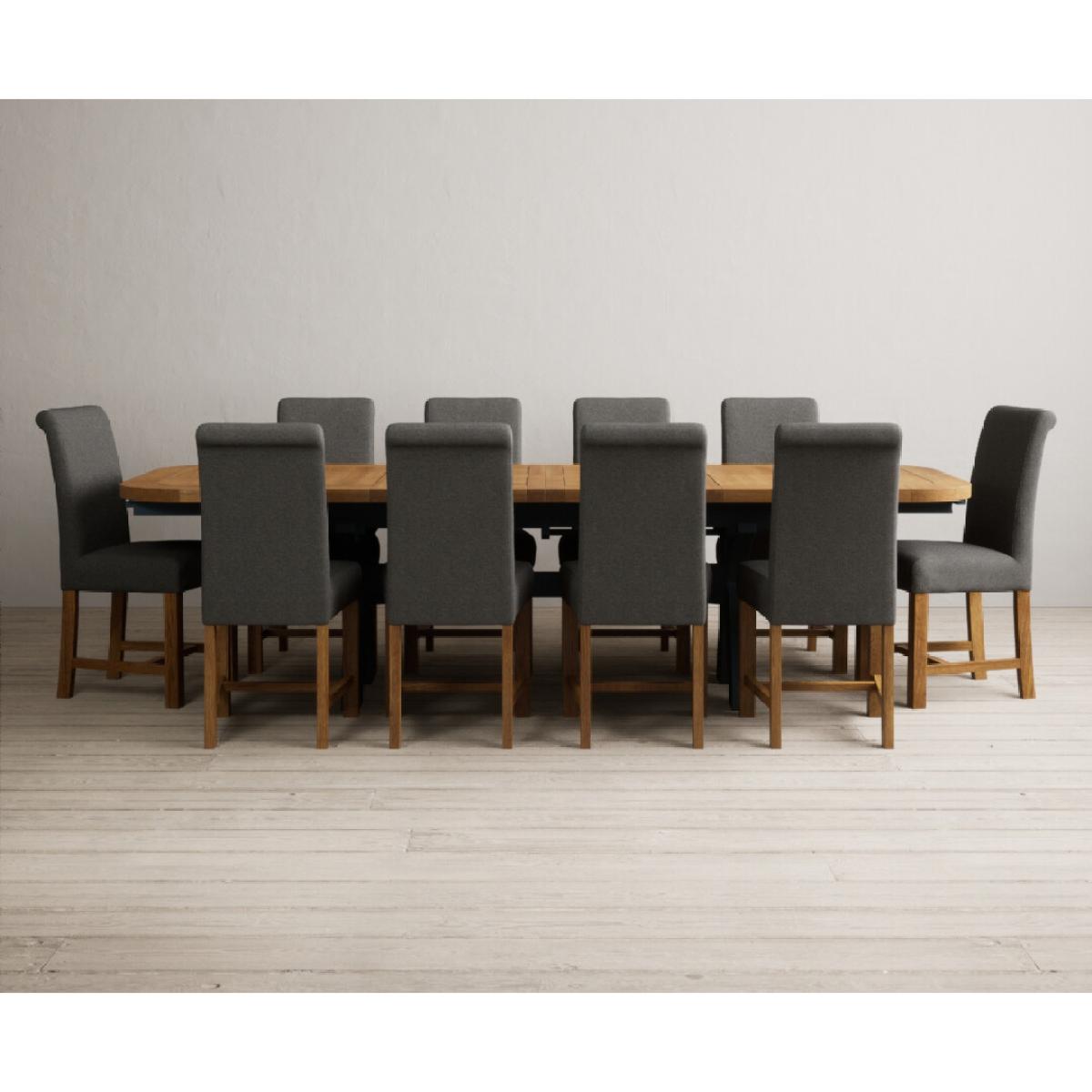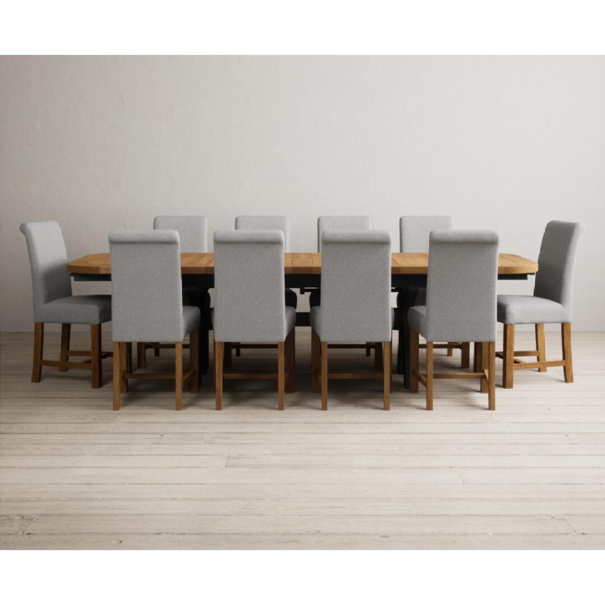 Extending Olympia 180cm Oak and Dark Blue Painted Dining Table with 6 Grey Chairs