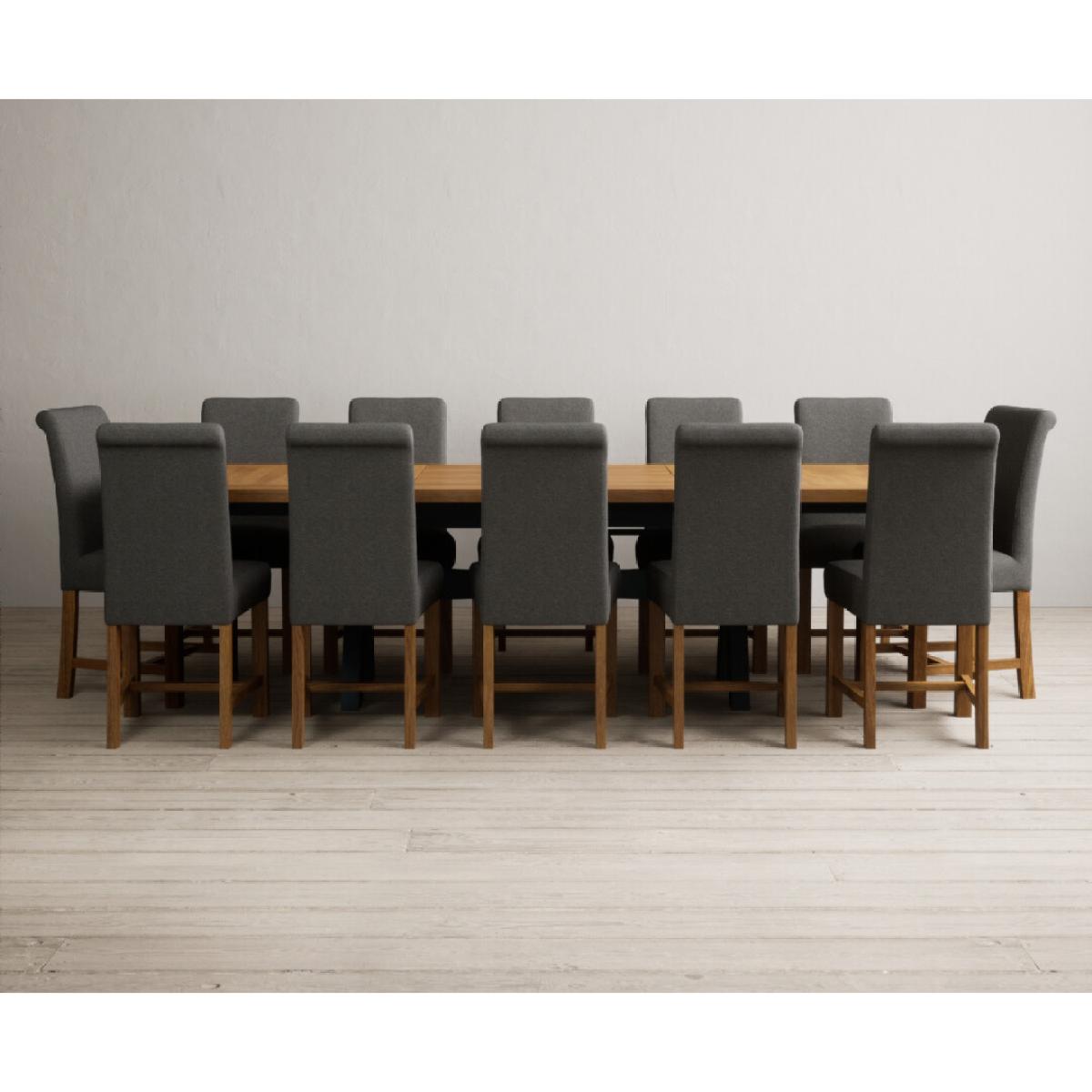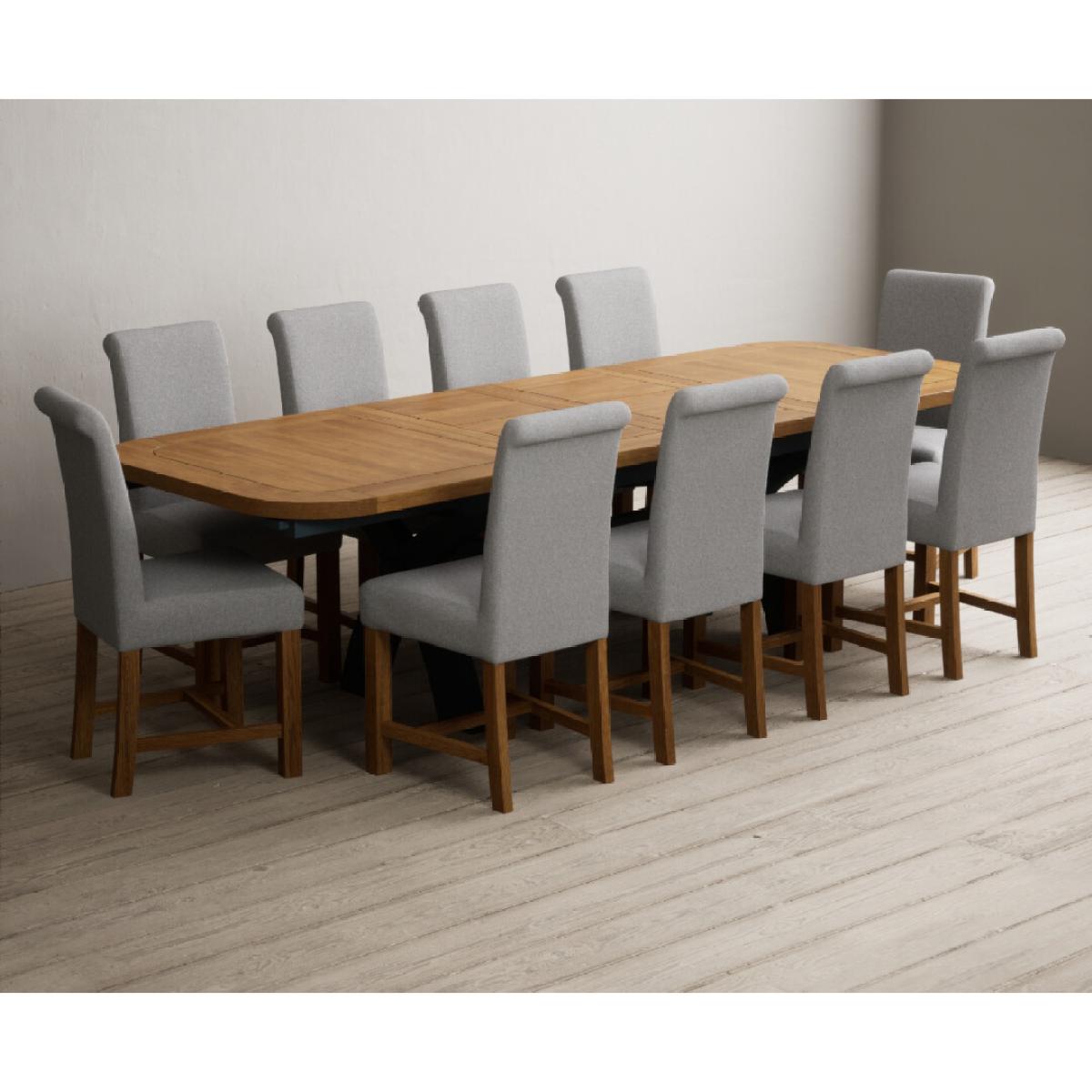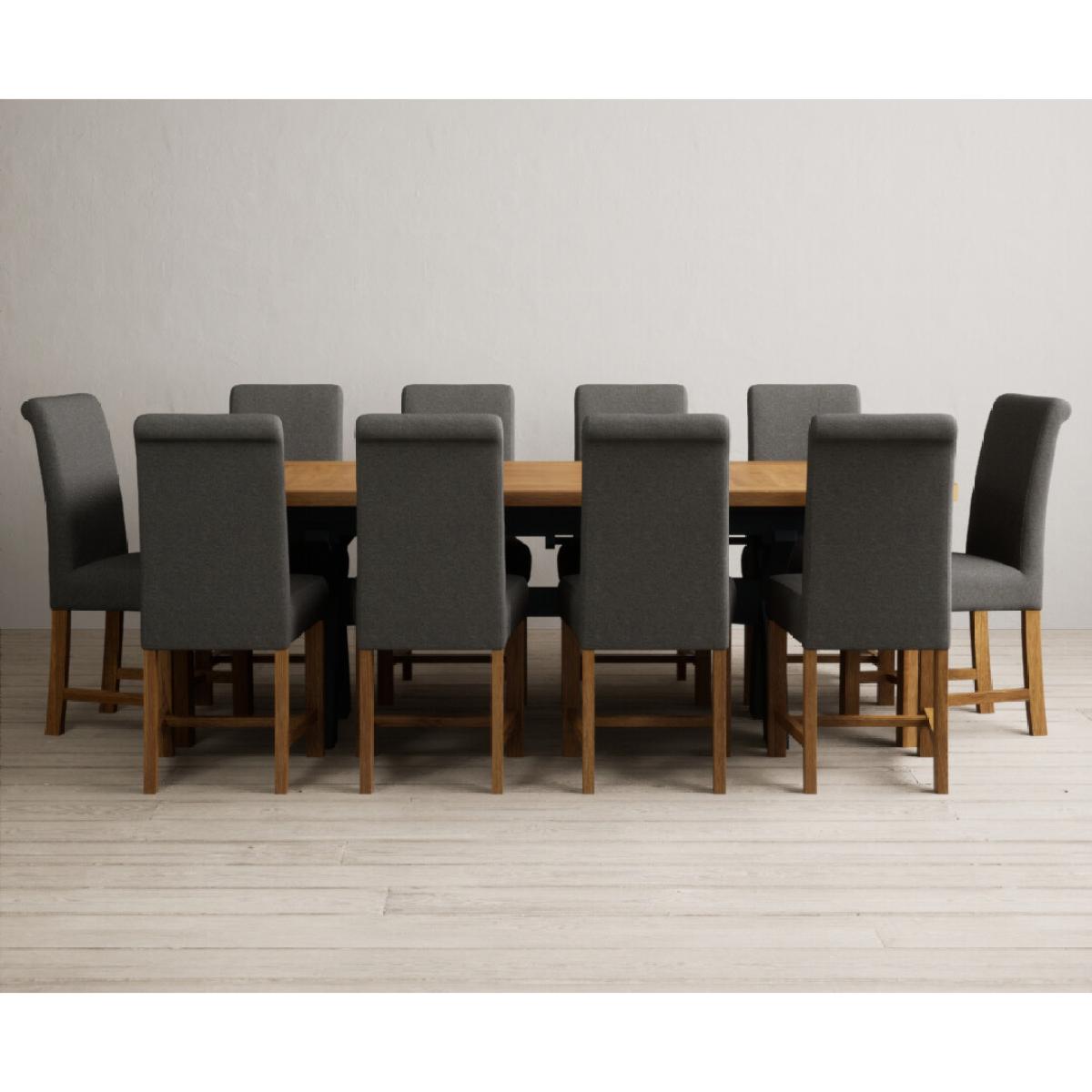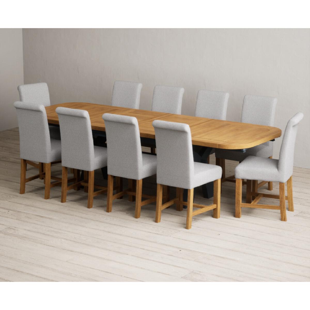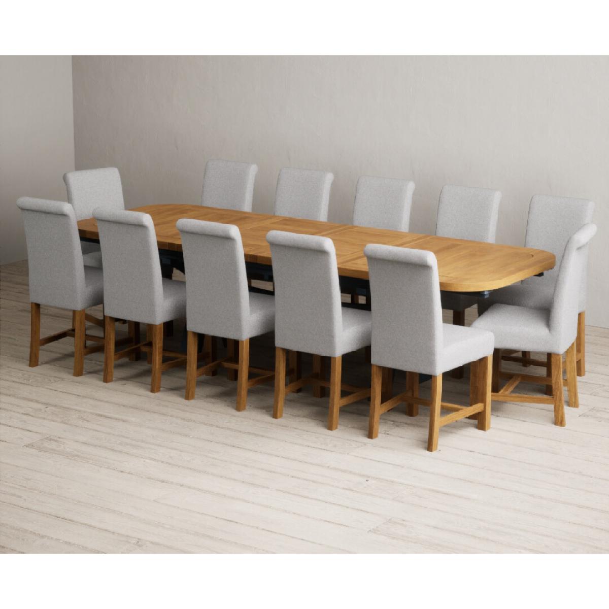 Extending Olympia 180cm Oak and Dark Blue Painted Dining Table with 6 Grey Chairs