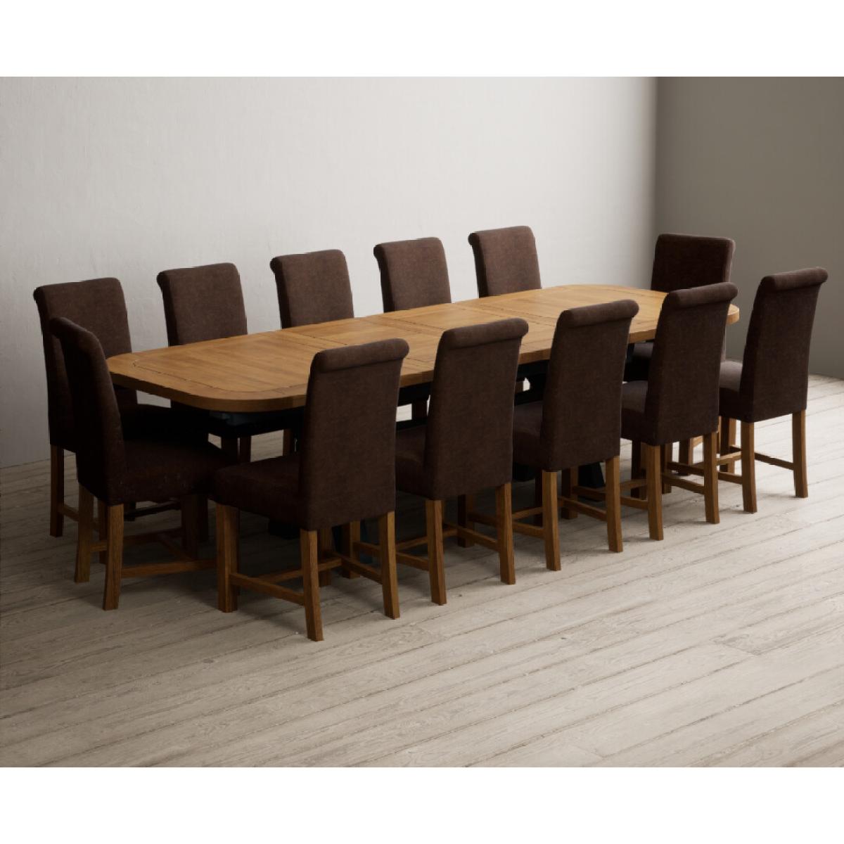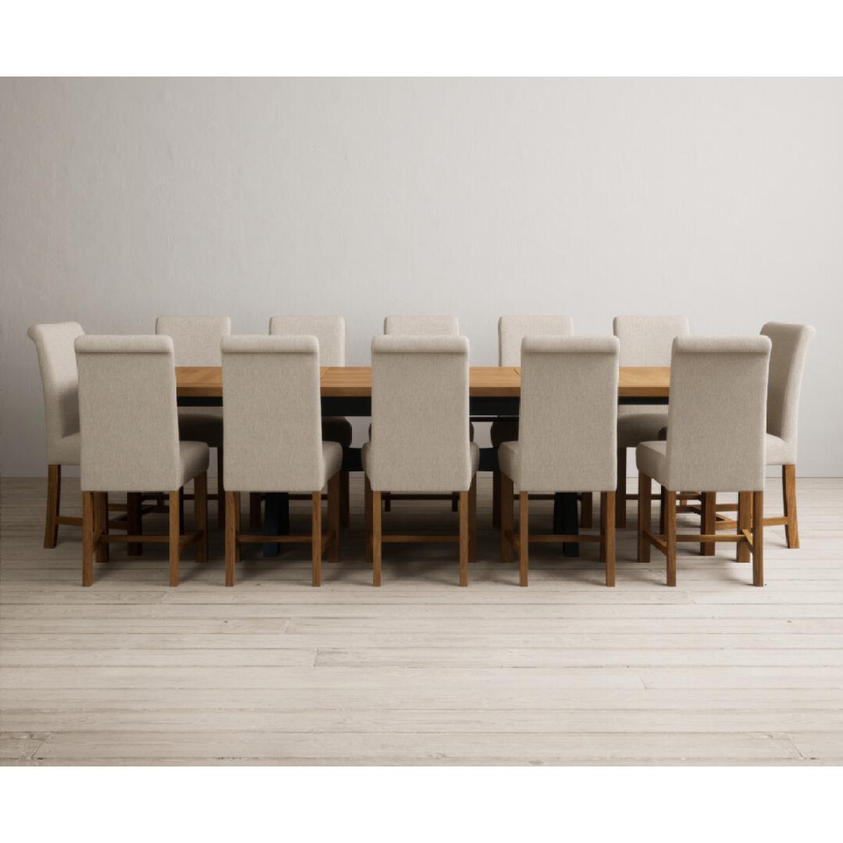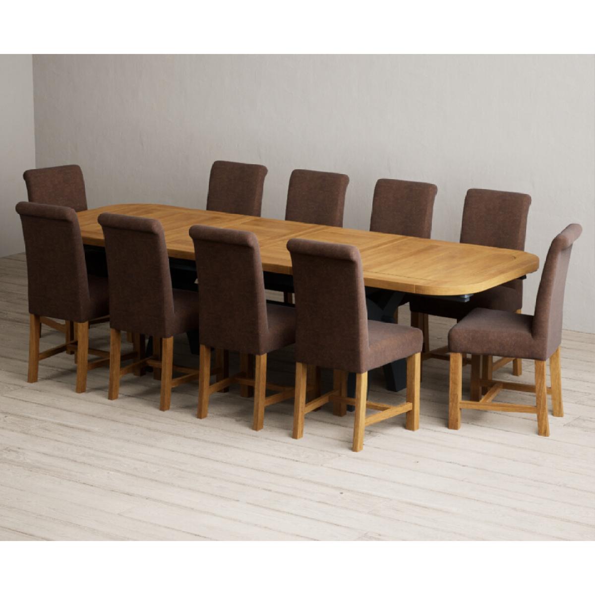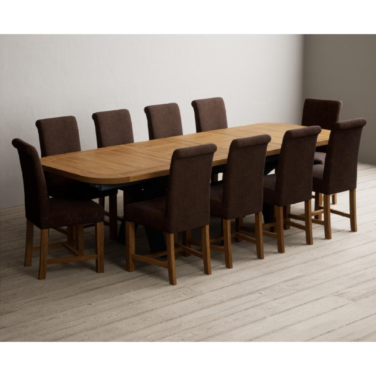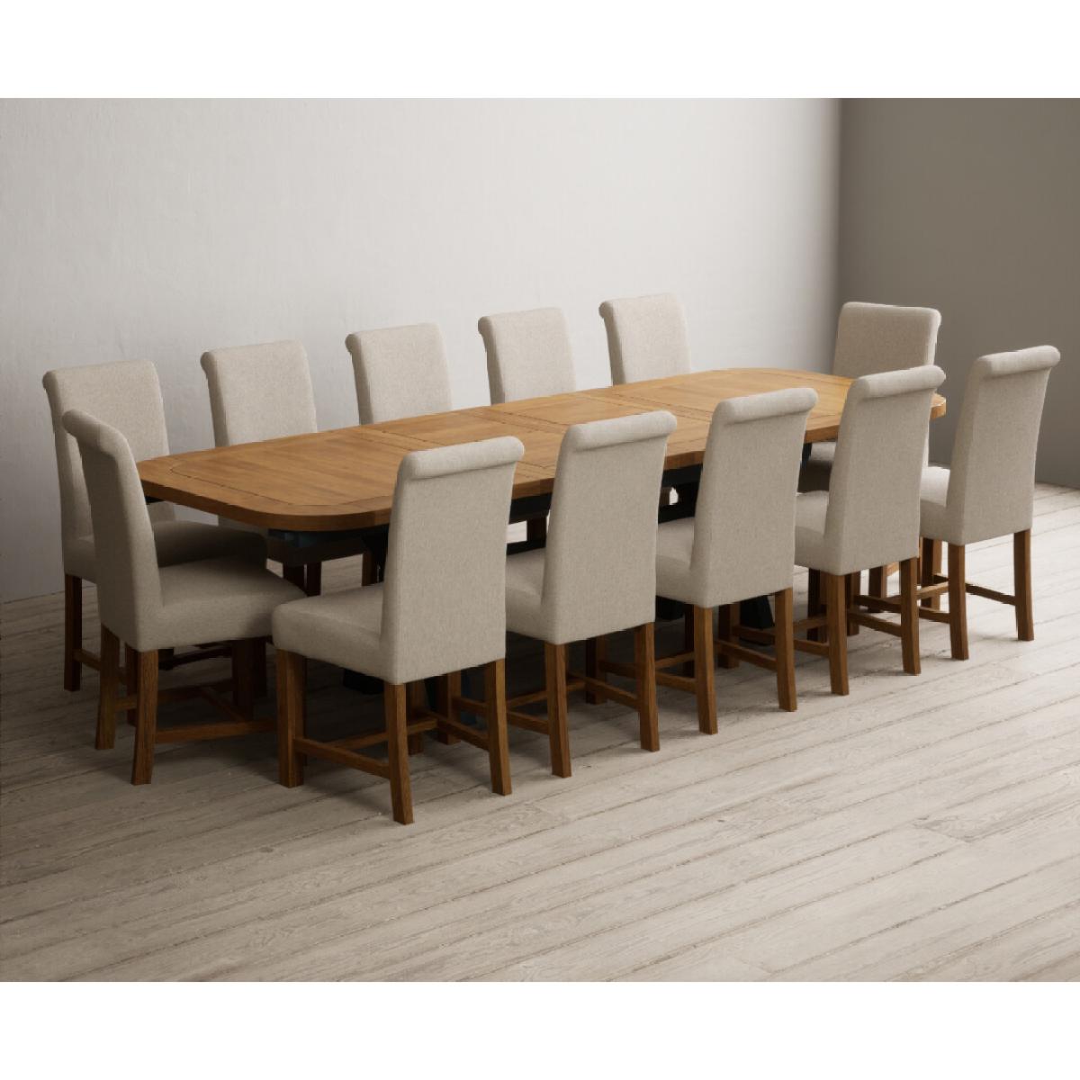 The Olympia 180cm Oak and Dark Blue Extending Dining Table with Scroll Back Braced Chairs is a stylish painted solid wood and solid oak extending dining set perfect for every occasion.