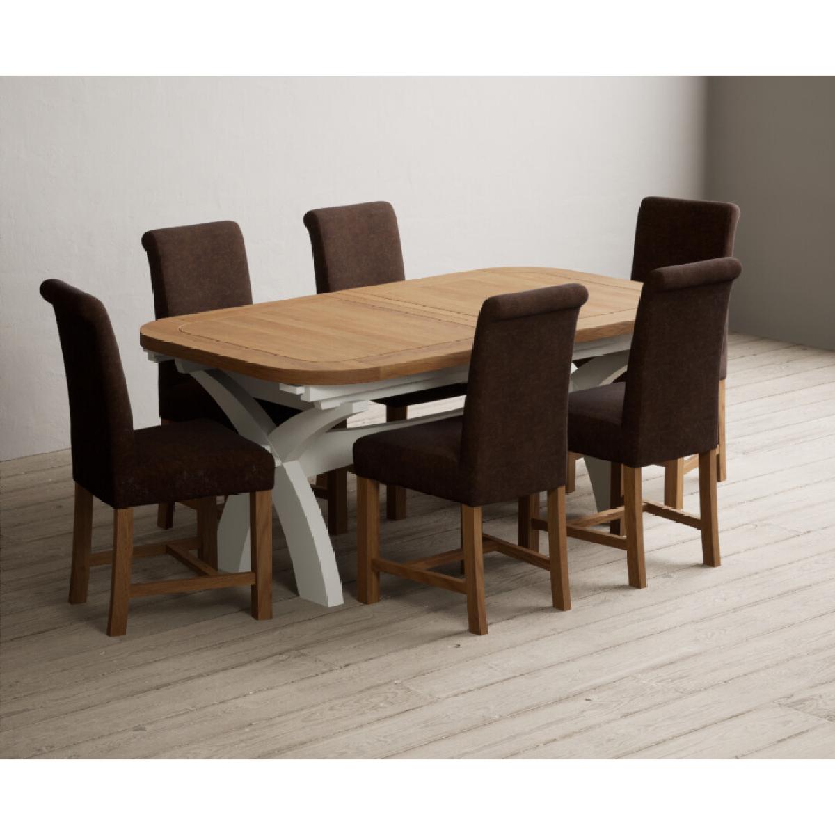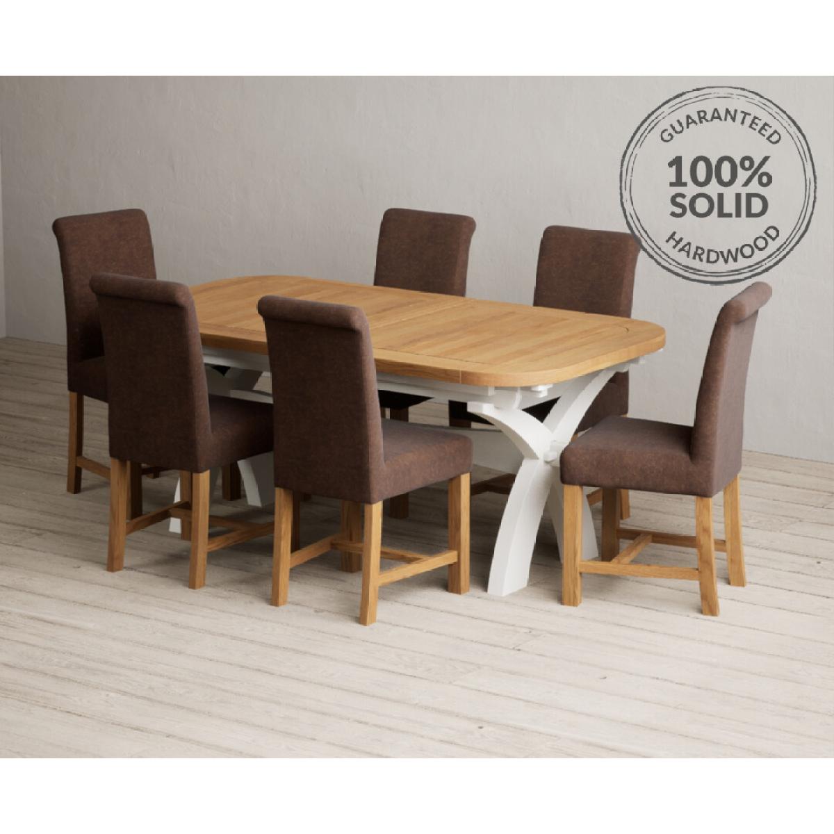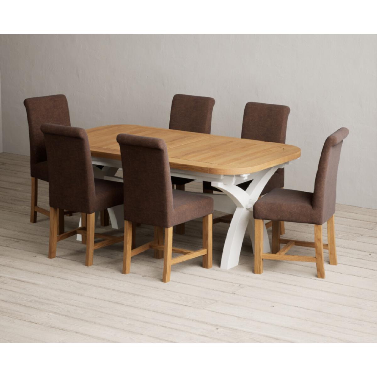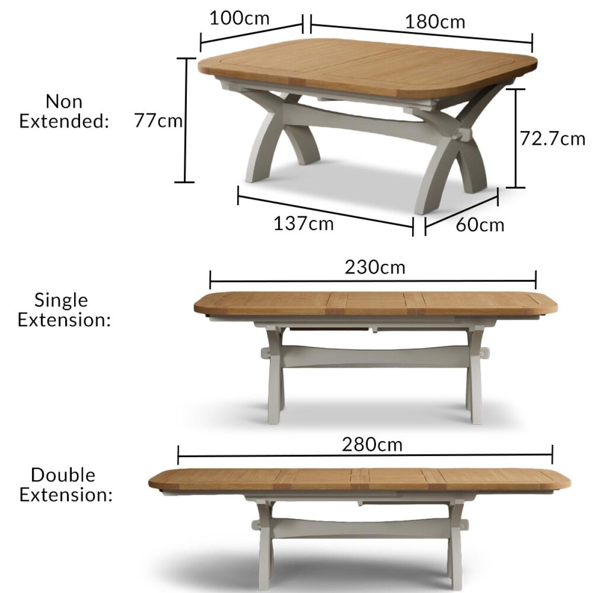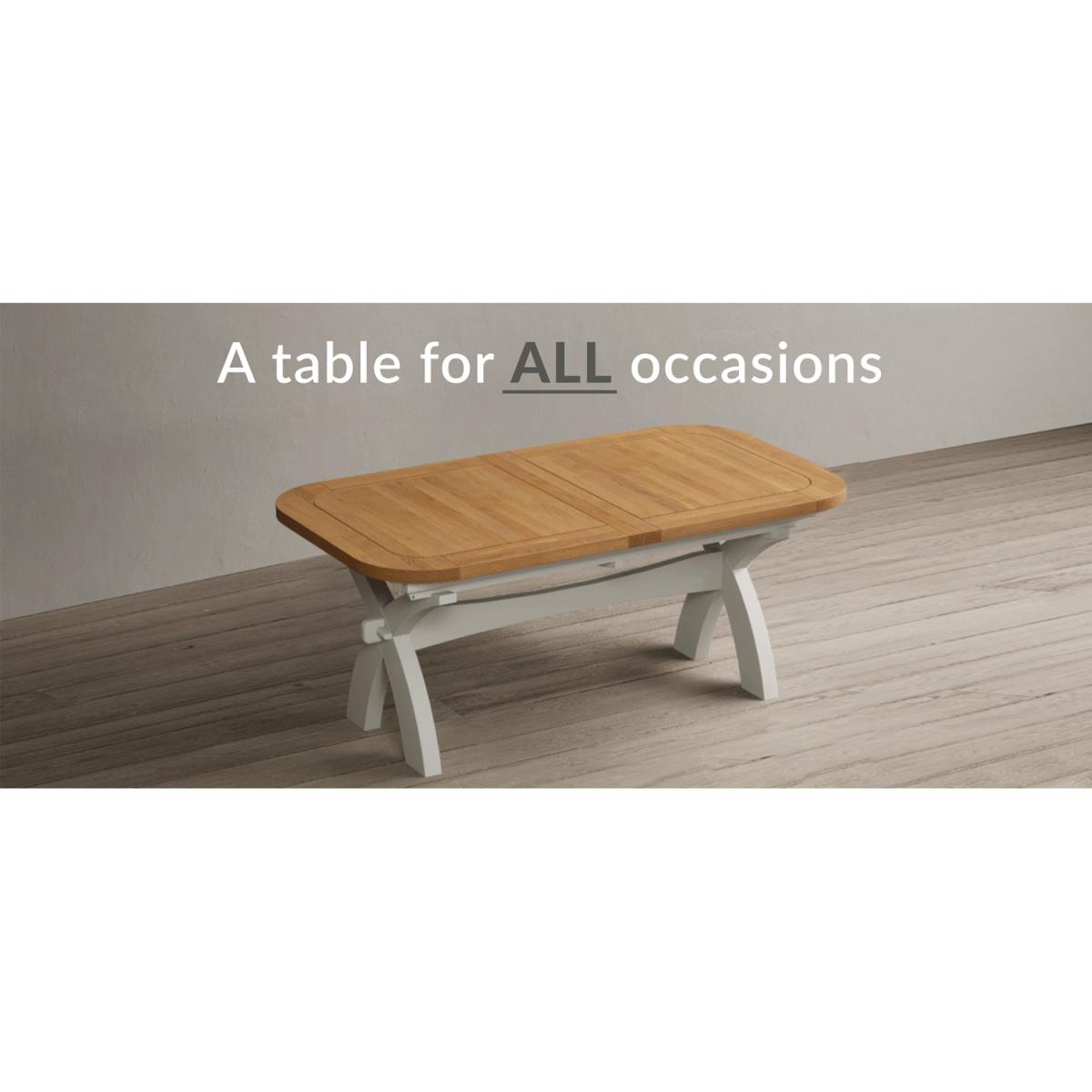 The Olympia 180cm Oak and Signal White Extending Dining Table with Braced Leg Chairs is a stylish painted solid wood and solid oak extending dining set perfect for every occasion.