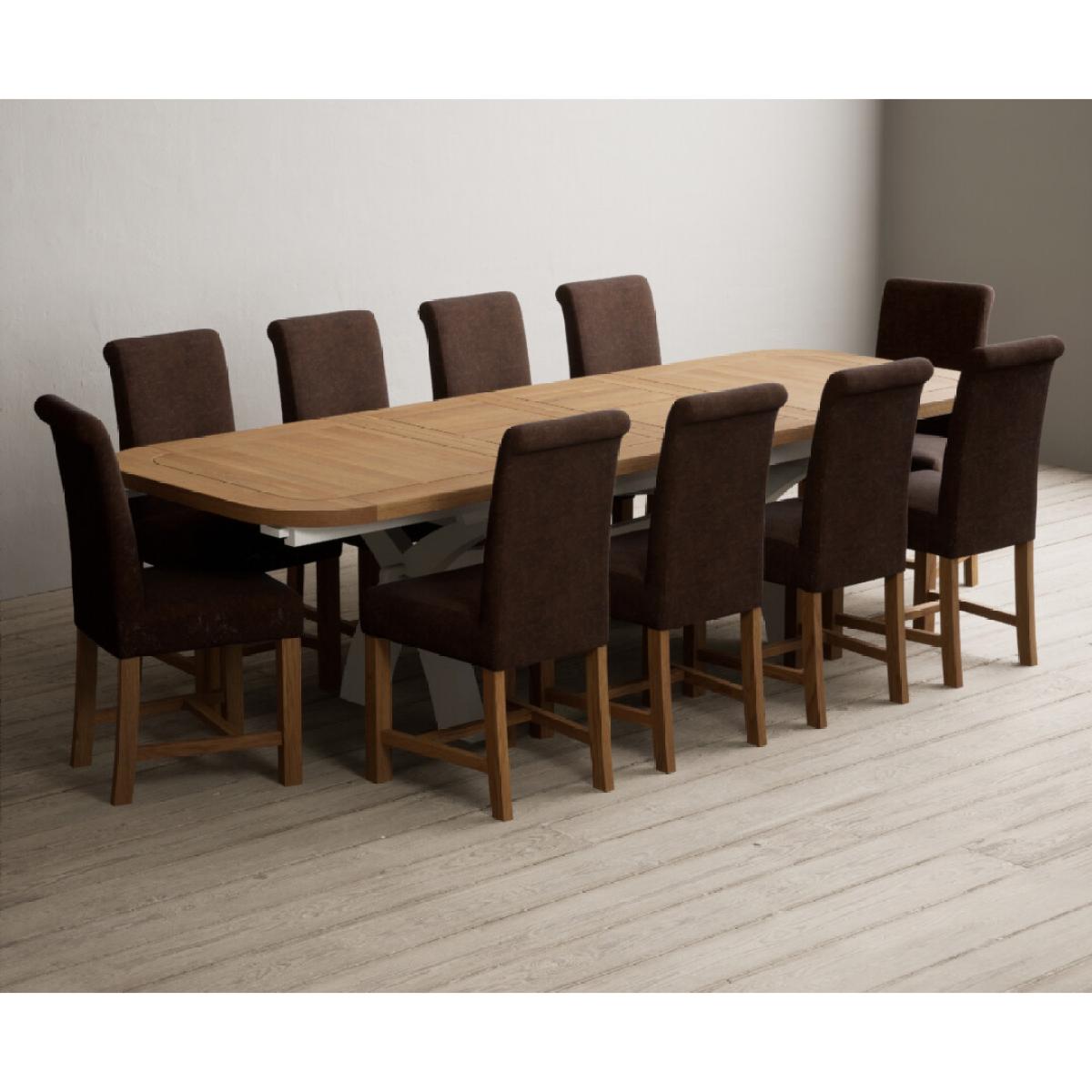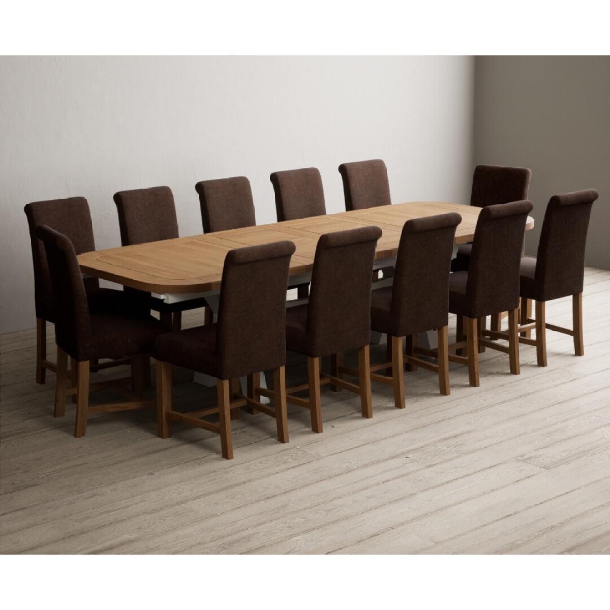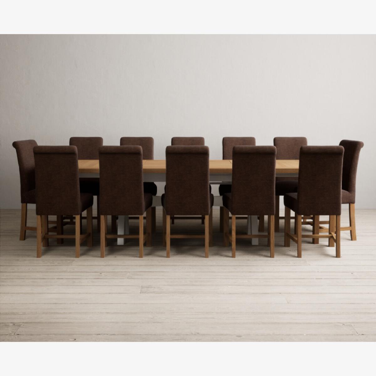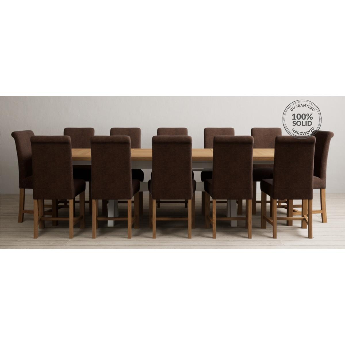 Extending Olympia 180cm Oak and Signal White Painted Dining Table with 12 Natural Chairs