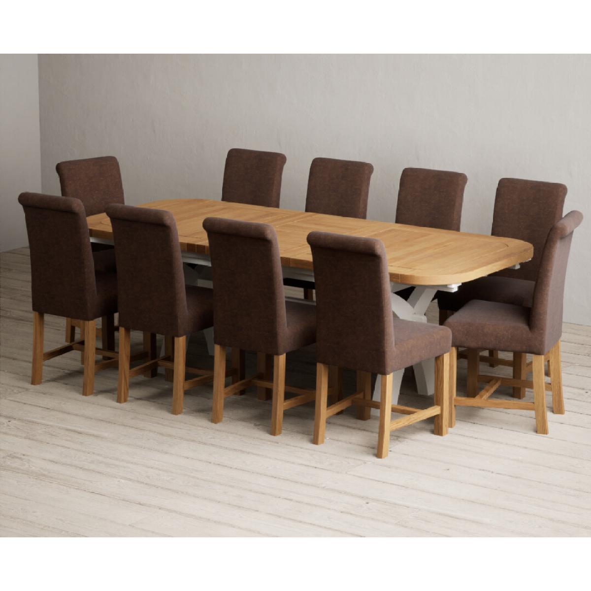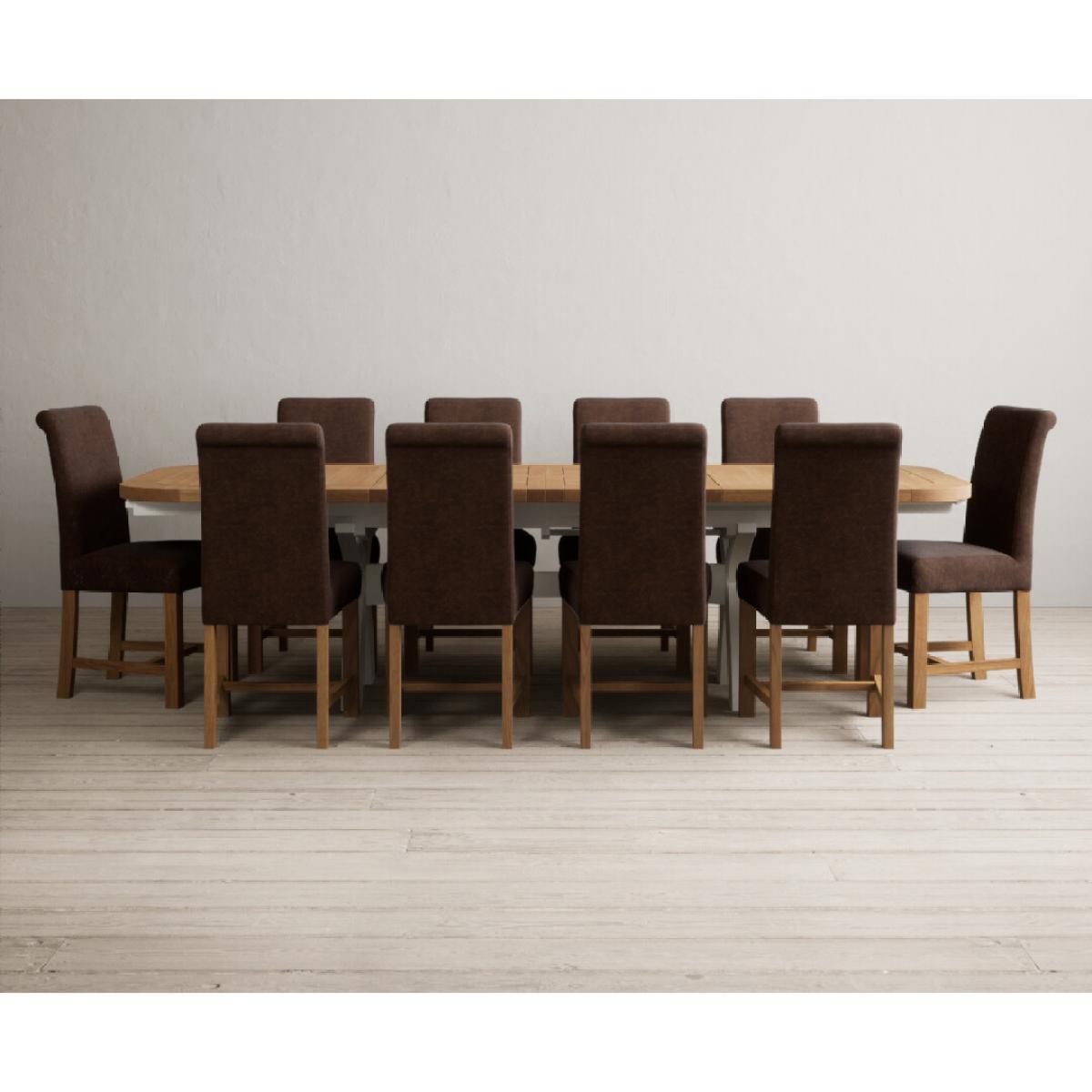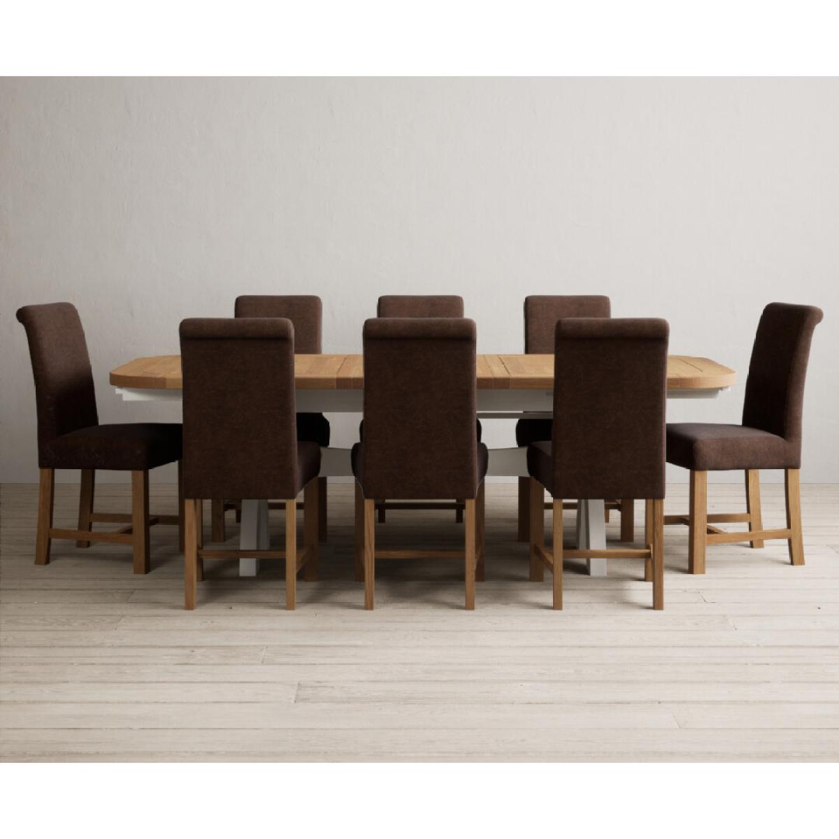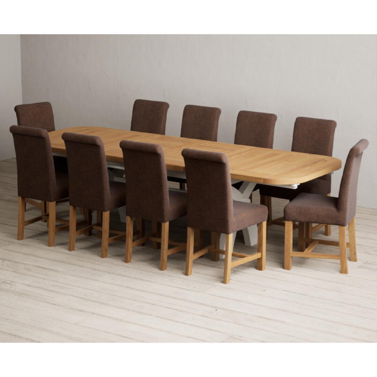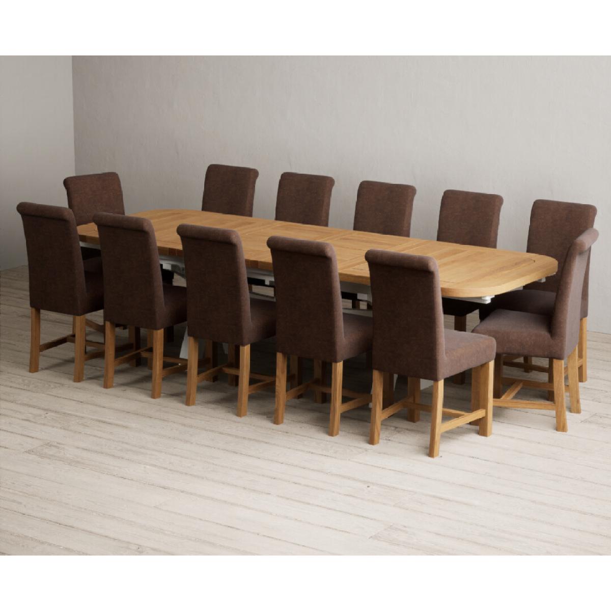 Extending Olympia 180cm Oak and Signal White Painted Dining Table with 12 Natural Chairs