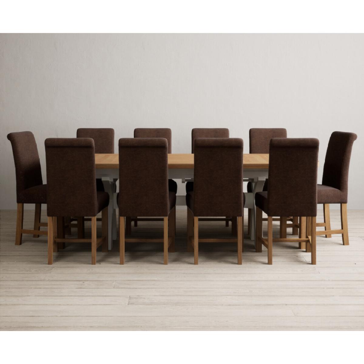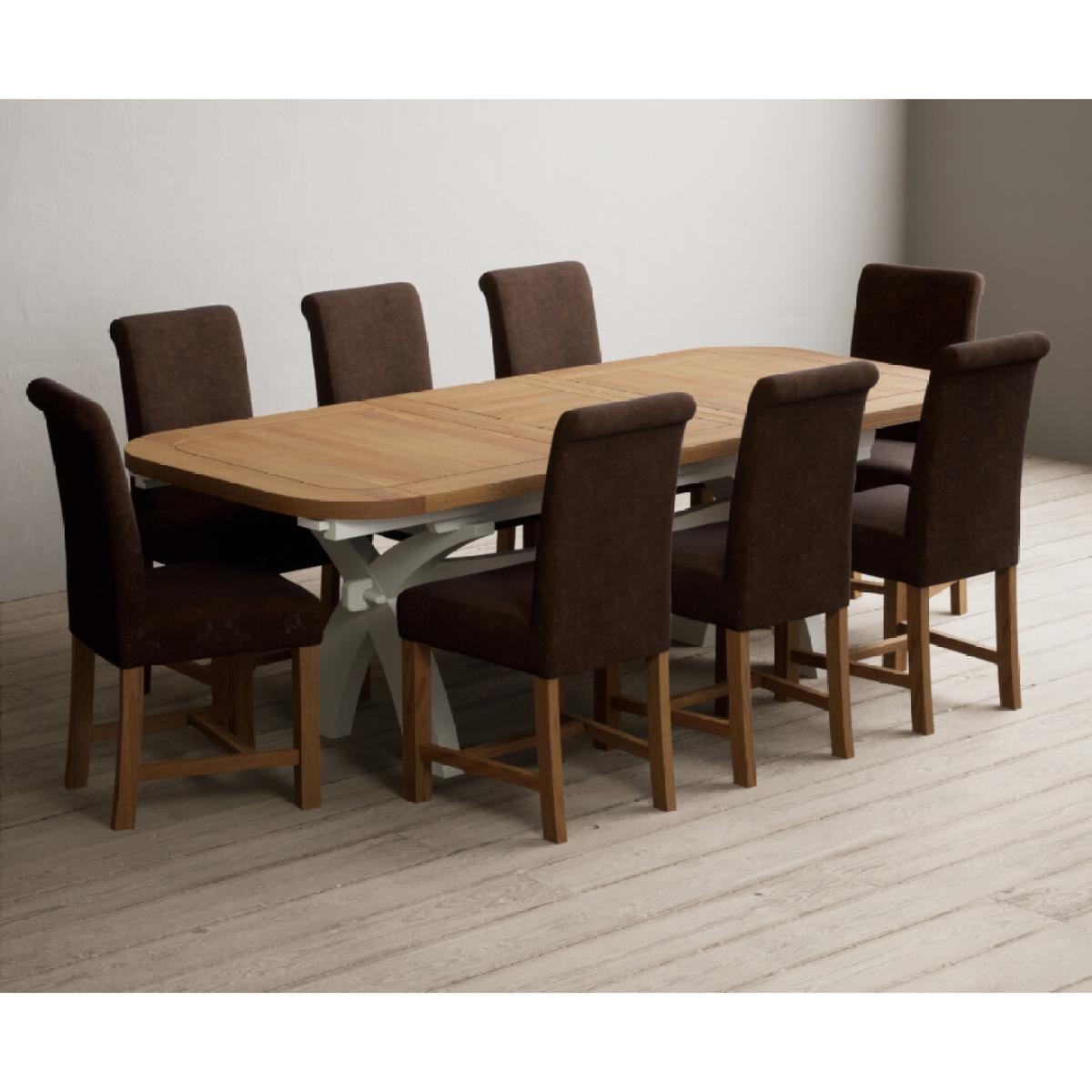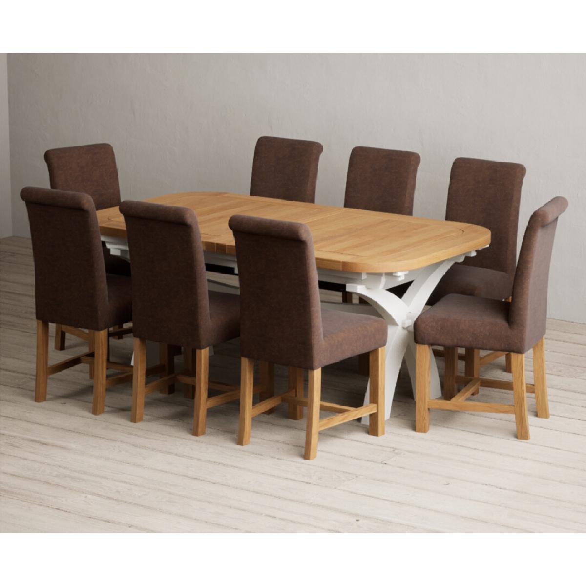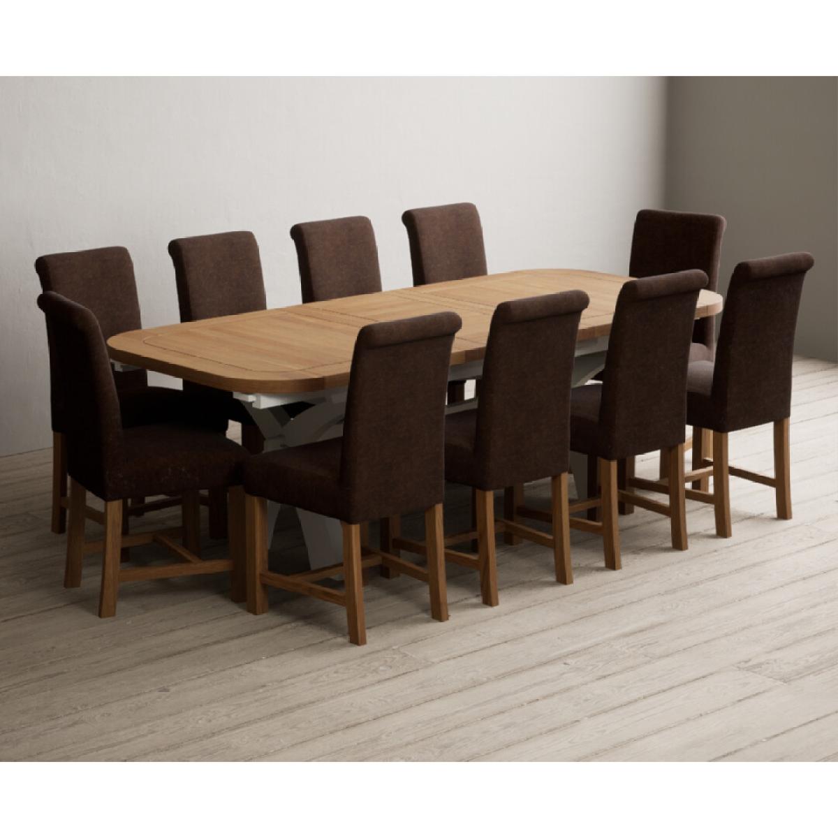Extending Olympia 180cm Oak and Signal White Painted Dining Table with 12 Natural Chairs