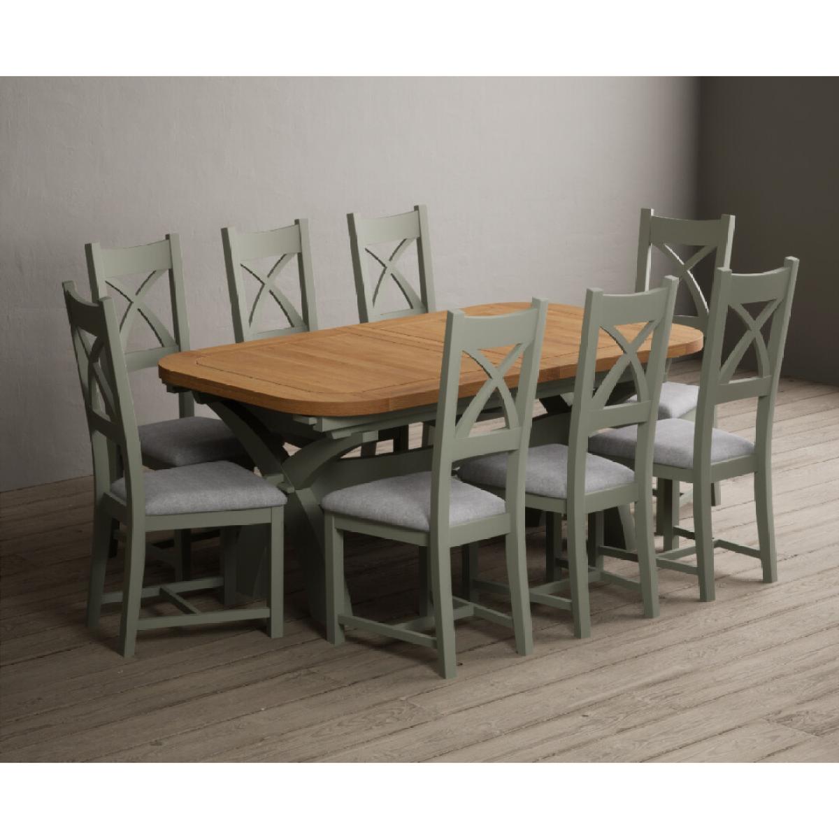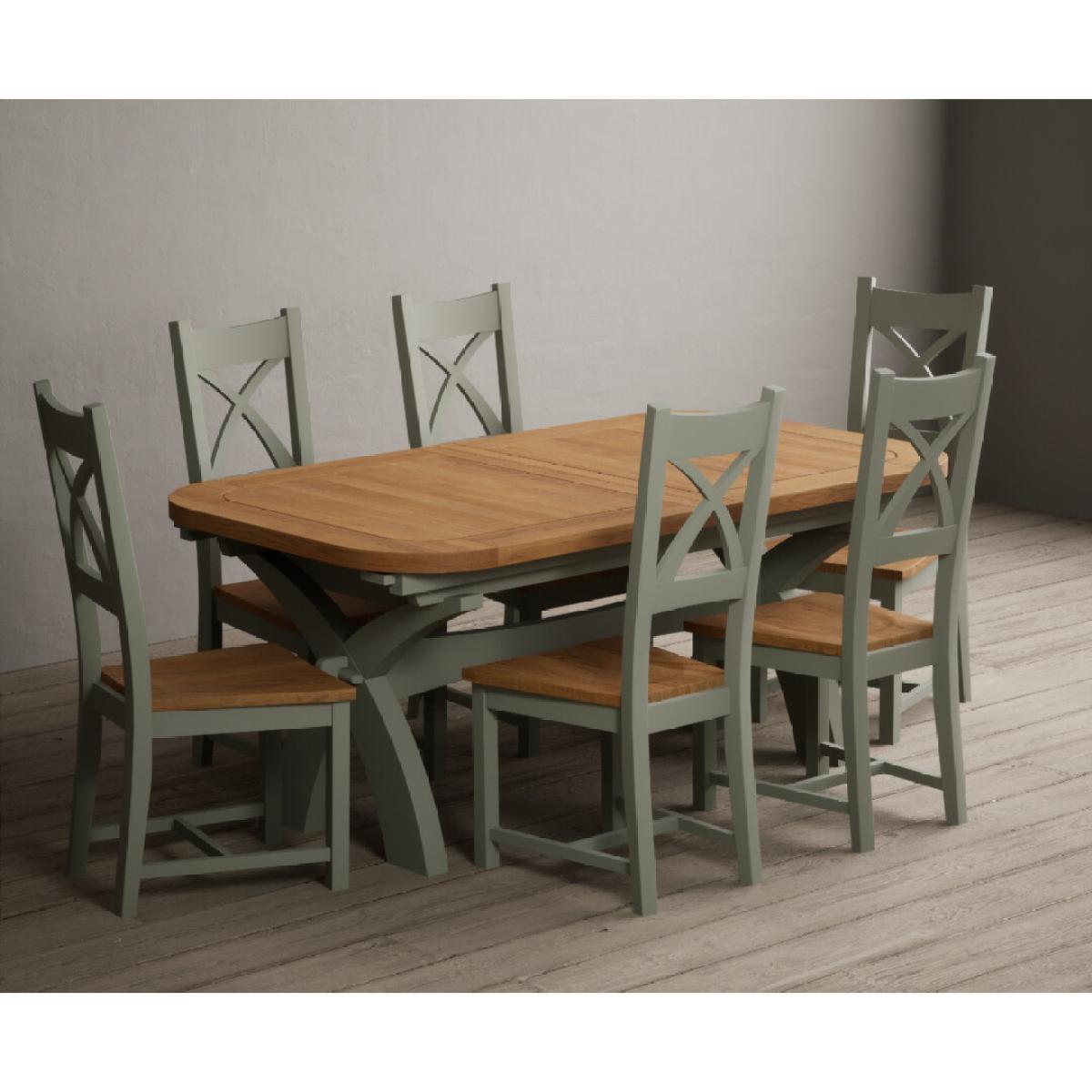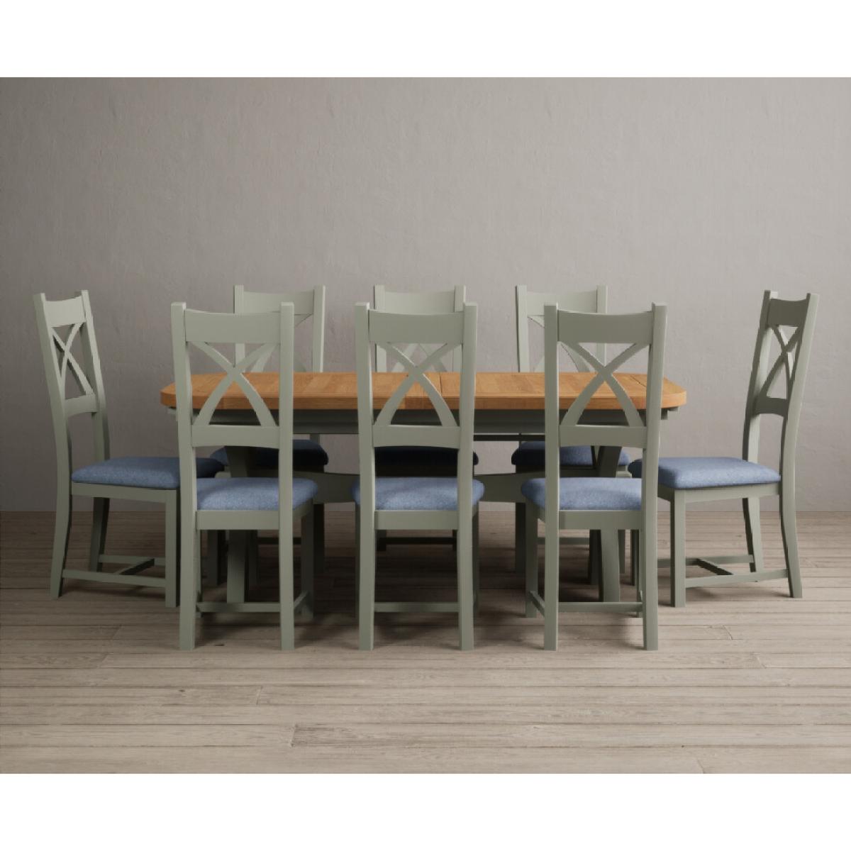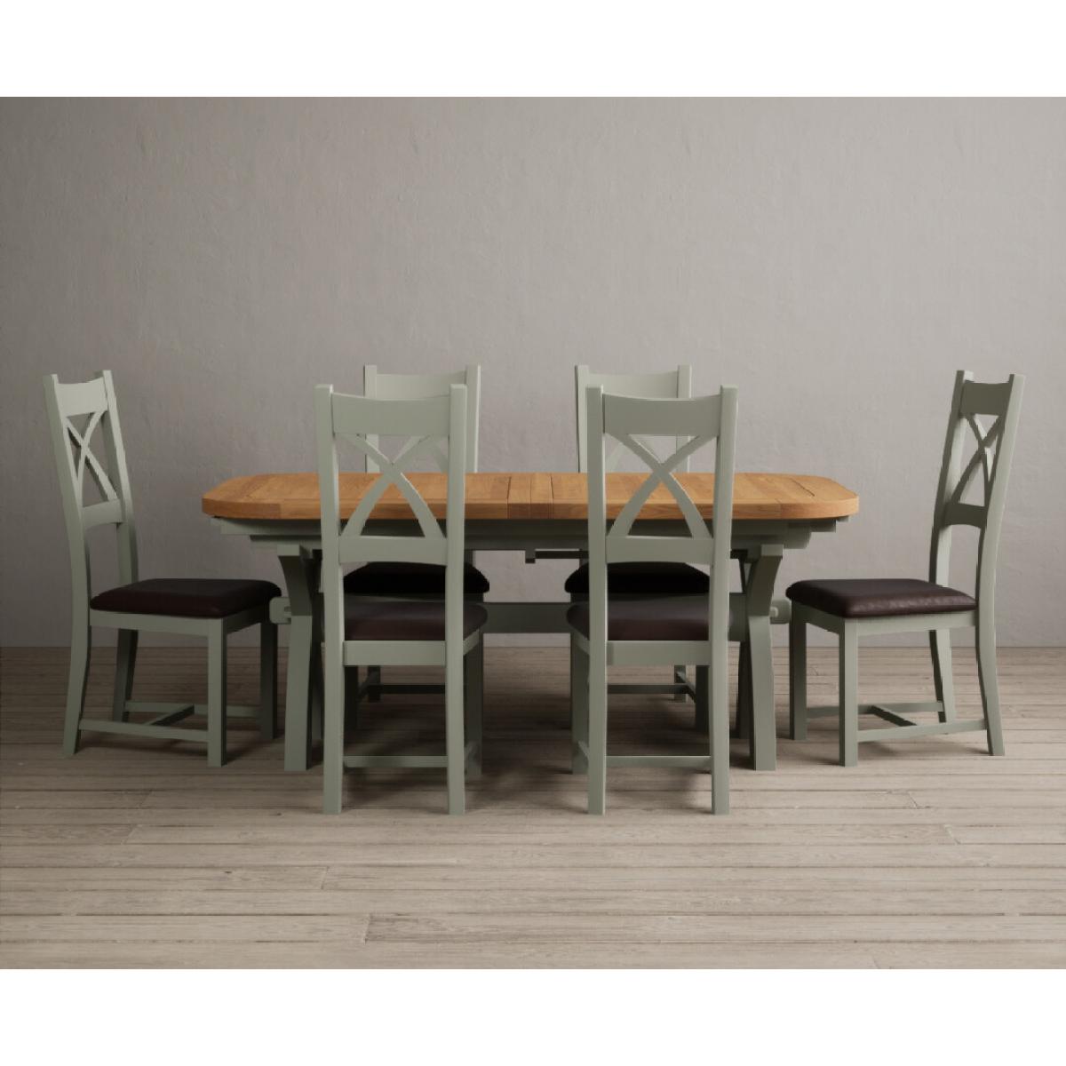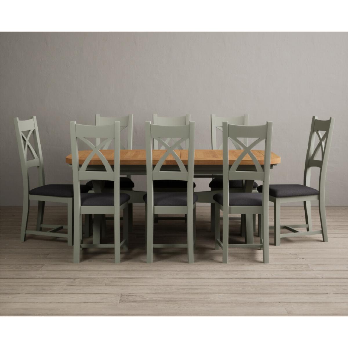 I love this extendable dining table set for its versatility and understated style. The oak top lends warmth and natural texture, making it suitable for both traditional and contemporary interiors, while the soft green paint adds a subtle touch of colour that can soften a neutral scheme or complement earthy tones. The light grey chairs ensure the overall look remains calm and neutral, making it easy to dress up with accessories or tableware. Practically, its extendable feature is great for accommodating extra guests without sacrificing space on a daily basis. For styling tips, consider layering with textured placemats, colour-coordinated napkins, or a simple centrepiece, to keep the handsome wood and paintwork centre stage. This set works beautifully in open-plan dining areas, country cottages, or modern minimalist schemes looking for understated elegance.