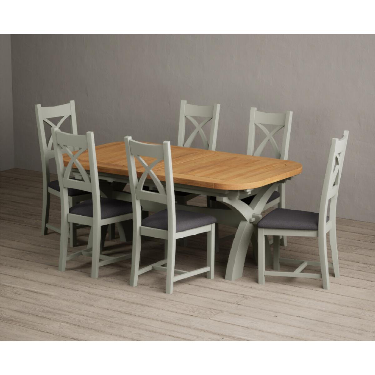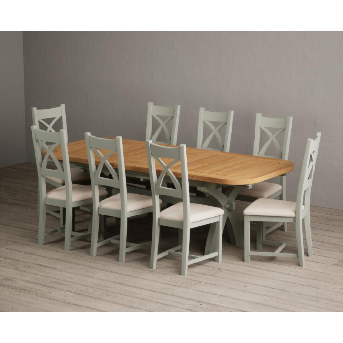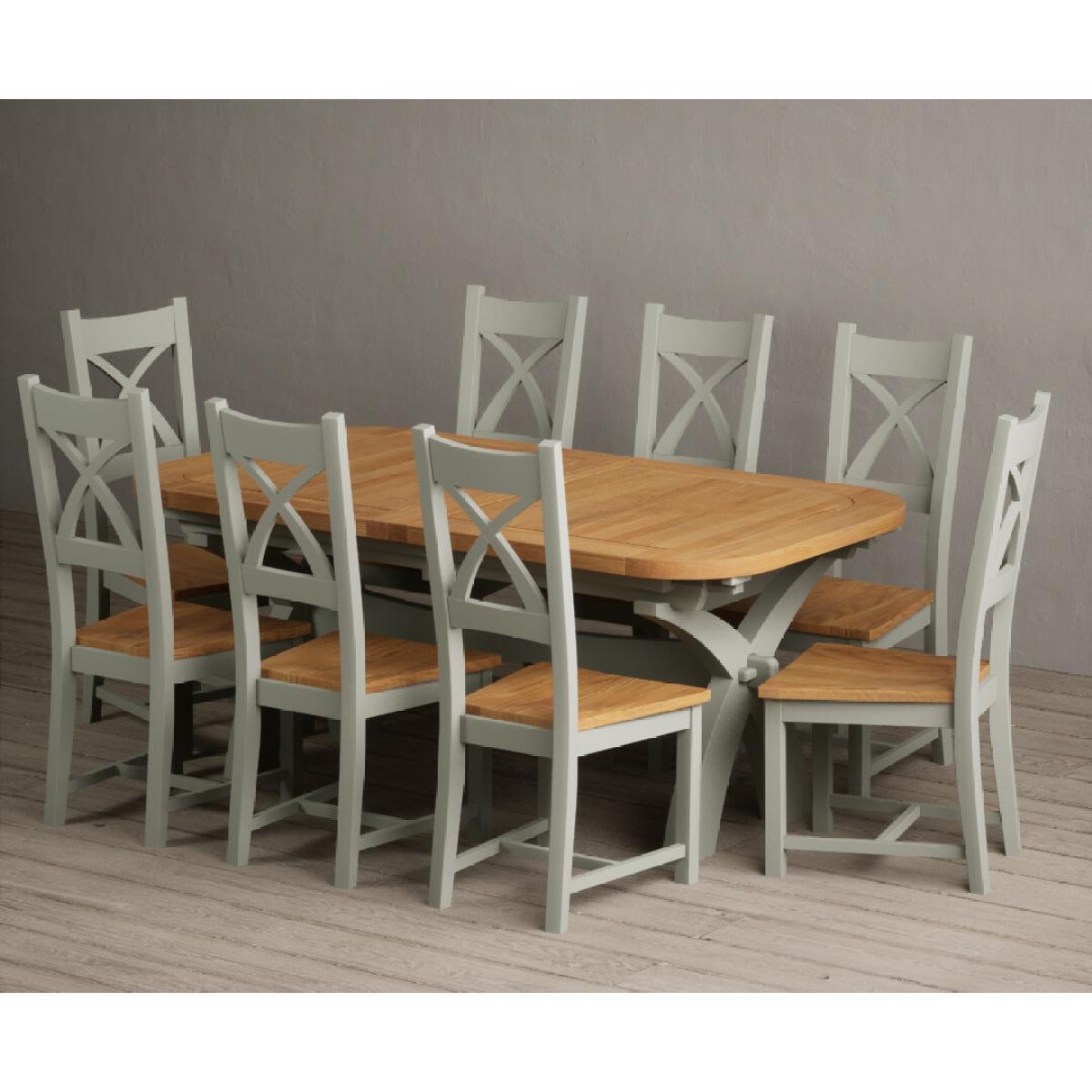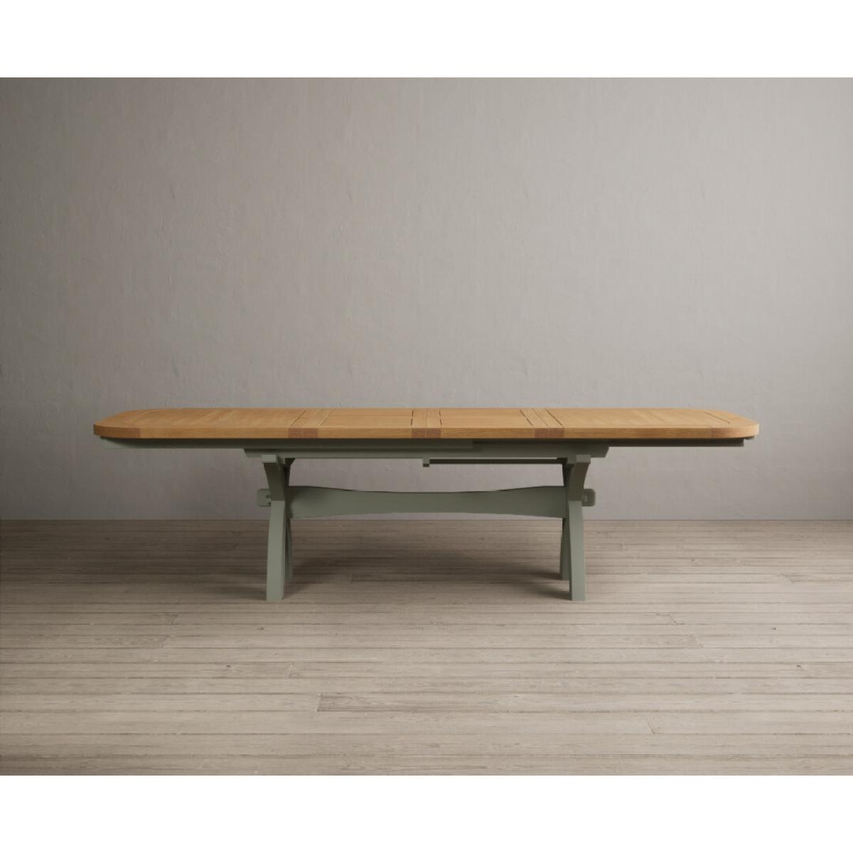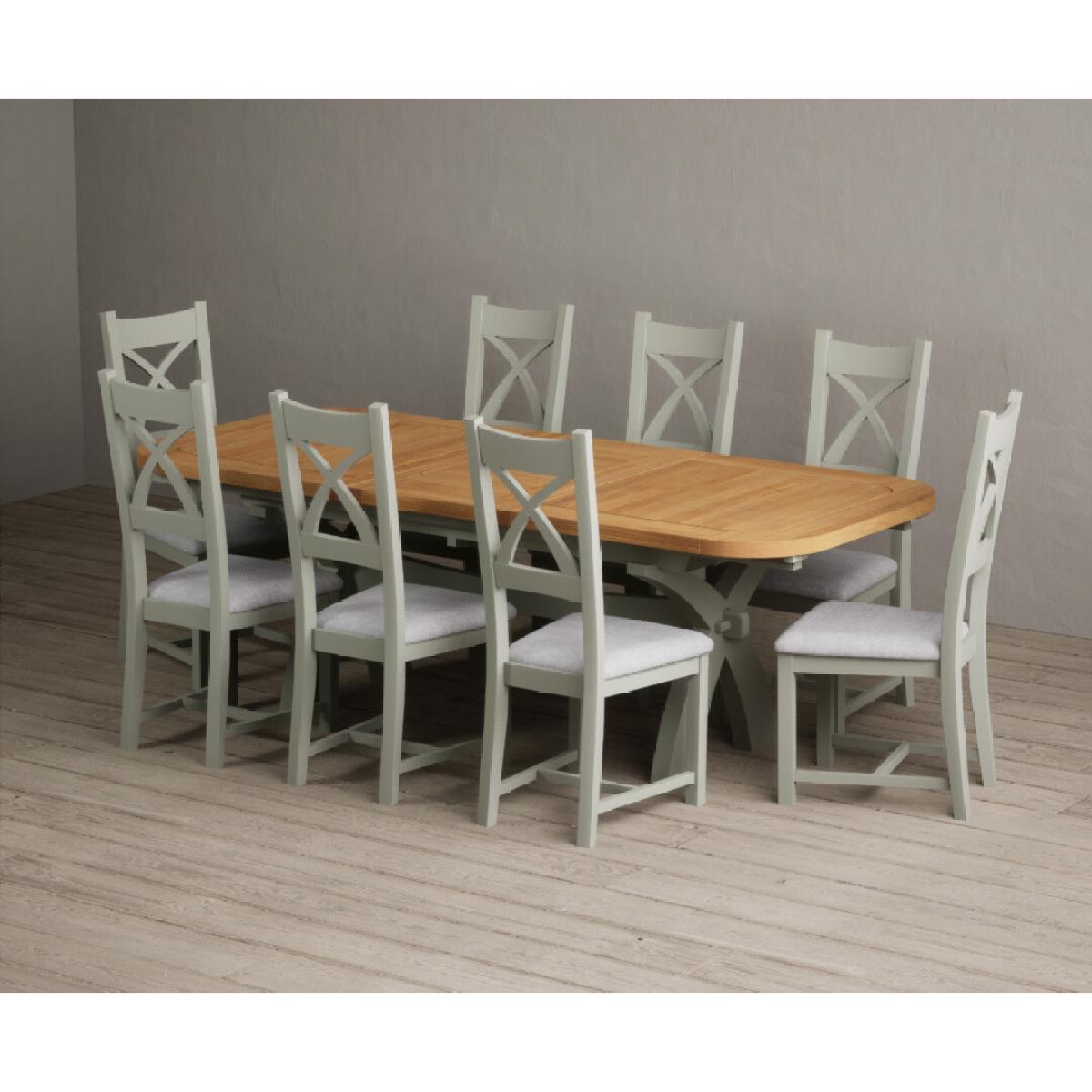 I love this extendable dining table set for its versatility and understated style. The oak top lends warmth and natural texture, making it suitable for both traditional and contemporary interiors, while the soft green paint adds a subtle touch of colour that can soften a neutral scheme or complement earthy tones. The light grey chairs ensure the overall look remains calm and neutral, making it easy to dress up with accessories or tableware. Practically, its extendable feature is great for accommodating extra guests without sacrificing space on a daily basis. For styling tips, consider layering with textured placemats, colour-coordinated napkins, or a simple centrepiece, to keep the handsome wood and paintwork centre stage. This set works beautifully in open-plan dining areas, country cottages, or modern minimalist schemes looking for understated elegance.