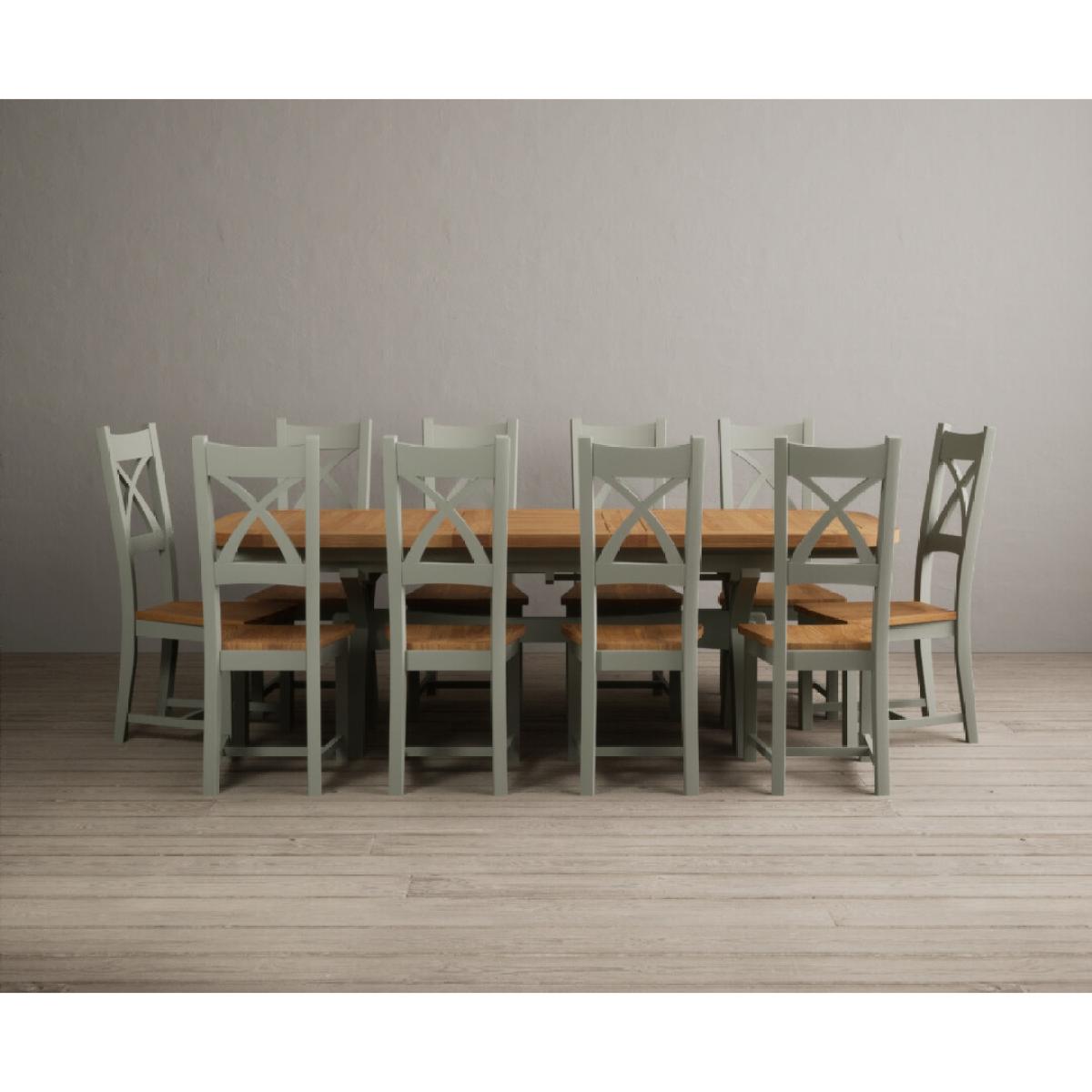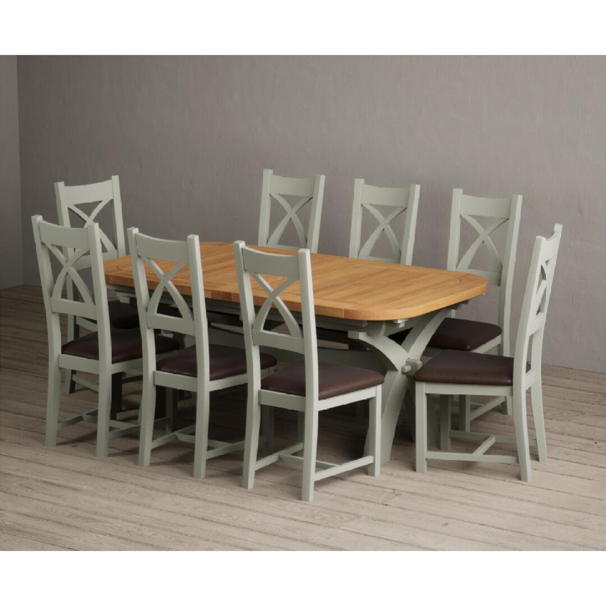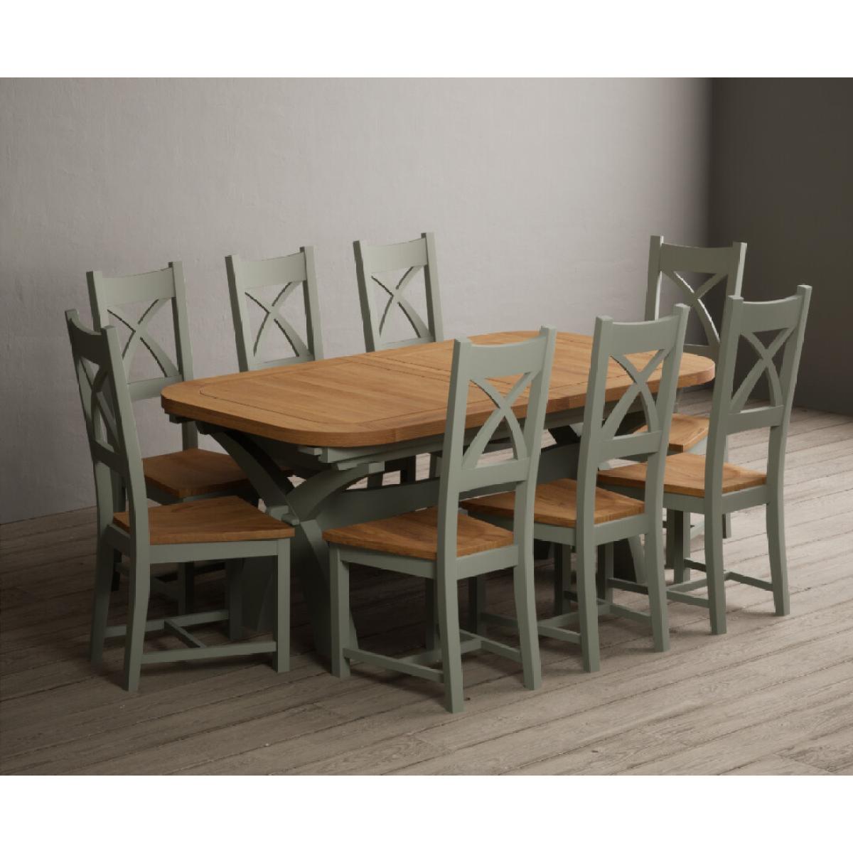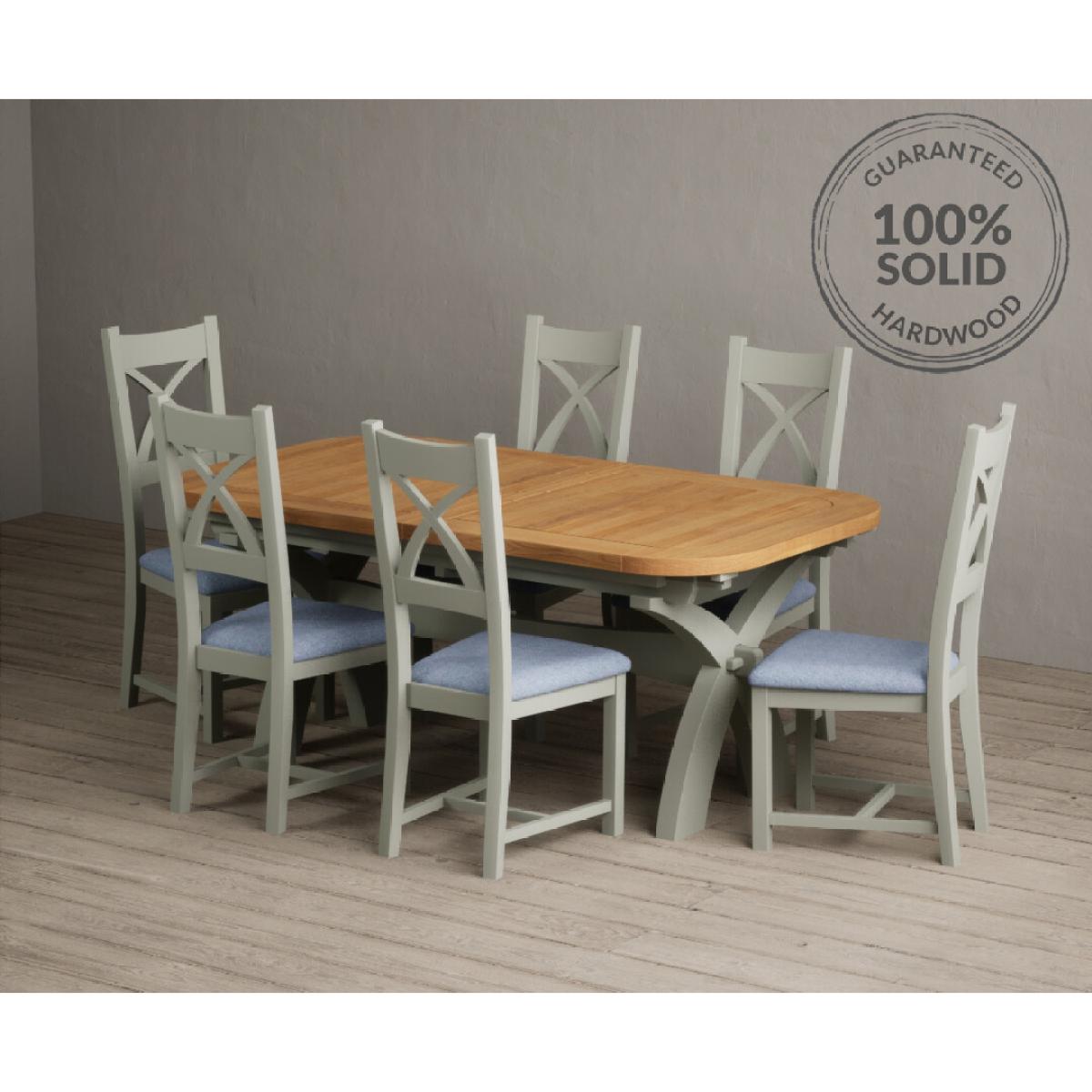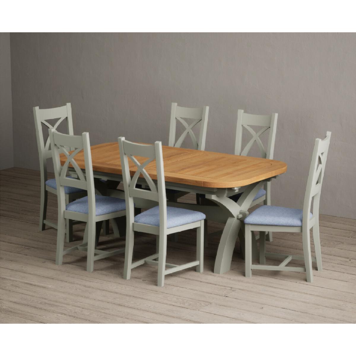 I love this extendable dining table set for its versatility and understated style. The oak top lends warmth and natural texture, making it suitable for both traditional and contemporary interiors, while the soft green paint adds a subtle touch of colour that can soften a neutral scheme or complement earthy tones. The light grey chairs ensure the overall look remains calm and neutral, making it easy to dress up with accessories or tableware. Practically, its extendable feature is great for accommodating extra guests without sacrificing space on a daily basis. For styling tips, consider layering with textured placemats, colour-coordinated napkins, or a simple centrepiece, to keep the handsome wood and paintwork centre stage. This set works beautifully in open-plan dining areas, country cottages, or modern minimalist schemes looking for understated elegance.