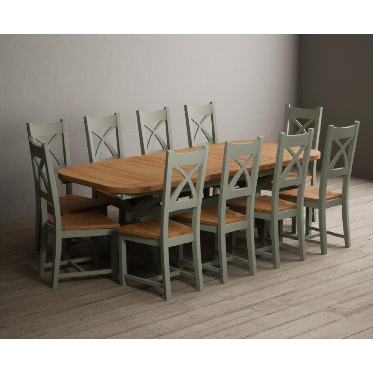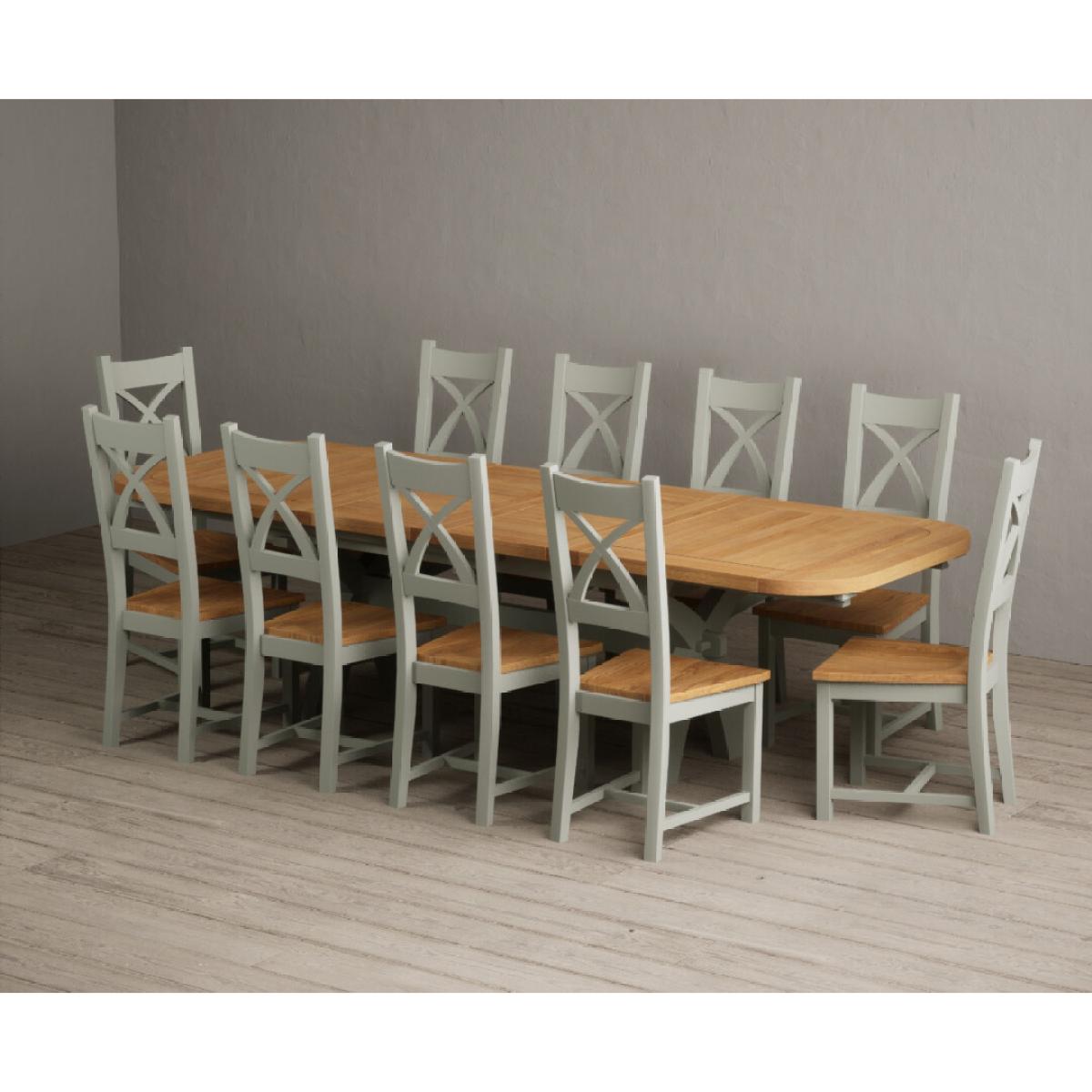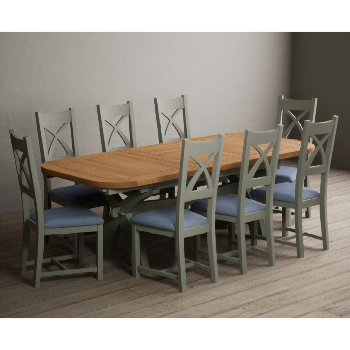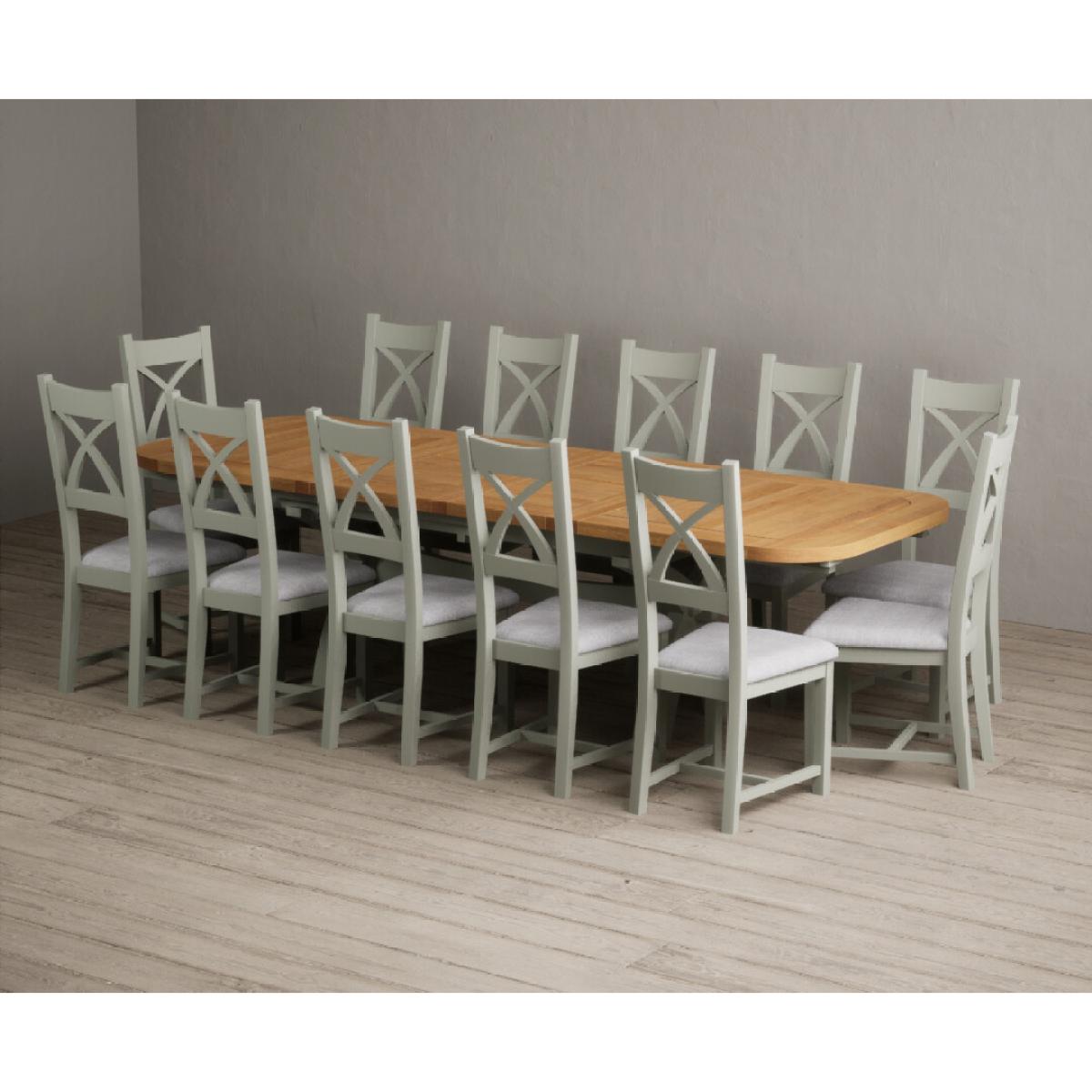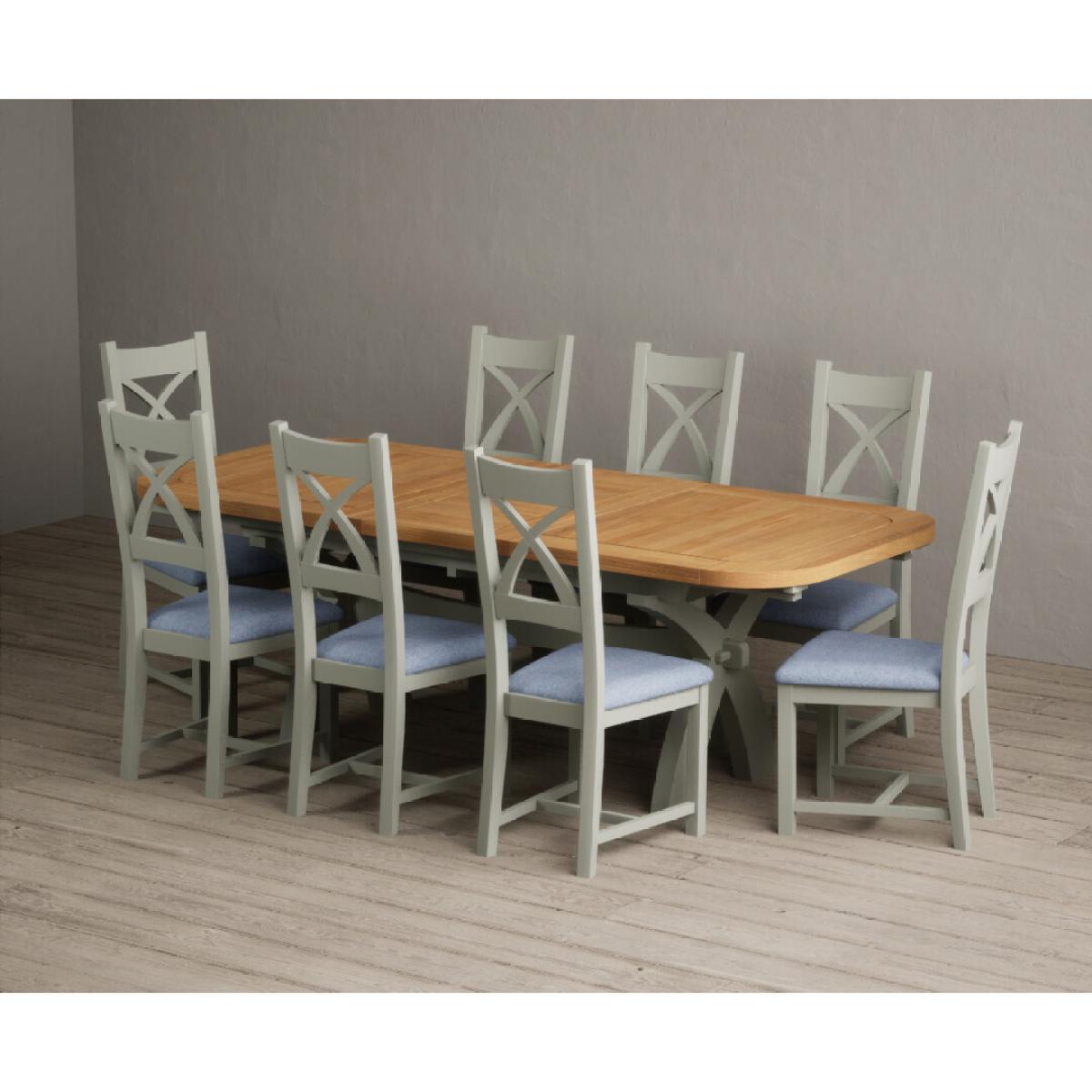 I love this extendable dining table set for its versatility and understated style. The oak top lends warmth and natural texture, making it suitable for both traditional and contemporary interiors, while the soft green paint adds a subtle touch of colour that can soften a neutral scheme or complement earthy tones. The light grey chairs ensure the overall look remains calm and neutral, making it easy to dress up with accessories or tableware. Practically, its extendable feature is great for accommodating extra guests without sacrificing space on a daily basis. For styling tips, consider layering with textured placemats, colour-coordinated napkins, or a simple centrepiece, to keep the handsome wood and paintwork centre stage. This set works beautifully in open-plan dining areas, country cottages, or modern minimalist schemes looking for understated elegance.