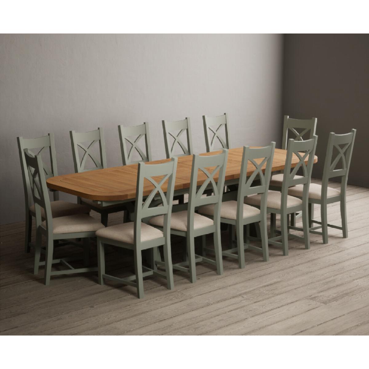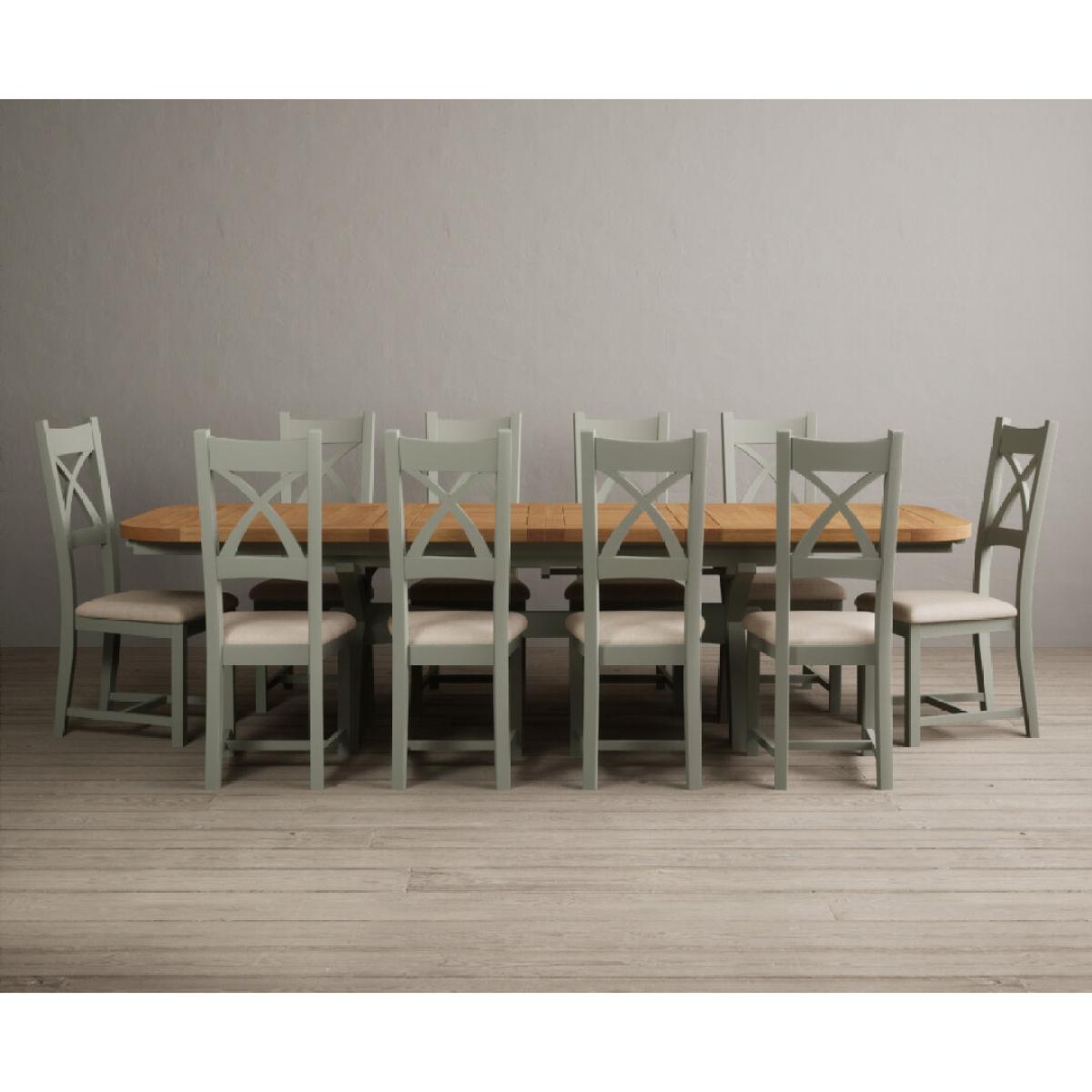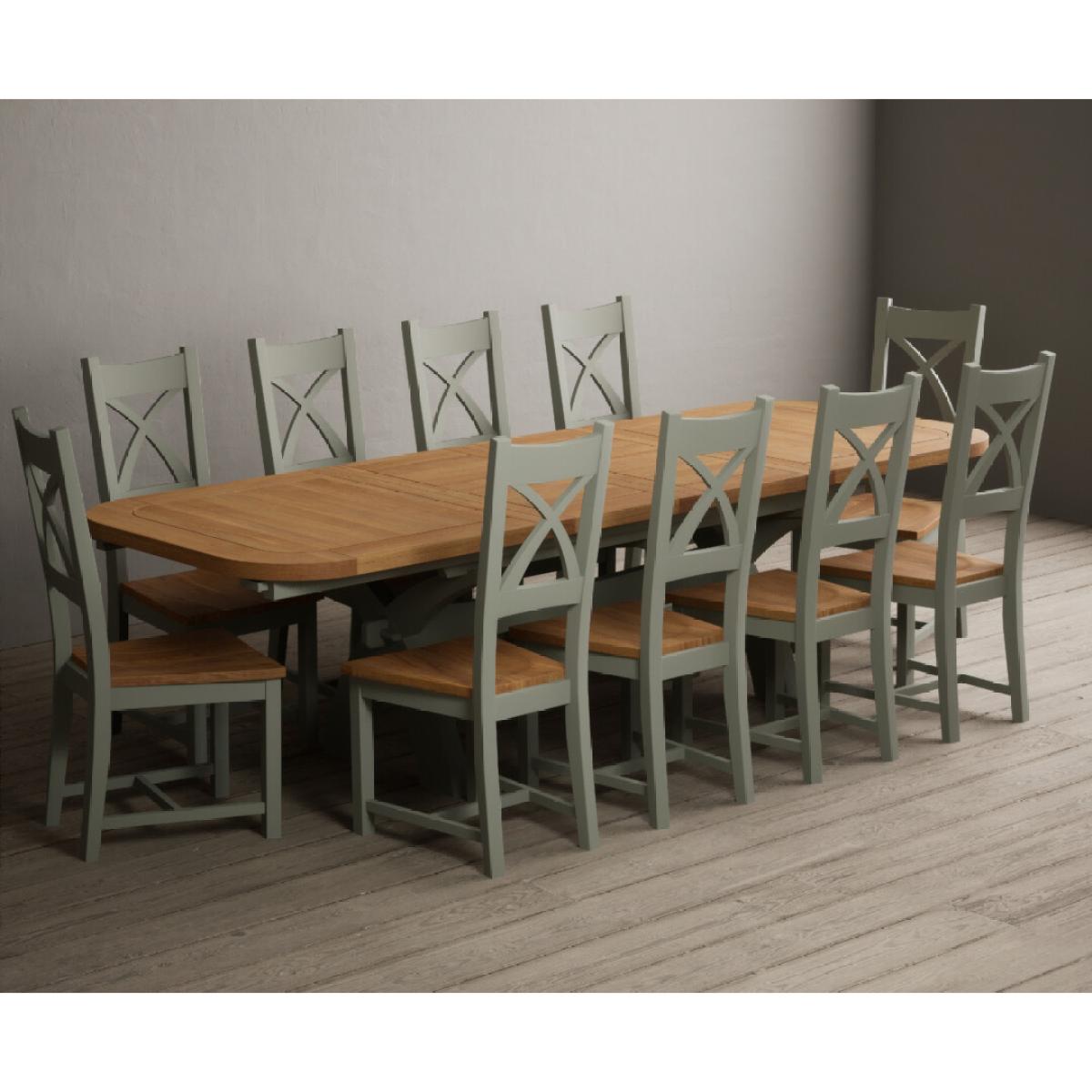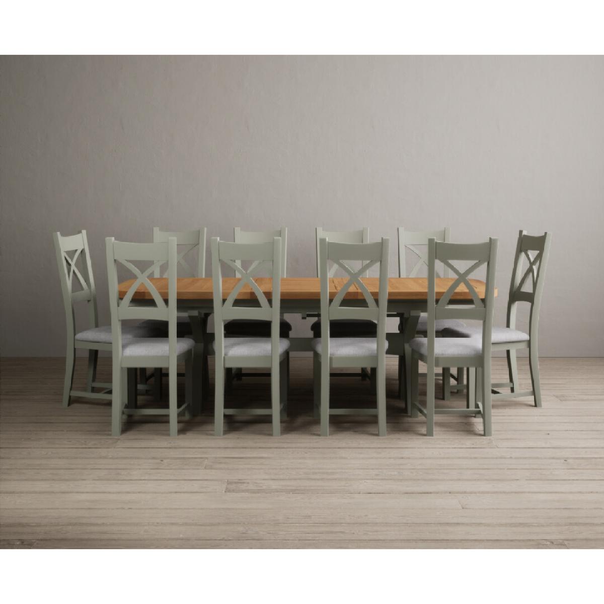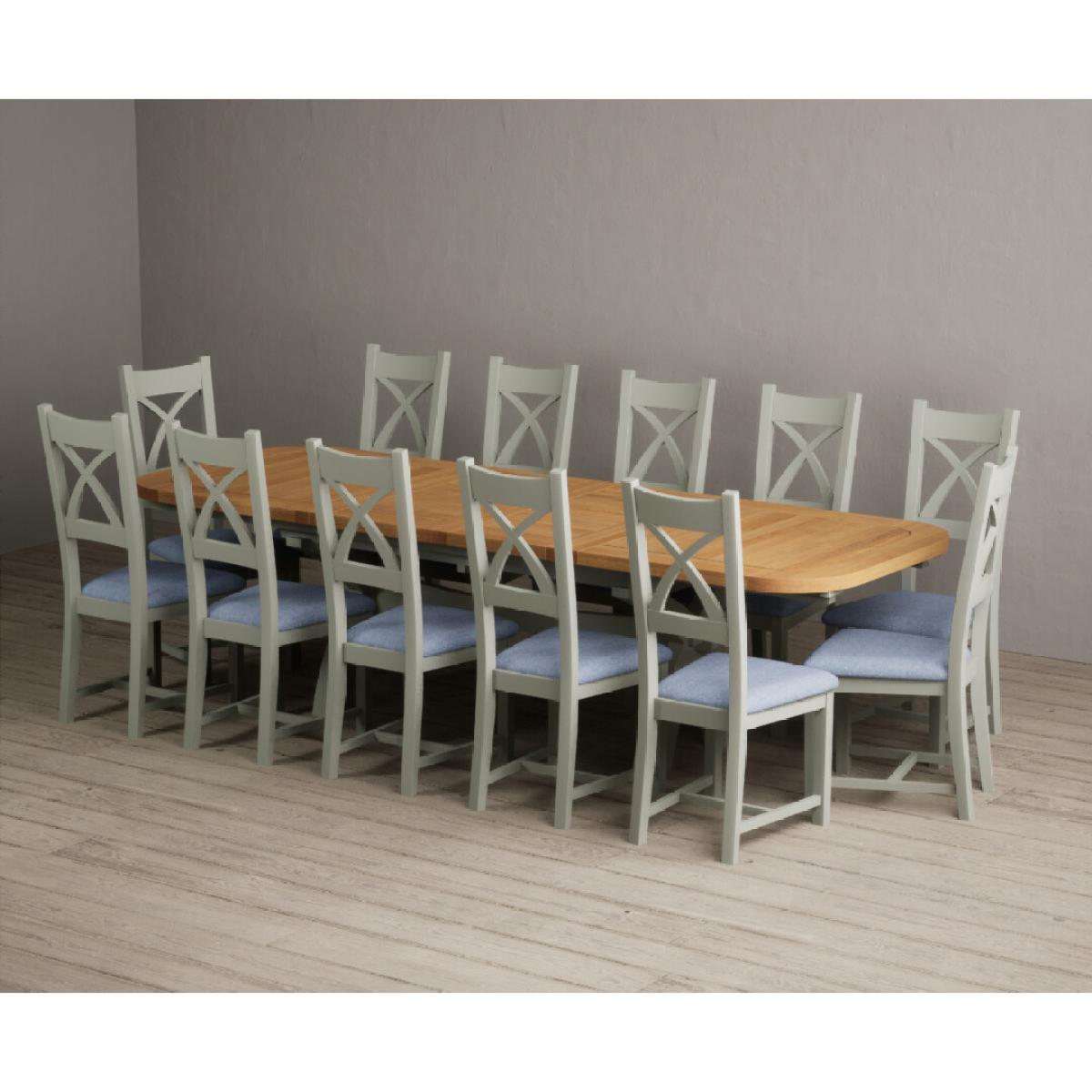 I love this extendable dining table set for its versatility and understated style. The oak top lends warmth and natural texture, making it suitable for both traditional and contemporary interiors, while the soft green paint adds a subtle touch of colour that can soften a neutral scheme or complement earthy tones. The light grey chairs ensure the overall look remains calm and neutral, making it easy to dress up with accessories or tableware. Practically, its extendable feature is great for accommodating extra guests without sacrificing space on a daily basis. For styling tips, consider layering with textured placemats, colour-coordinated napkins, or a simple centrepiece, to keep the handsome wood and paintwork centre stage. This set works beautifully in open-plan dining areas, country cottages, or modern minimalist schemes looking for understated elegance.