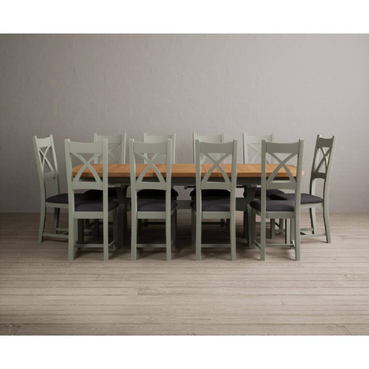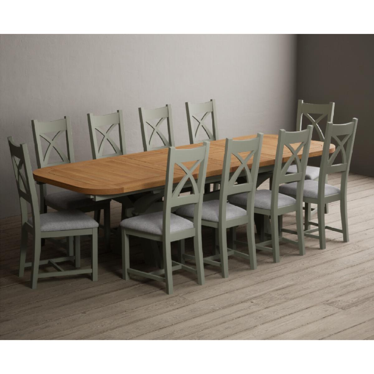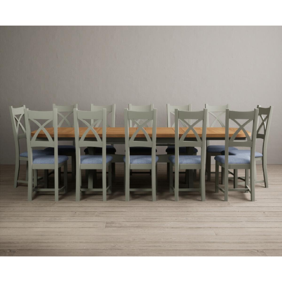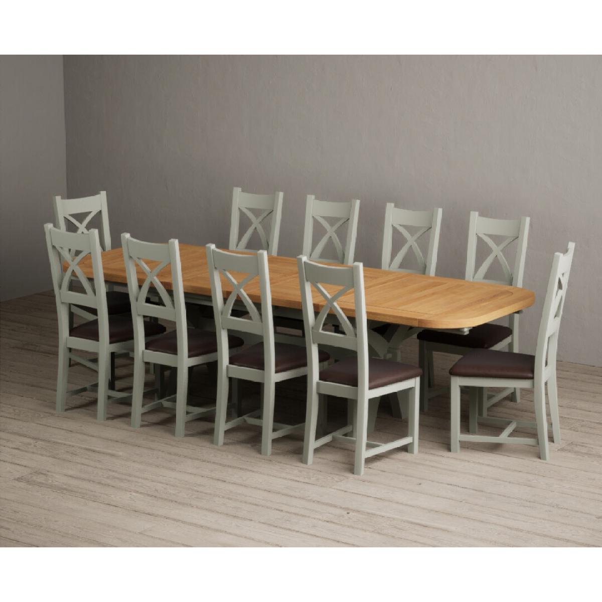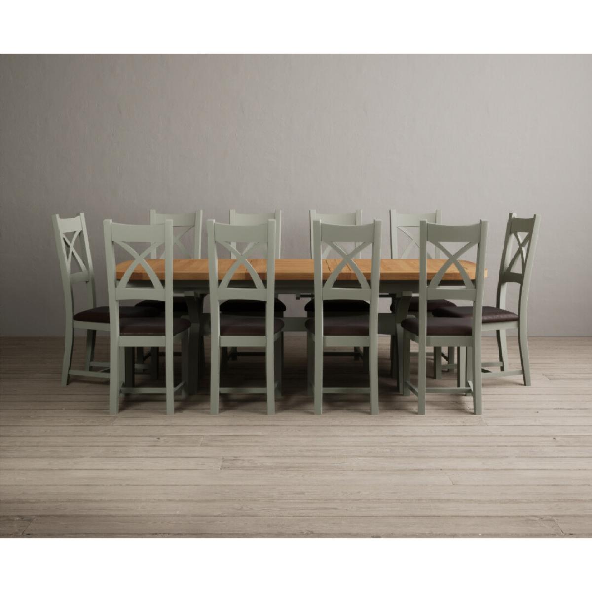 I love this extendable dining table set for its versatility and understated style. The oak top lends warmth and natural texture, making it suitable for both traditional and contemporary interiors, while the soft green paint adds a subtle touch of colour that can soften a neutral scheme or complement earthy tones. The light grey chairs ensure the overall look remains calm and neutral, making it easy to dress up with accessories or tableware. Practically, its extendable feature is great for accommodating extra guests without sacrificing space on a daily basis. For styling tips, consider layering with textured placemats, colour-coordinated napkins, or a simple centrepiece, to keep the handsome wood and paintwork centre stage. This set works beautifully in open-plan dining areas, country cottages, or modern minimalist schemes looking for understated elegance.