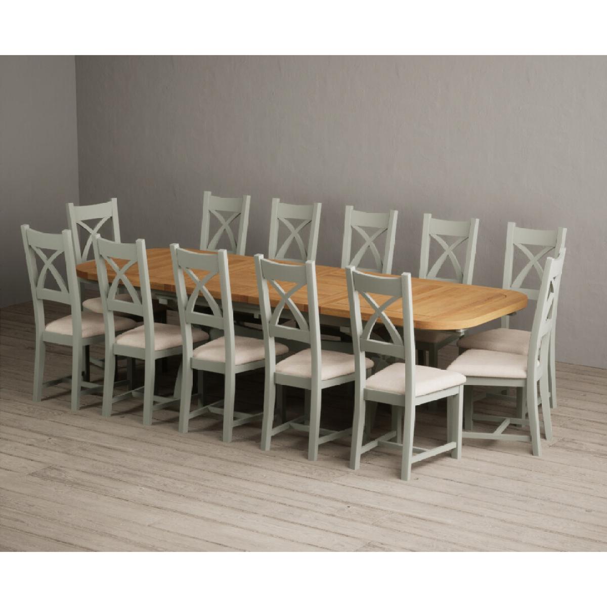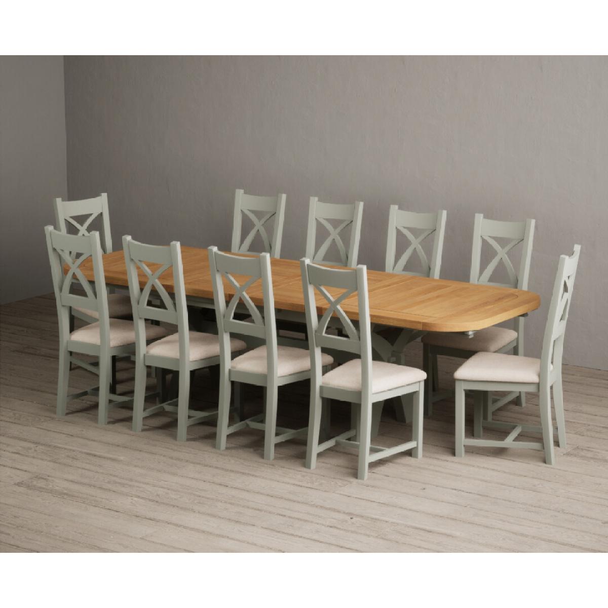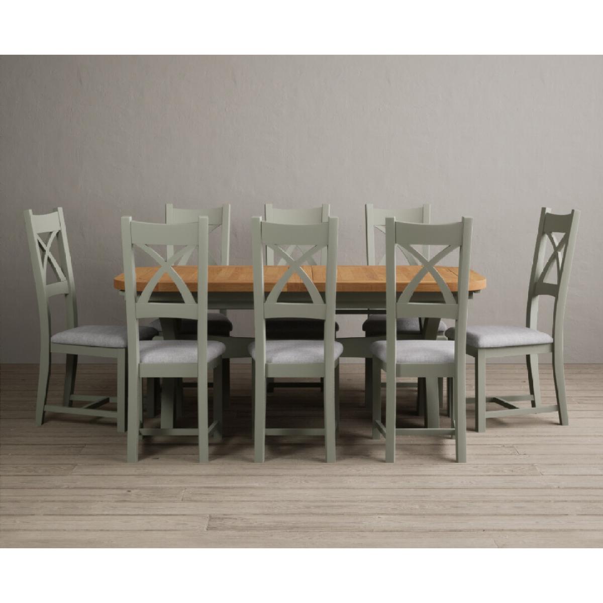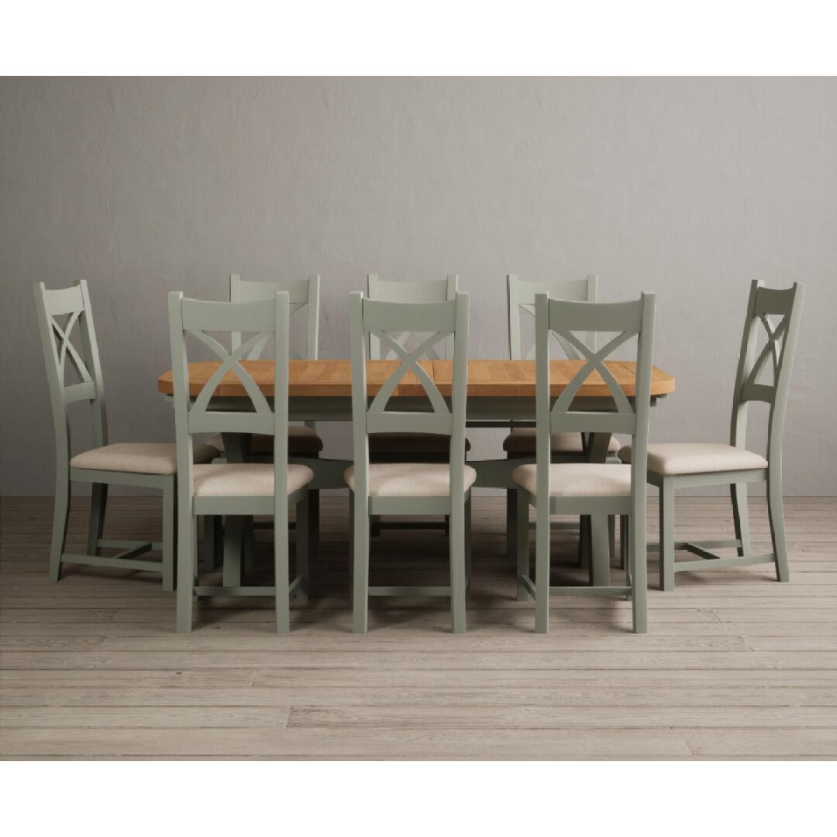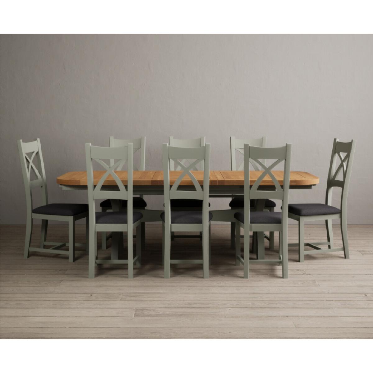Extending Olympia 180cm Oak and Soft Green Painted Dining Table with 8 Linen Chairs