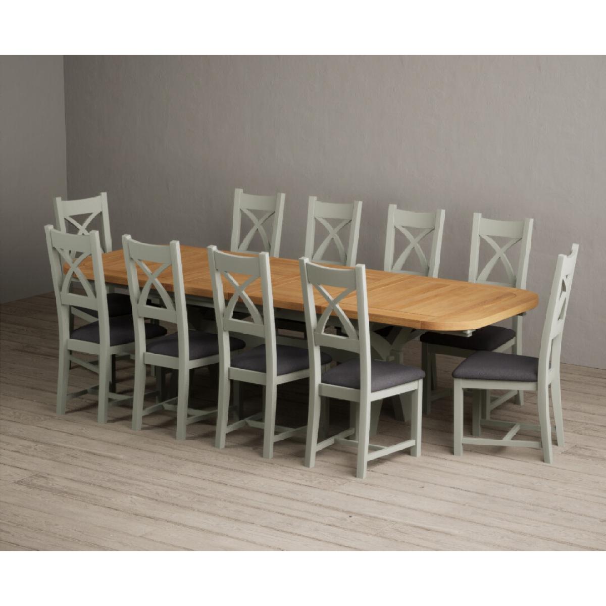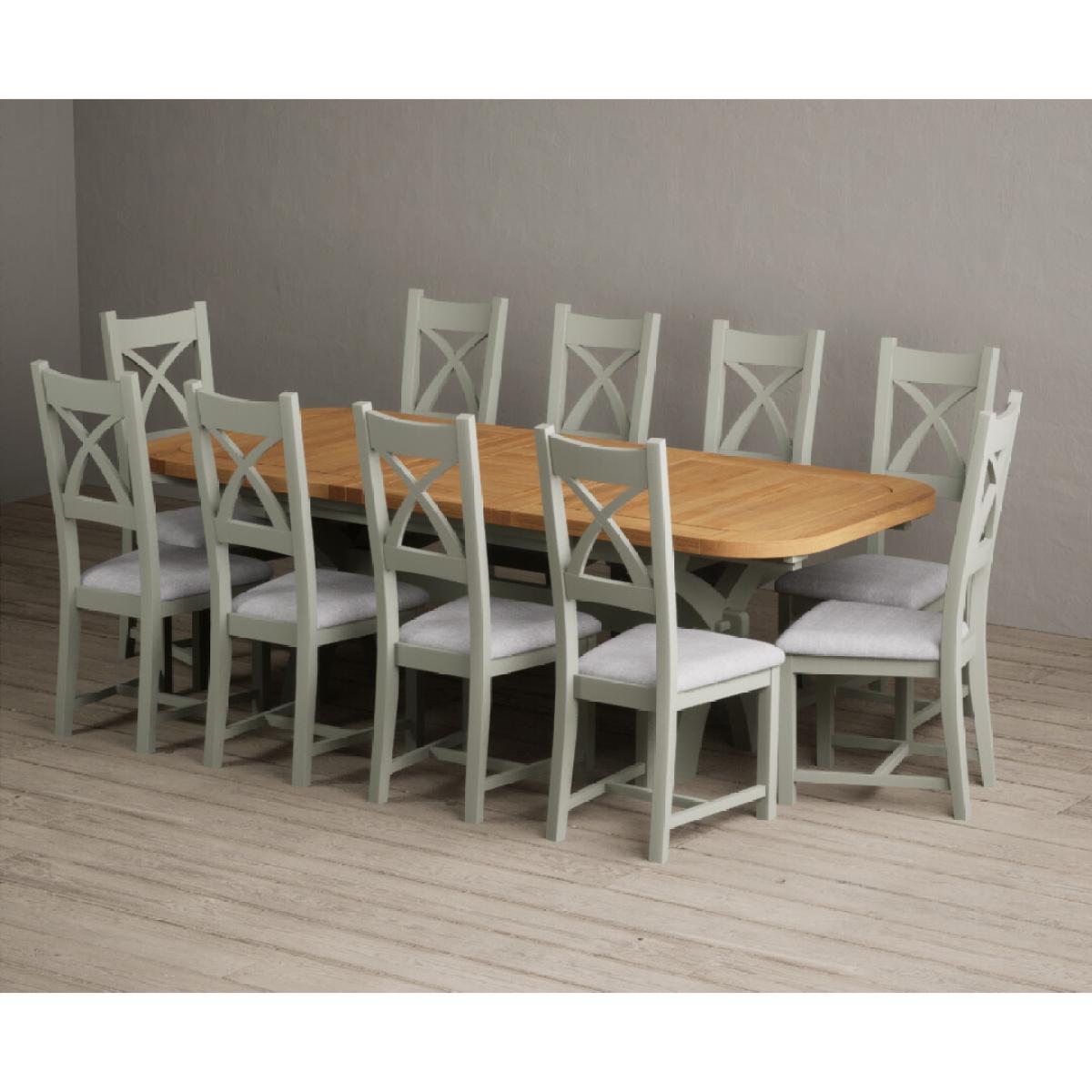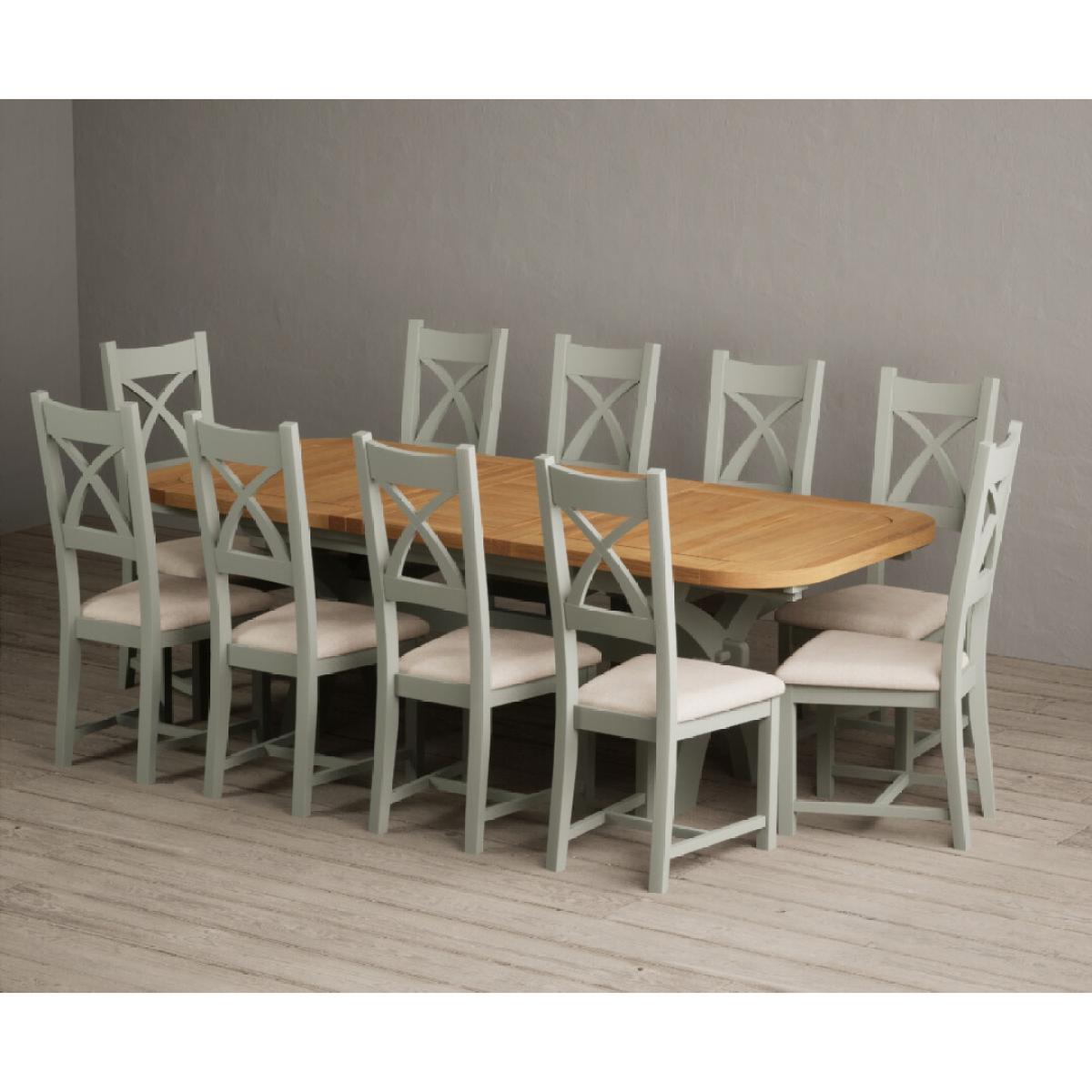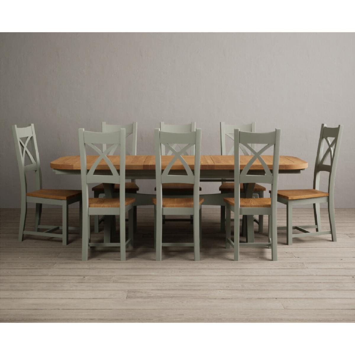 Extending Olympia 180cm Oak and Soft Green Painted Dining Table with 8 Linen Chairs