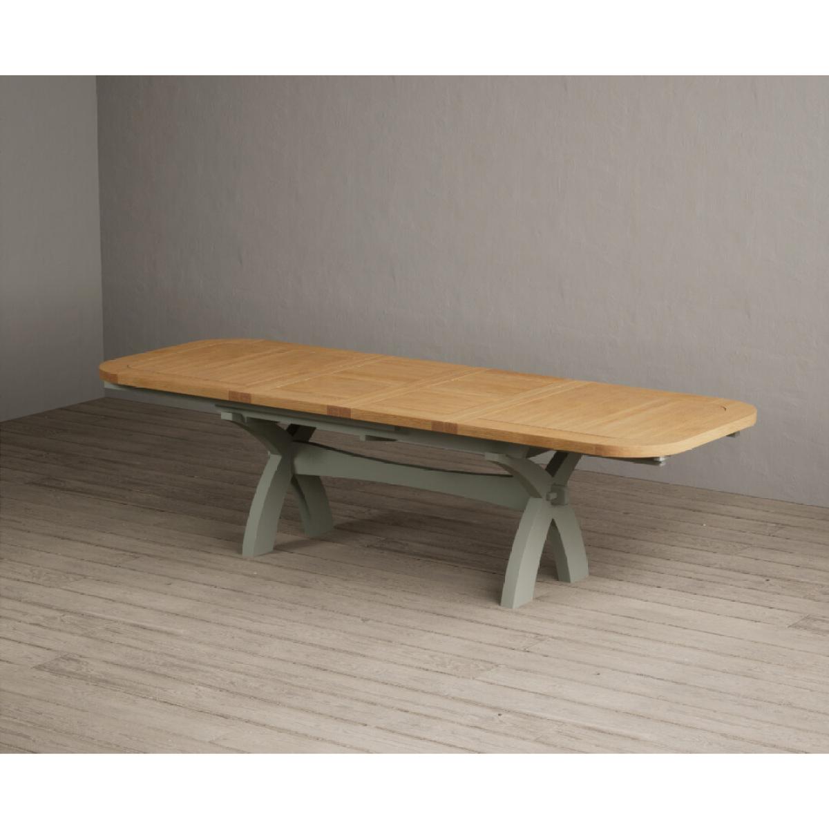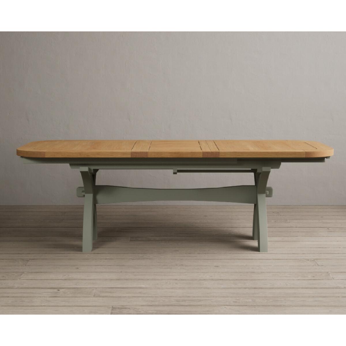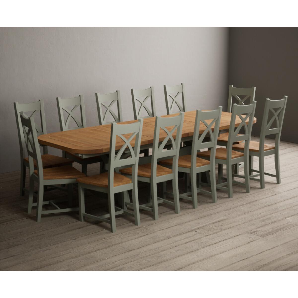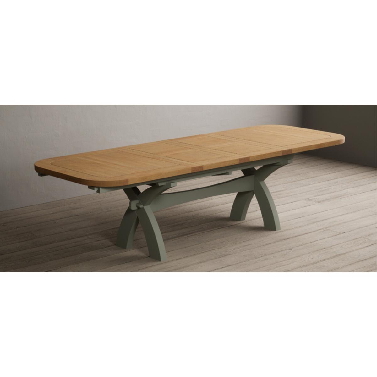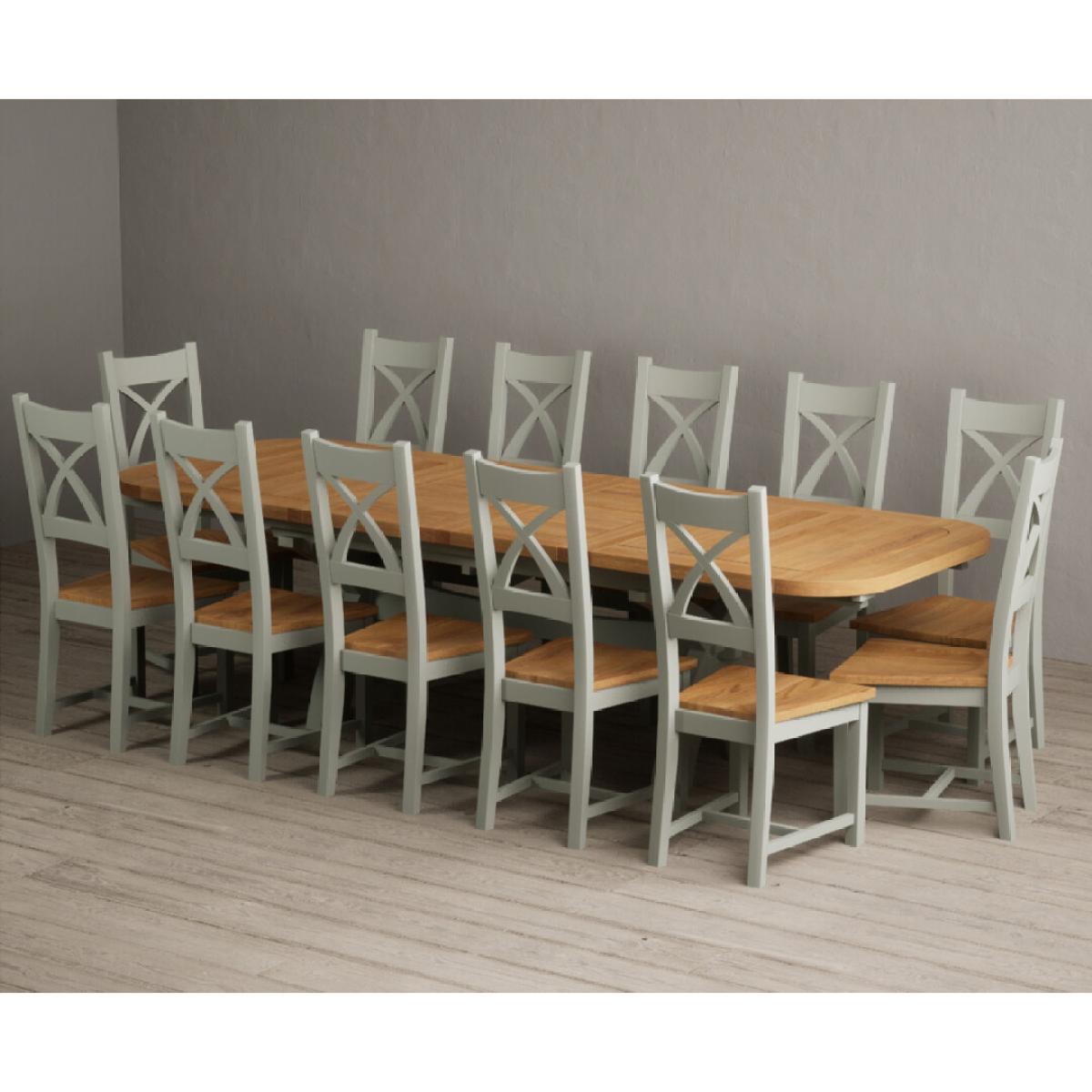 Extending Olympia 180cm Oak and Soft Green Painted Dining Table with 8 Linen Chairs