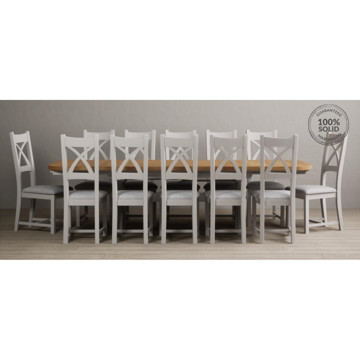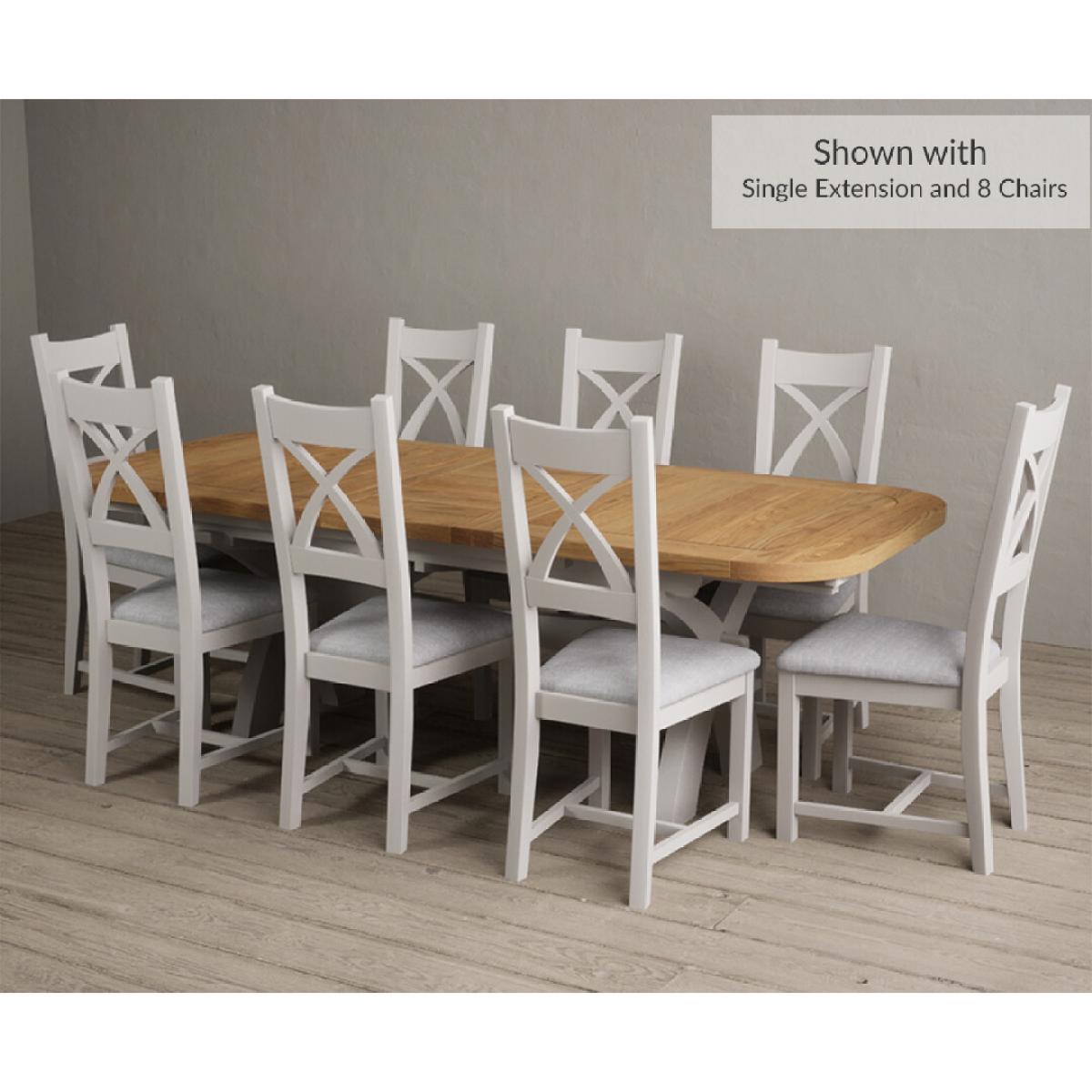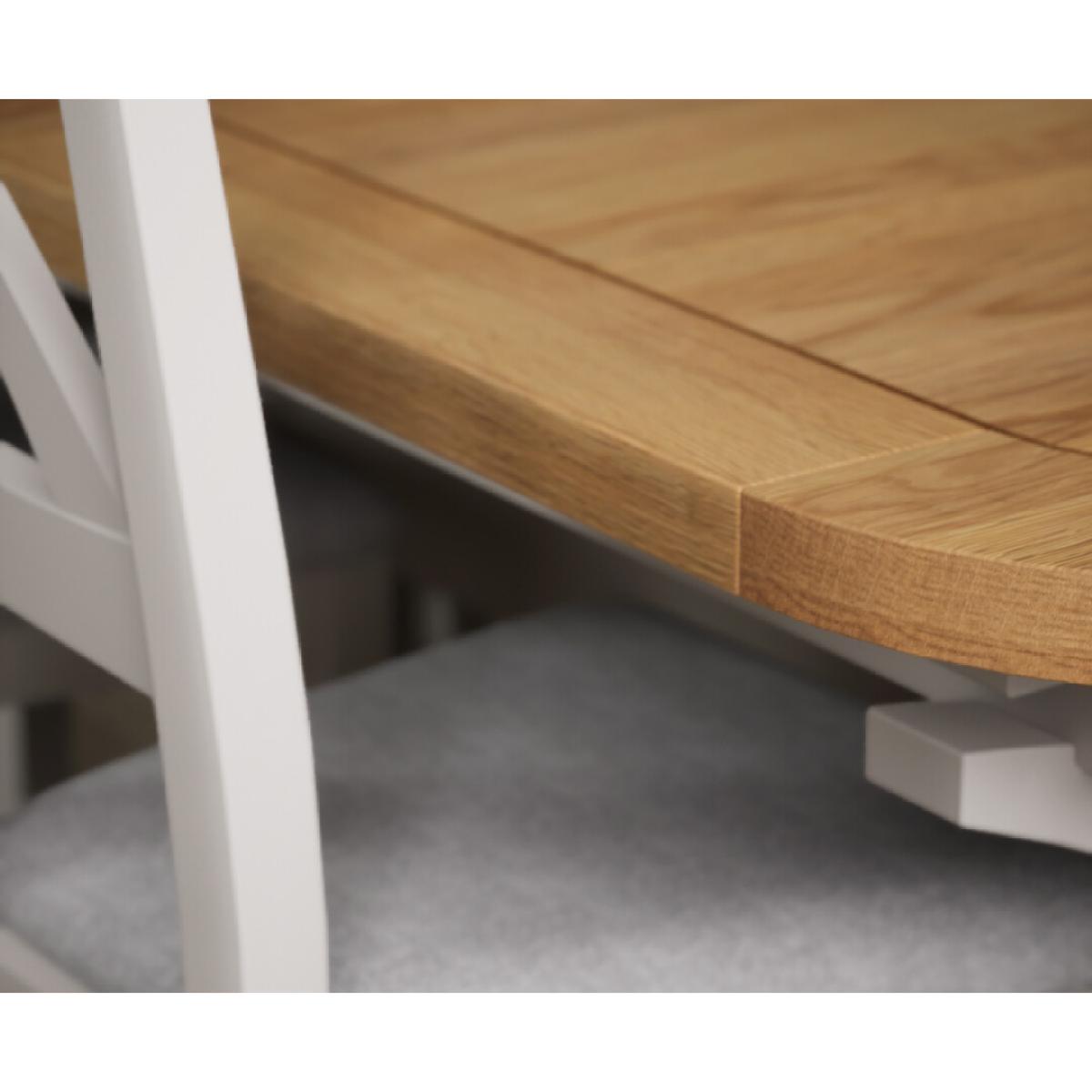 The Olympia 180cm Oak and Soft White Painted Extending Dining Table with X Back Chairs is a painted extending dining set, made with 100% solid wood and 100% solid oak.