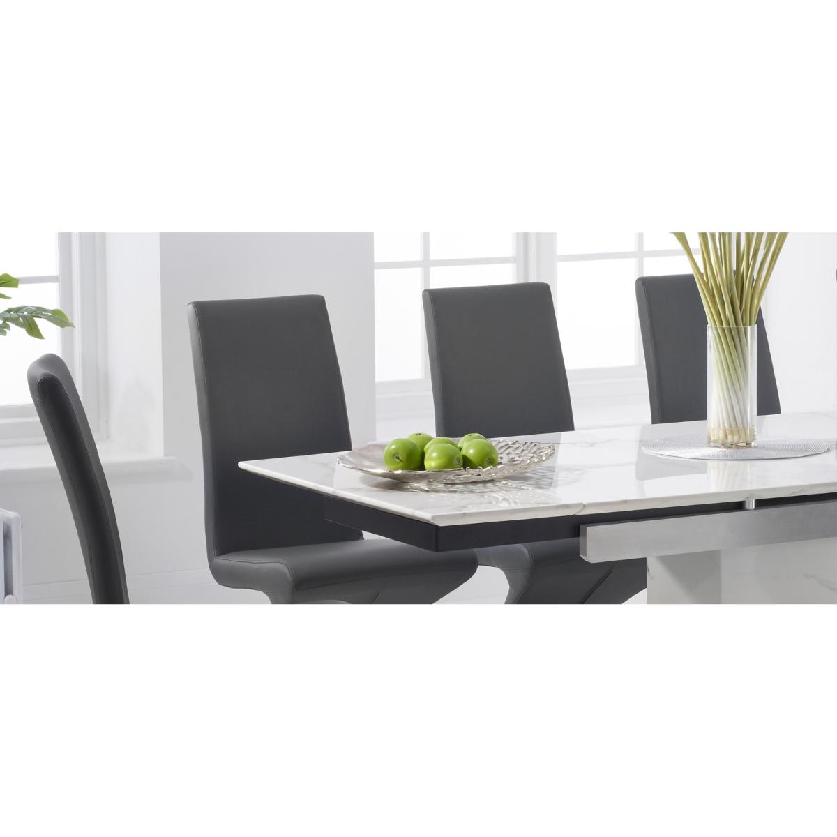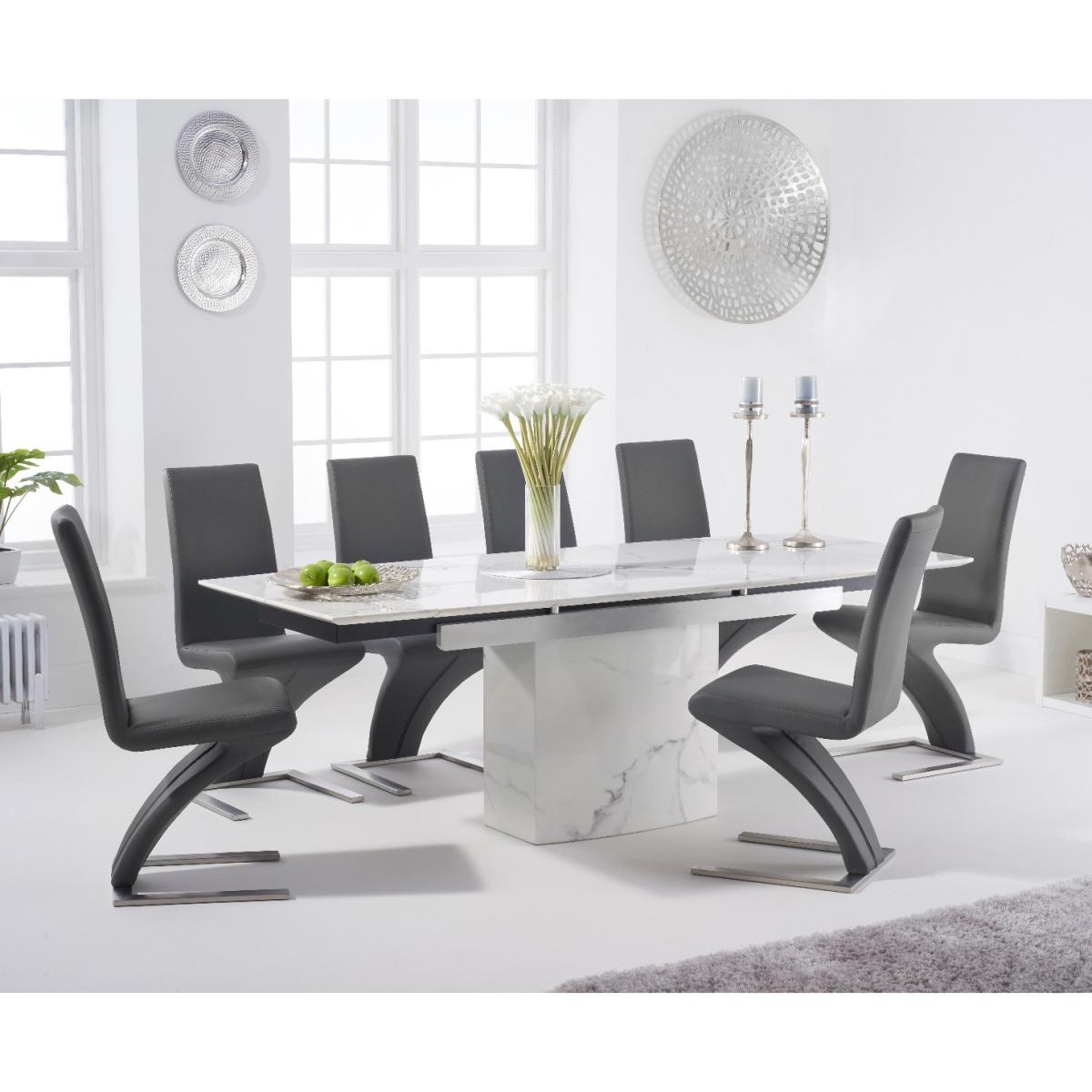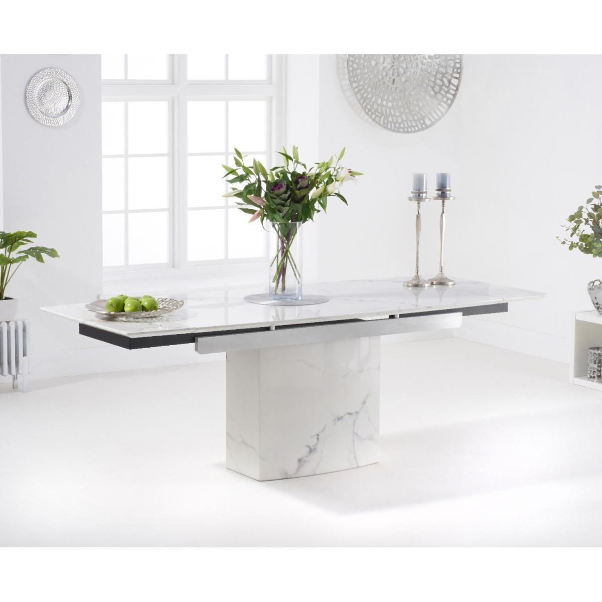 Extending Savona 160cm White Marble Dining Table with 10 White Aldo Chairs