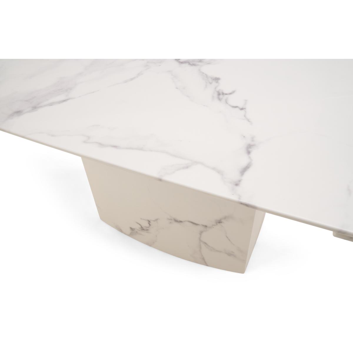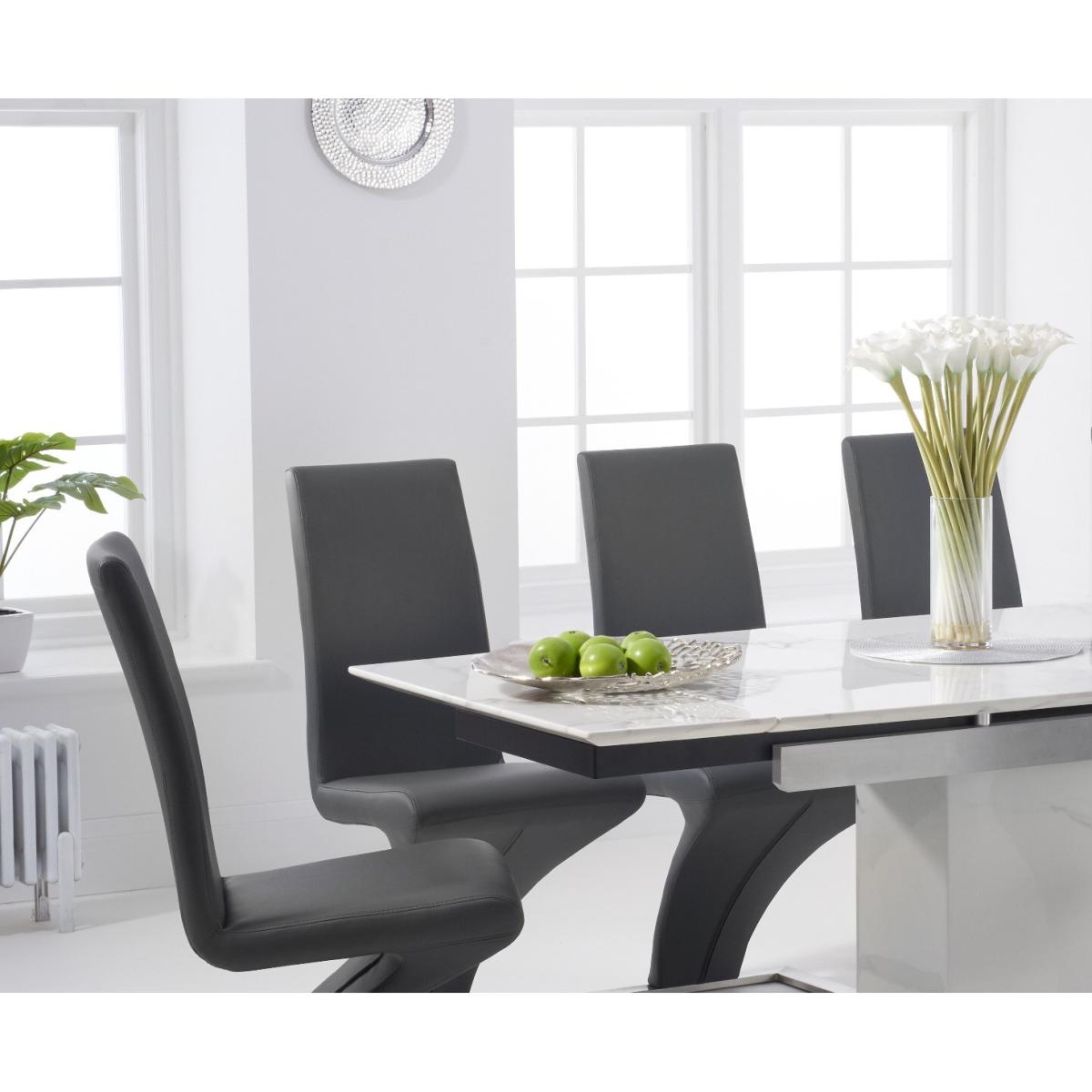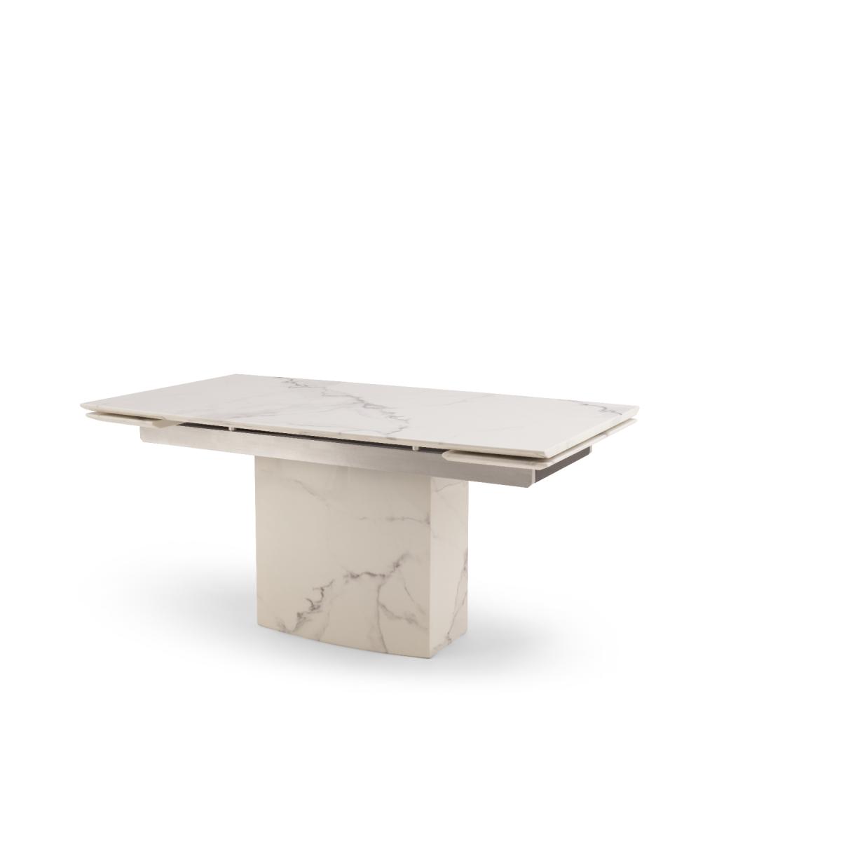 Extending Savona 160cm White Marble Dining Table with 10 White Aldo Chairs