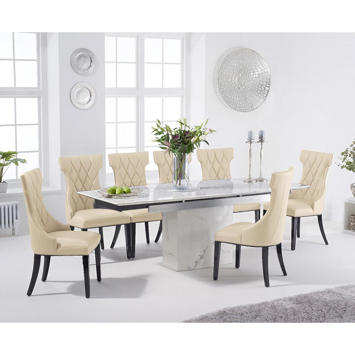 Extending Savona 160cm White Marble Dining Table with 4 Cream Sophia Chairs