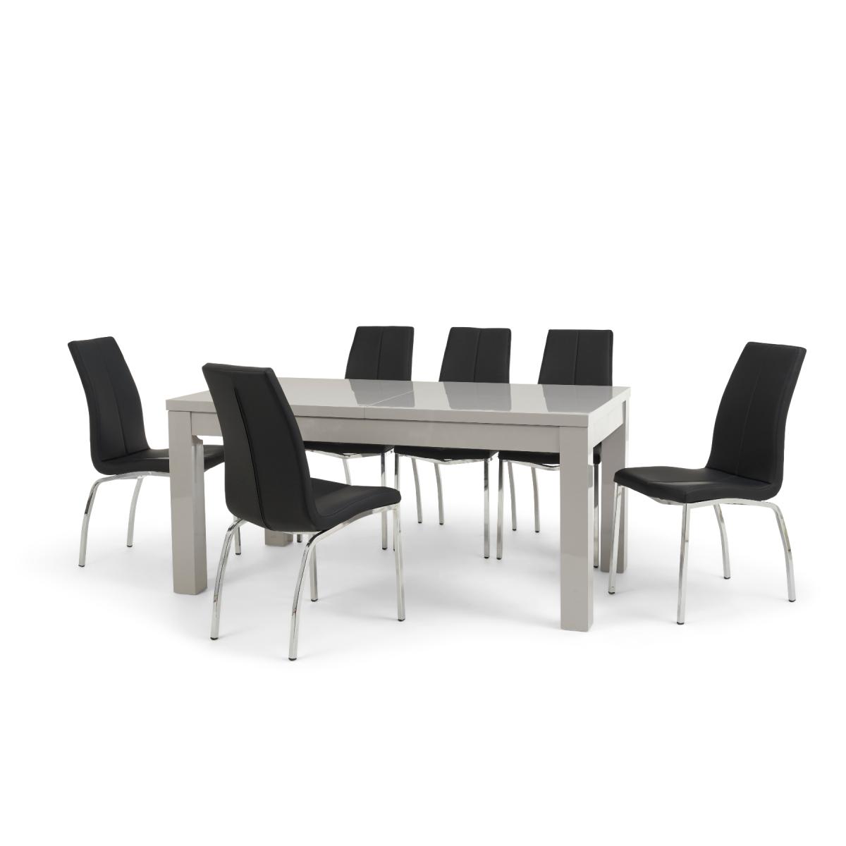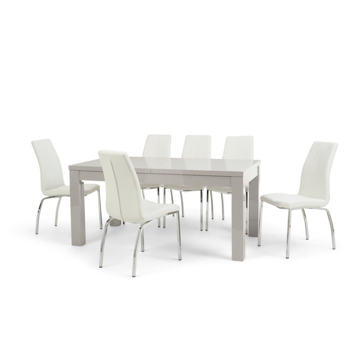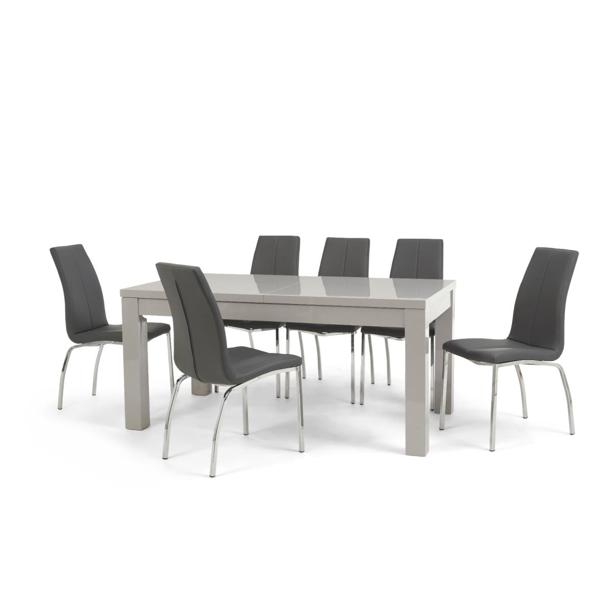 I love how this dining set offers a sleek, modern look with its high gloss finish and neutral grey tones, making it versatile for a range of interiors. The Extending Seattle table is a practical choice, particularly in spaces where you might need extra seating for guests, and the grey Marco chairs add a contemporary touch with their streamlined design. This set works well in minimalist, Scandinavian, or even industrial interiors, where its clean lines can shine. For styling tips, consider adding textured or colourful accessories like placemats, cushions, or centrepieces to soften the high gloss surface and create a more inviting dining environment. Pairing it with elements in wood or warm metals can also add contrast and warmth to the overall look.