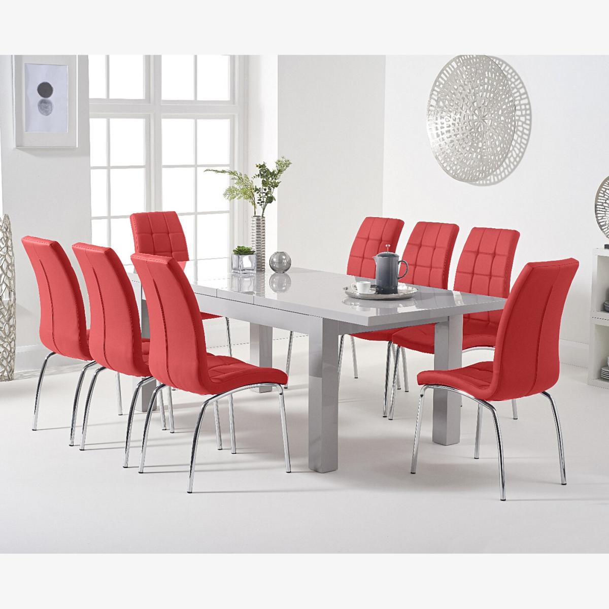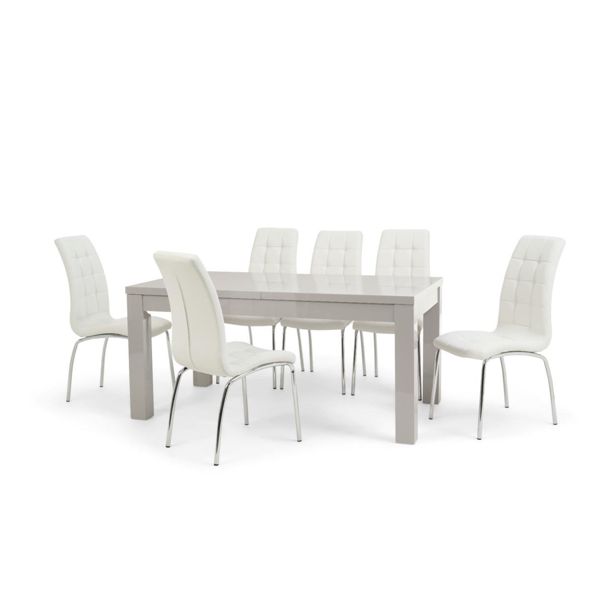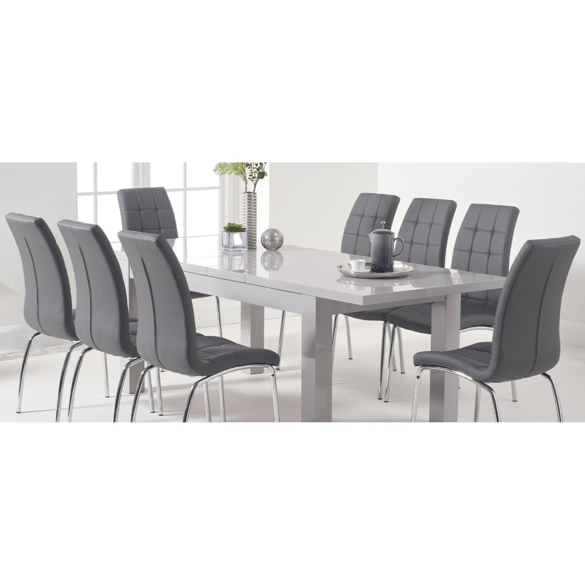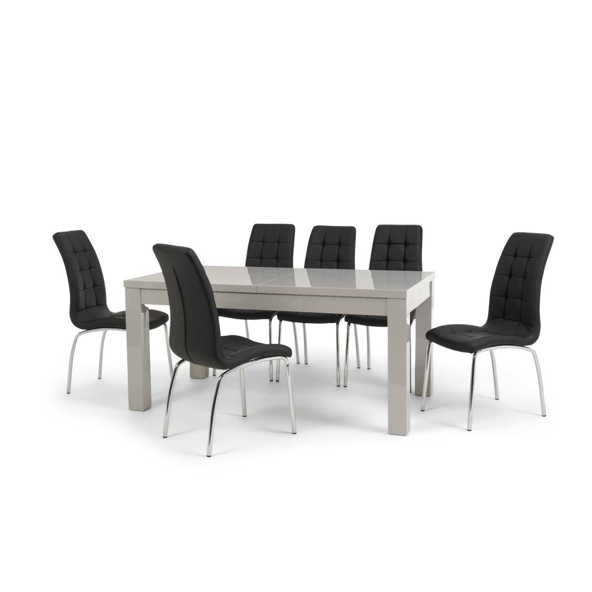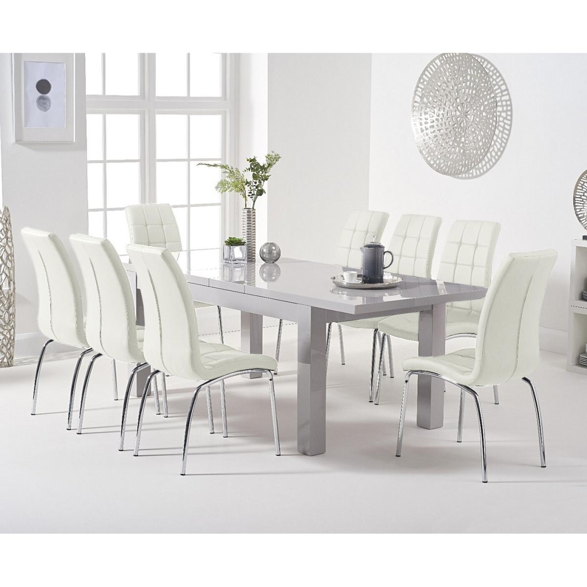 Extending Seattle 160cm Light Grey High Gloss Dining Table with 8 Cream Enzo Chairs