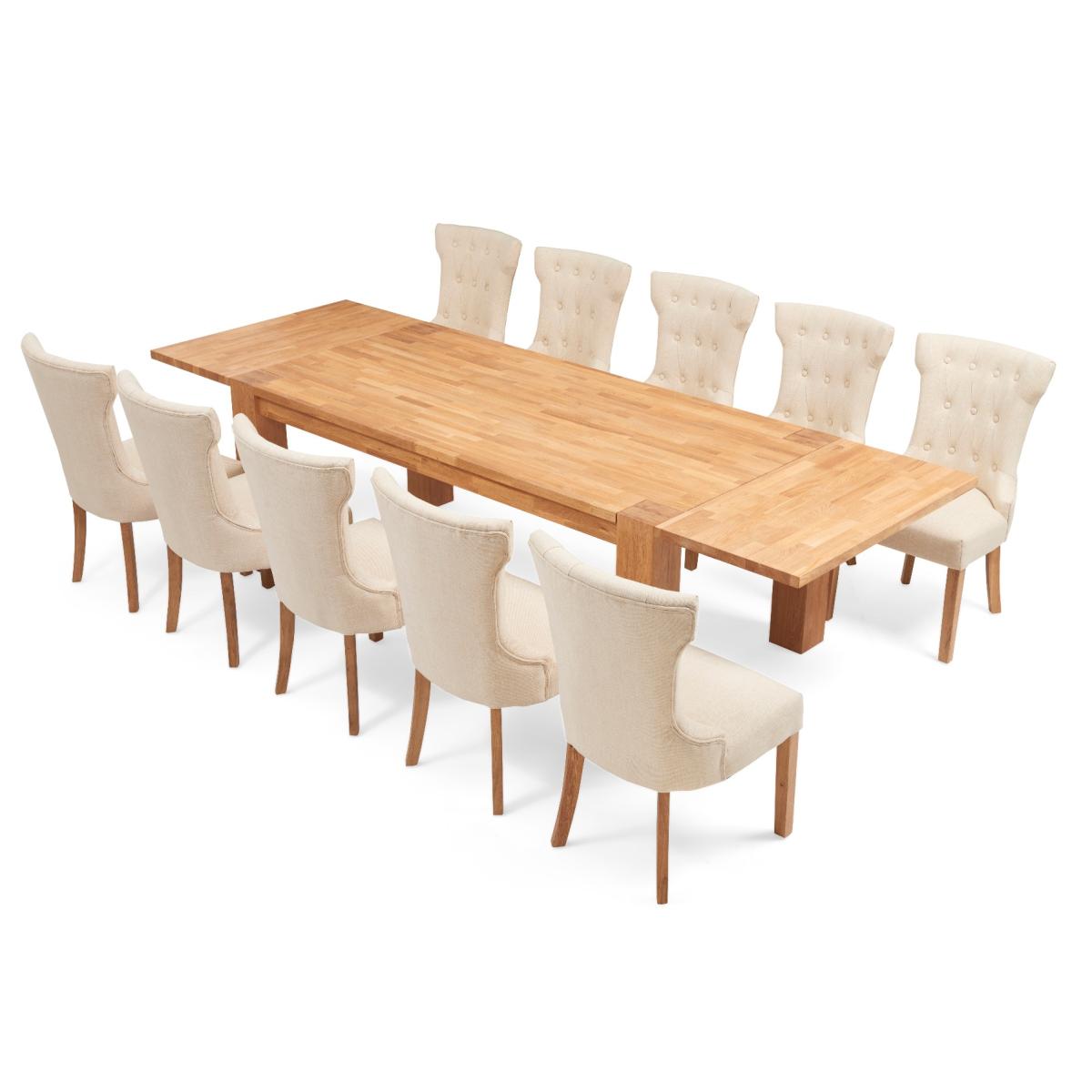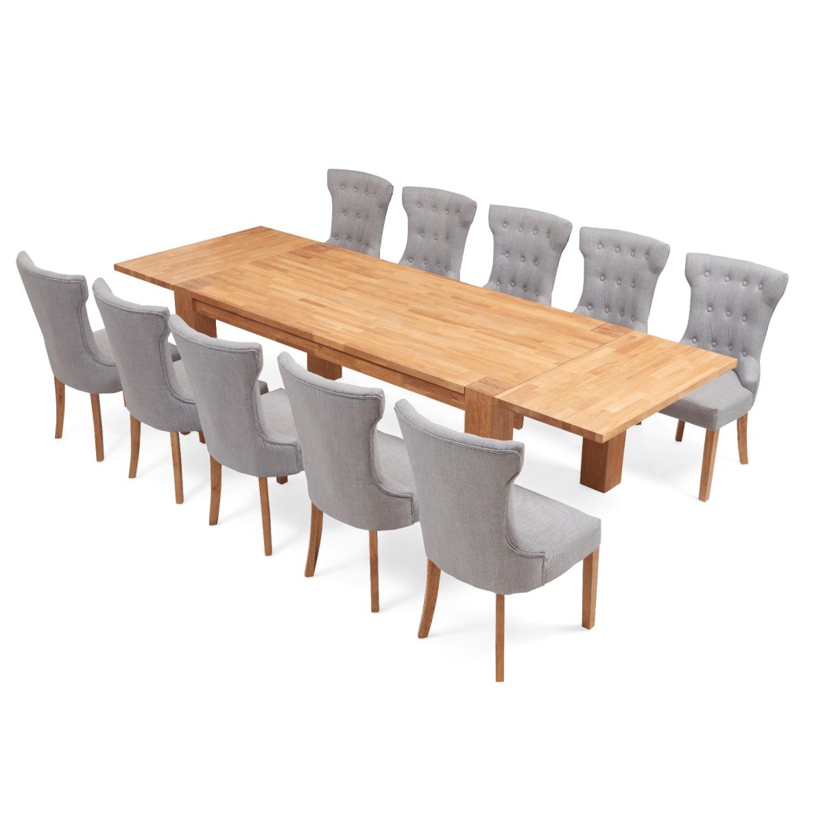 Extending Sheringham 200cm Solid Oak Dining Table With 8 Grey Clara Fabric Chairs