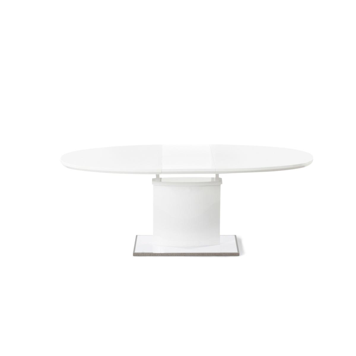 The Valzo collection creates the illusion of a levitating tabletop, with the upper raised above the handsome pedestal, resulting in a contemporary, striking appearance