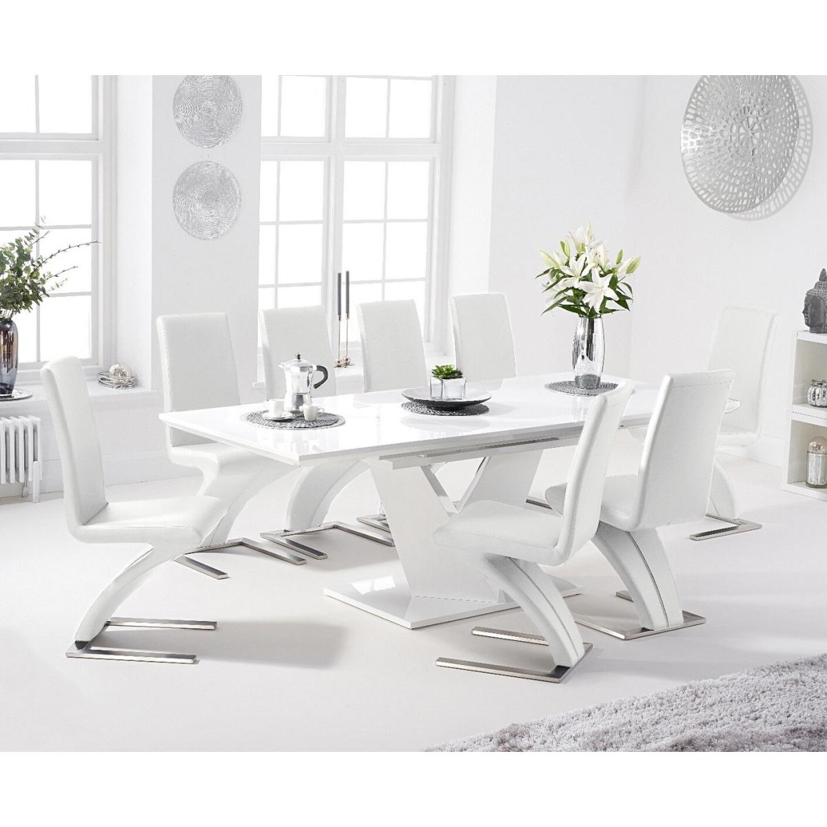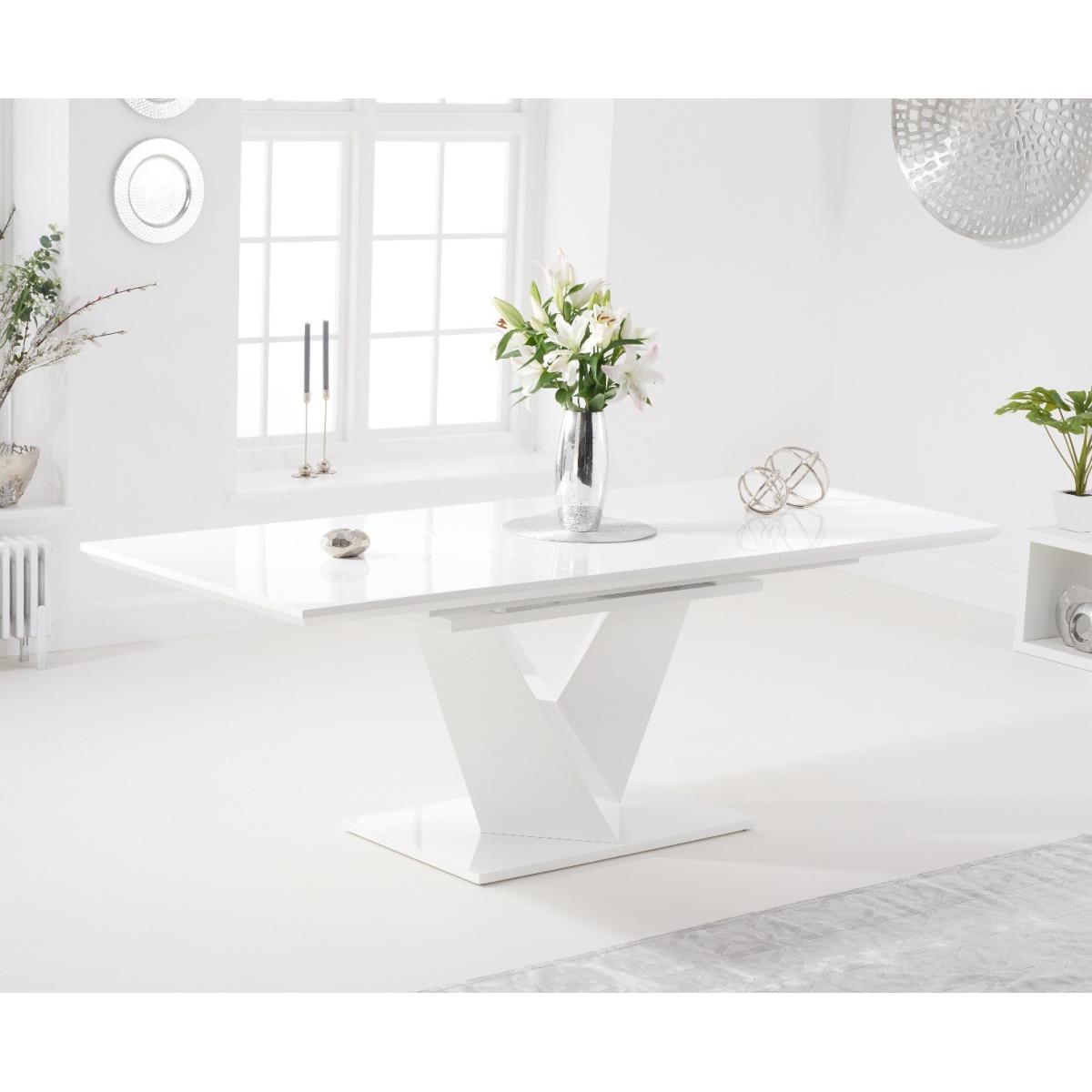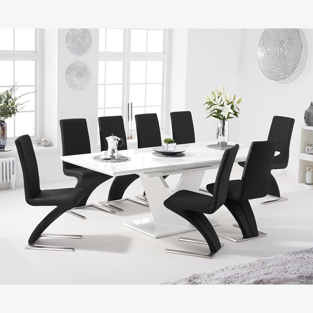 Extending Vittorio 160cm White High Gloss Dining Table With 10 Black Aldo Faux Leather Chairs