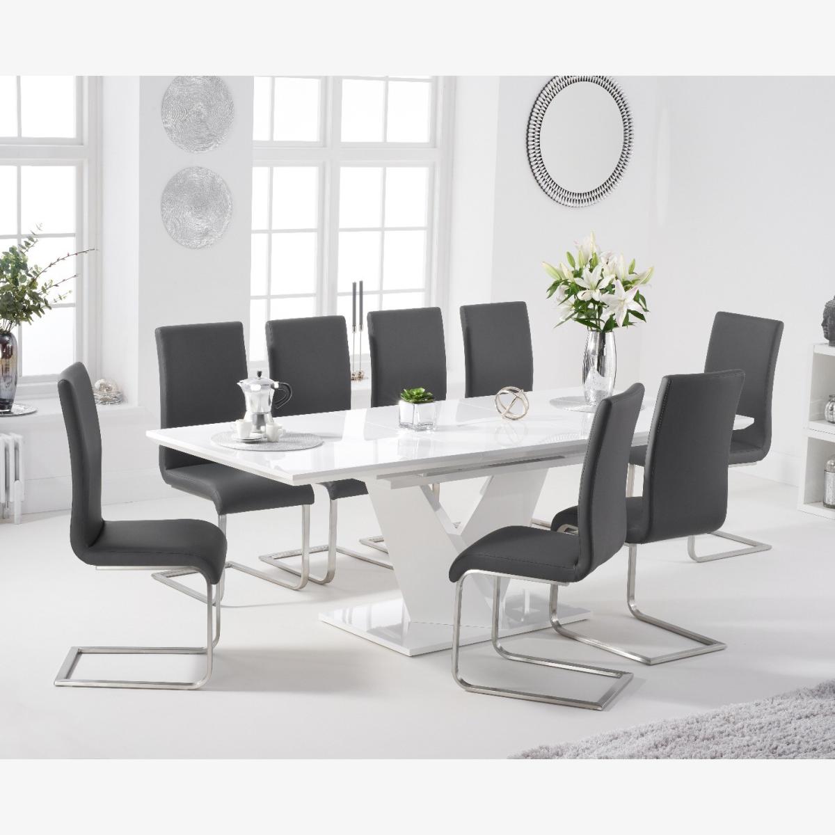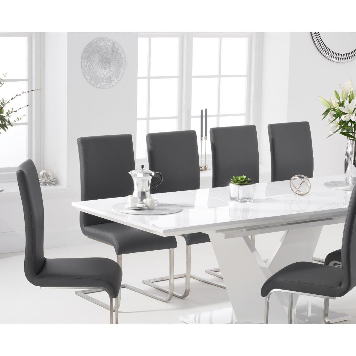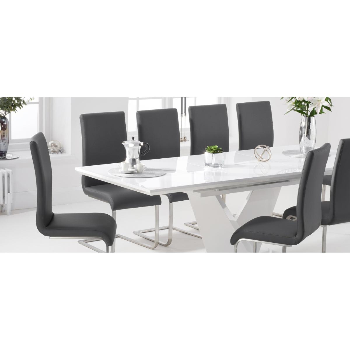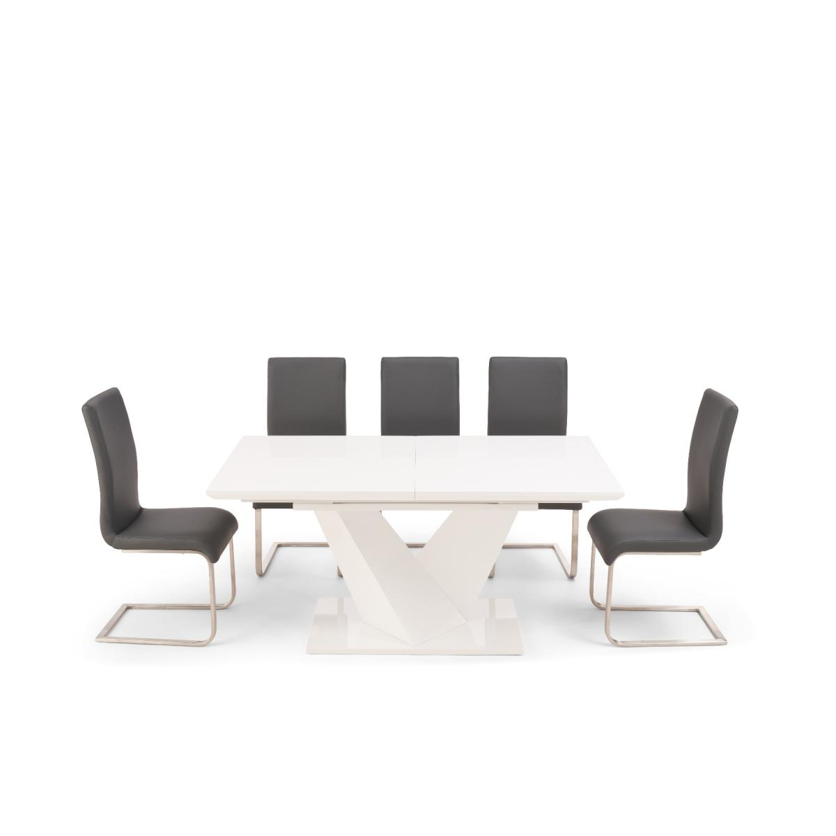 Extending Vittorio 160cm White High Gloss Dining Table with 6 Grey Austin Chairs