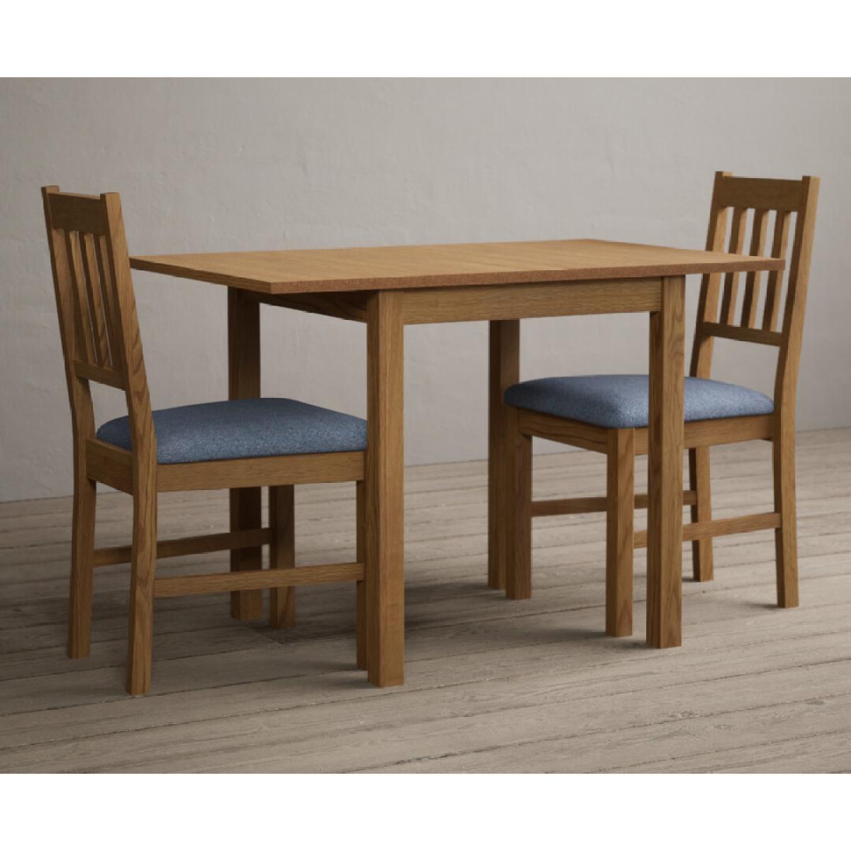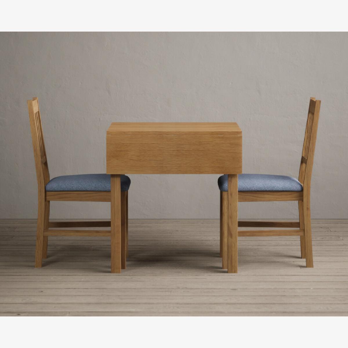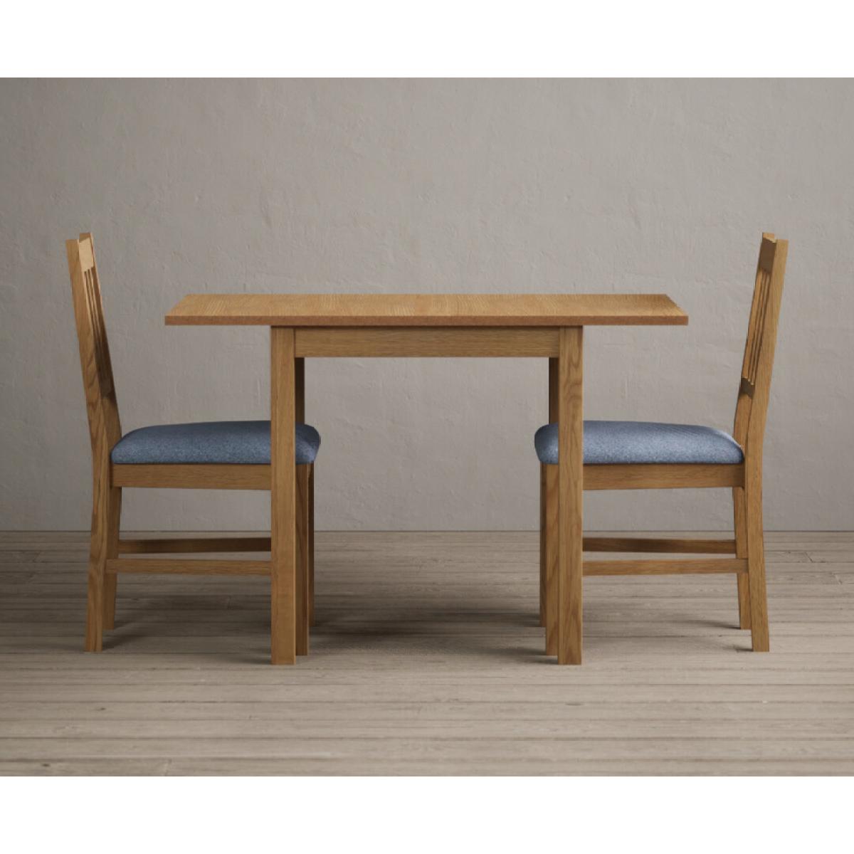 Extending York 70cm Solid Oak Dining Table With 2 Blue York Chairs