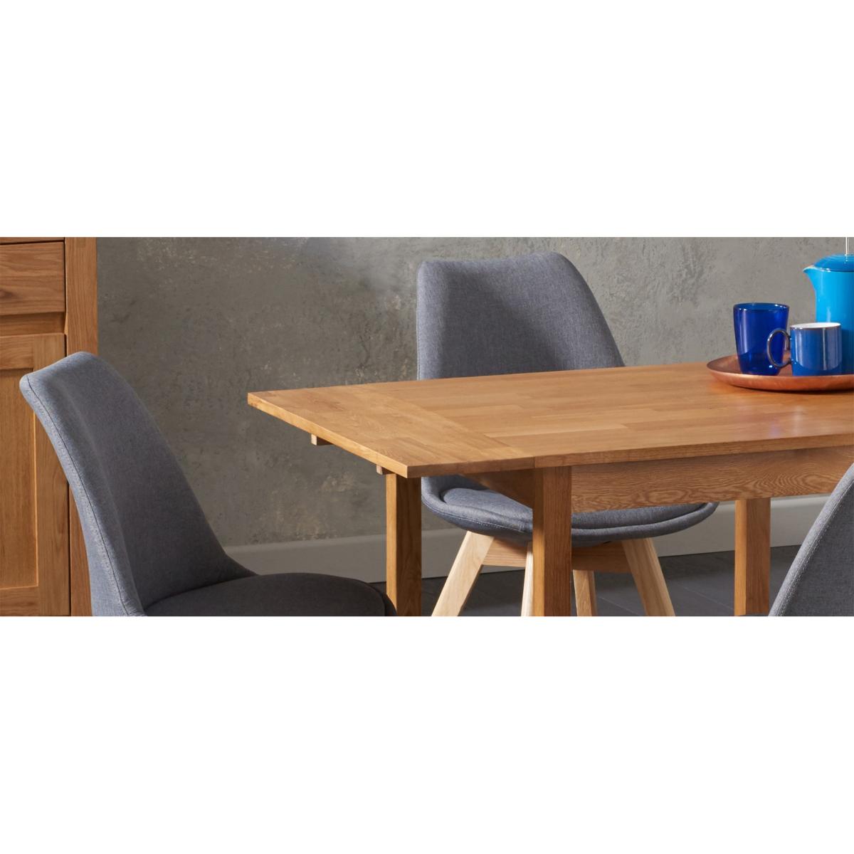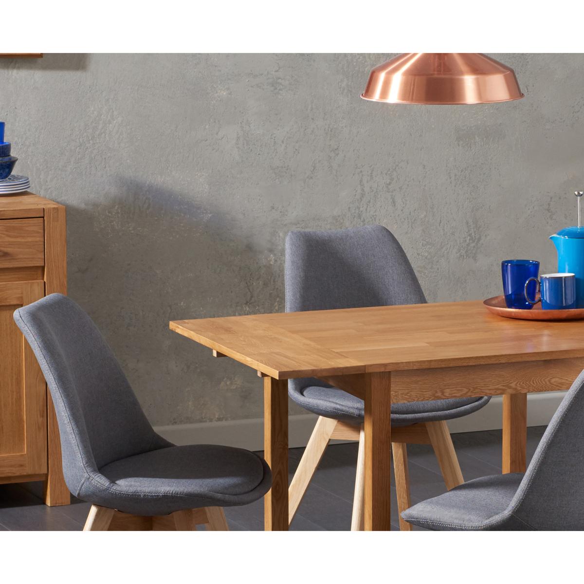 This dining set is a smart choice for those wanting a blend of natural warmth and contemporary style. The solid oak table provides durability and timeless appeal, making it versatile enough for both modern and rustic interiors. The dark grey Orson fabric chairs add a touch of sophistication and are practical for everyday use, thanks to their stain-resistant fabric. It works well in open-plan kitchens, cosy dining areas, or even as a breakfast table in a relaxed, Scandi-inspired space. For styling, consider adding some colourful or textured placemats to break up the wood, and a statement centrepiece or a small vase of fresh flowers can bring the table to life without overwhelming its clean lines. Keep the surroundings neutral or soft to let the natural oak be the focus, and you'll have a dining set that’s both functional and stylish.
