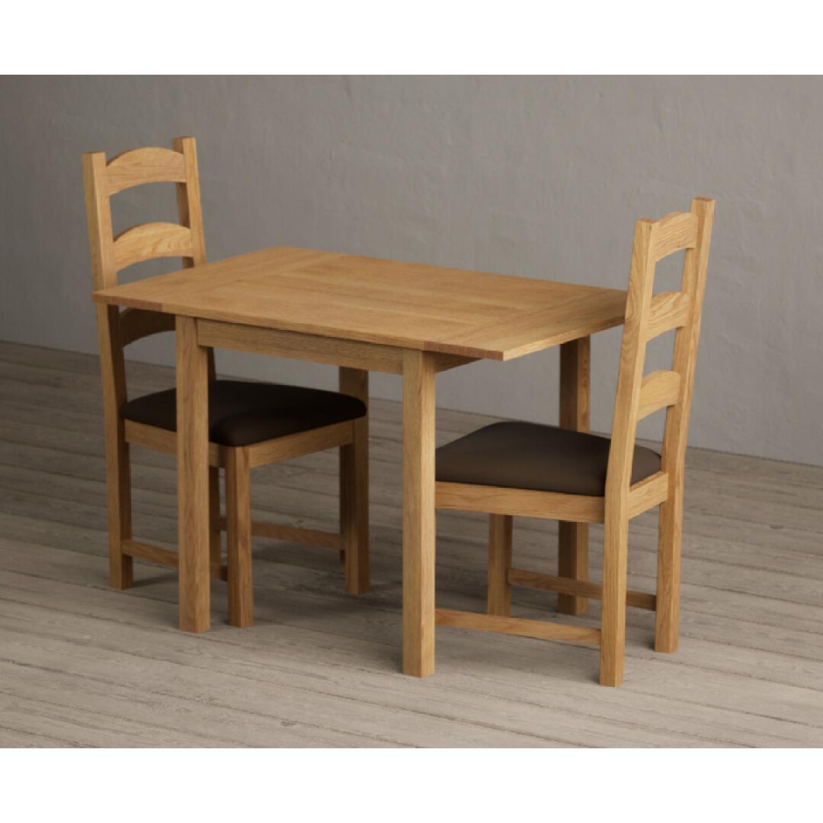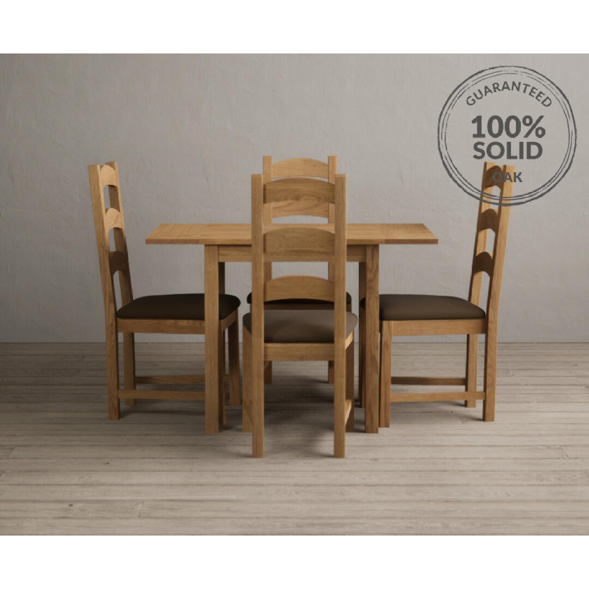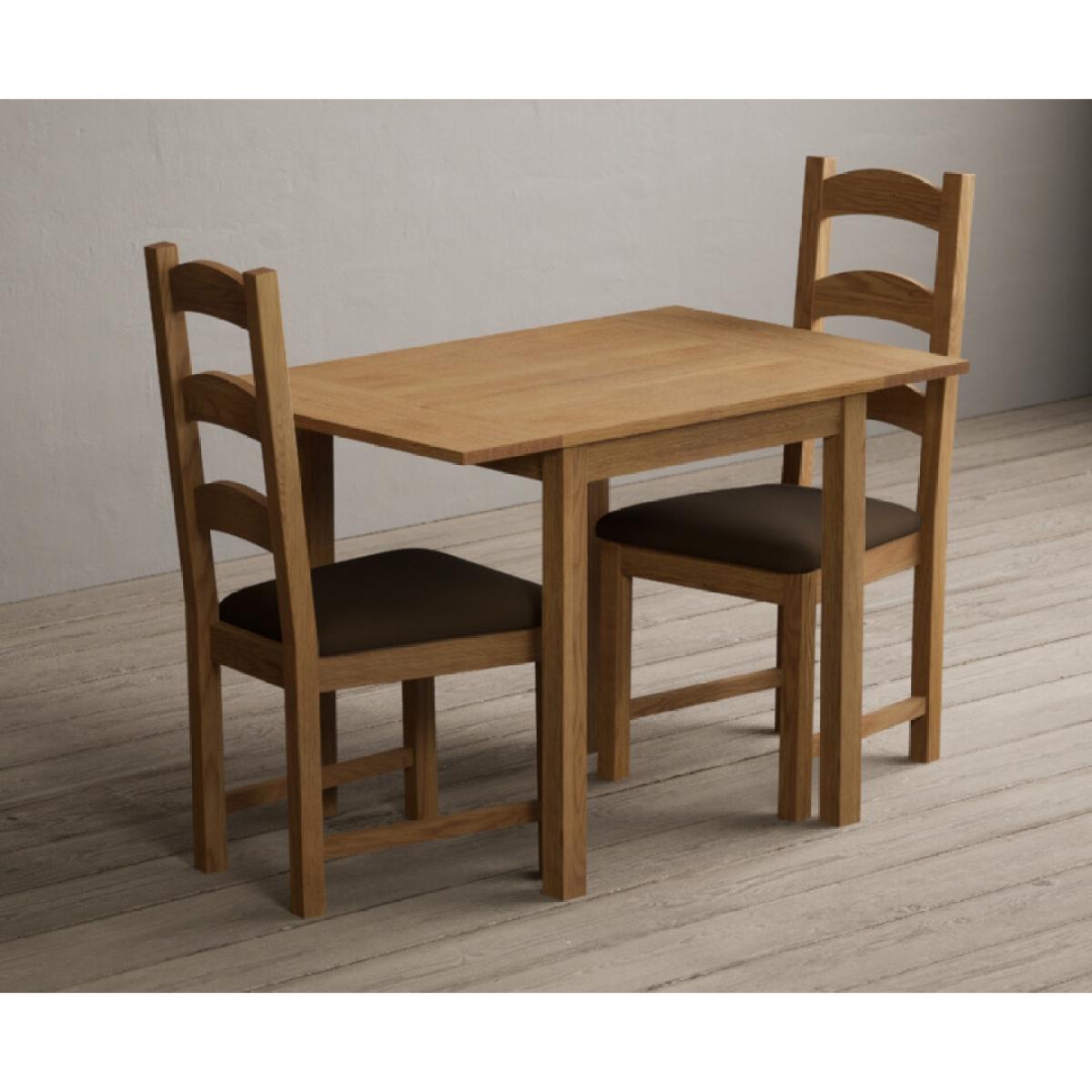 Extending York 70cm Solid Oak Drop Leaf Dining Table with 2 Brown Alton Chairs