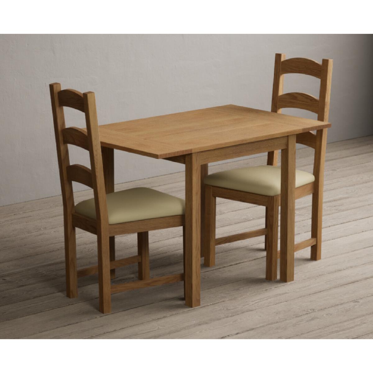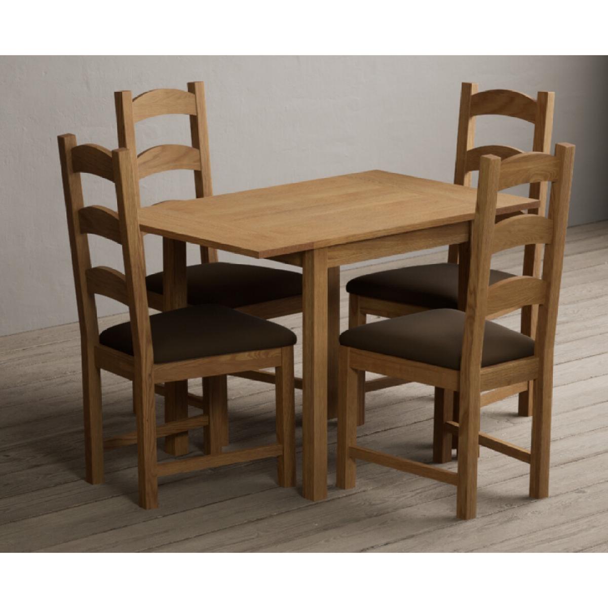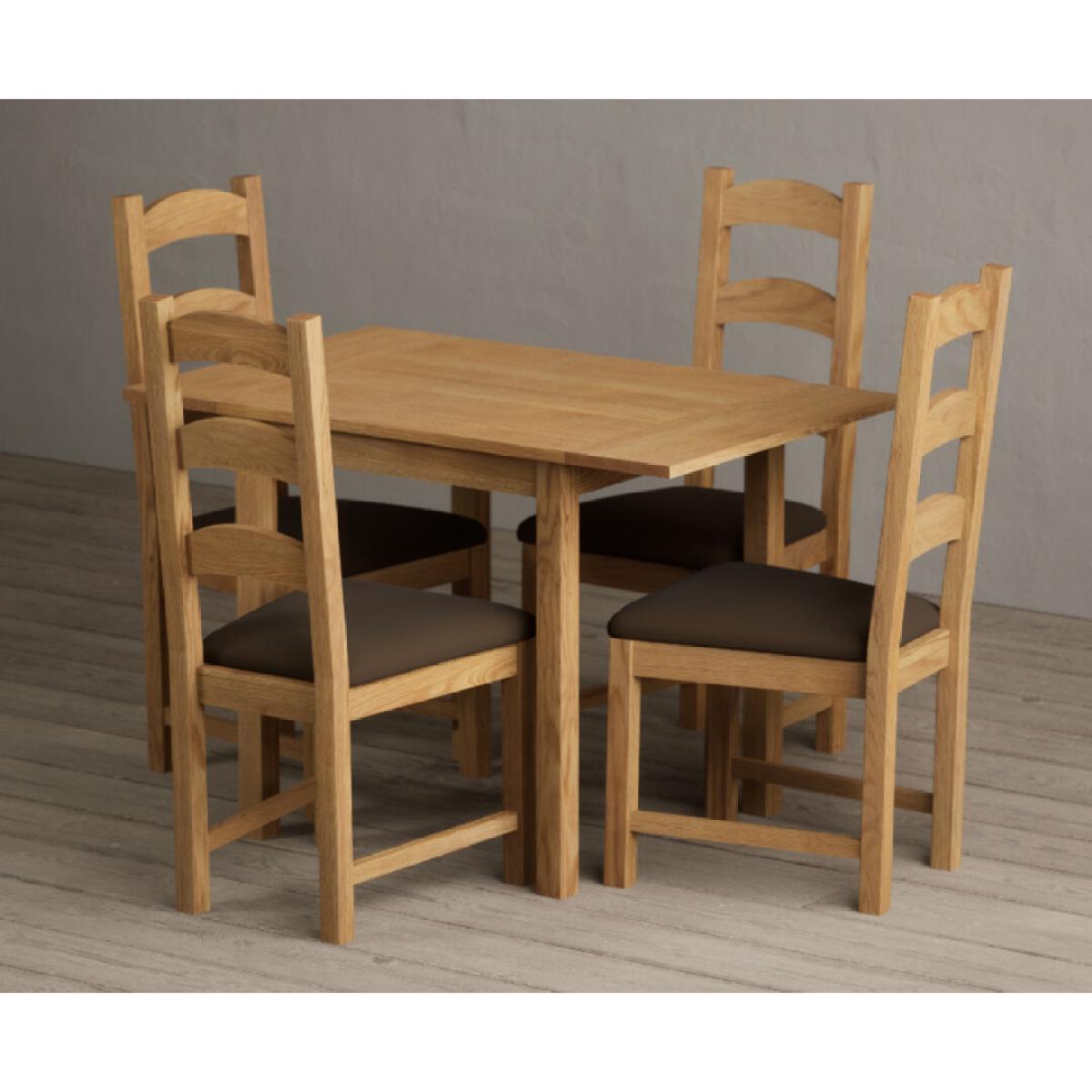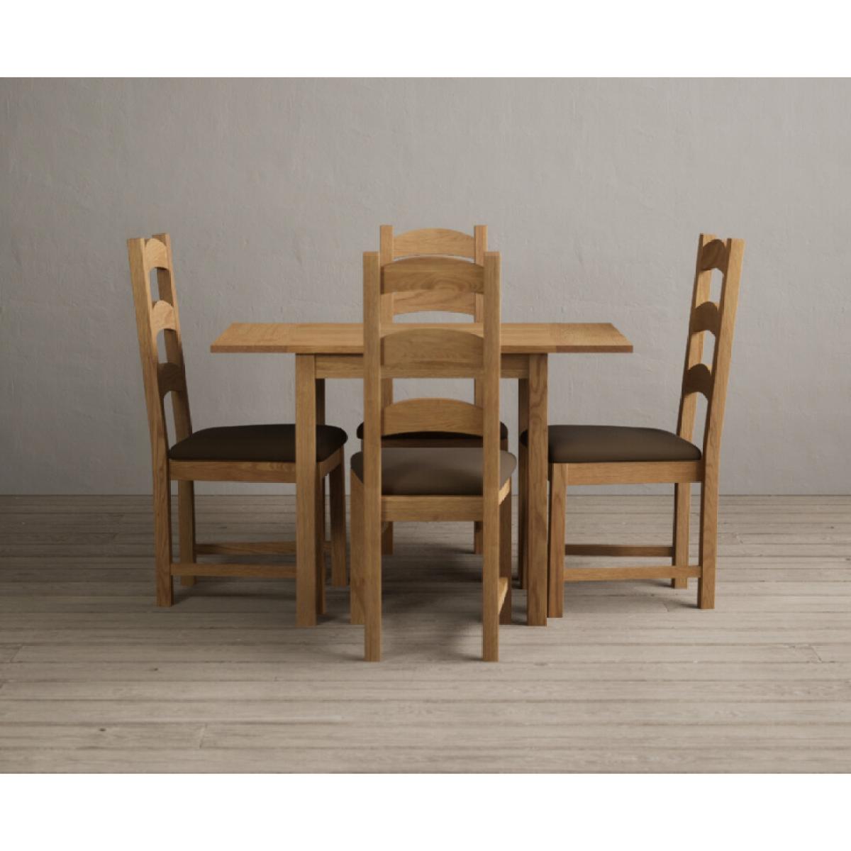 Extending York 70cm Solid Oak Drop Leaf Dining Table with 2 Brown Alton Chairs