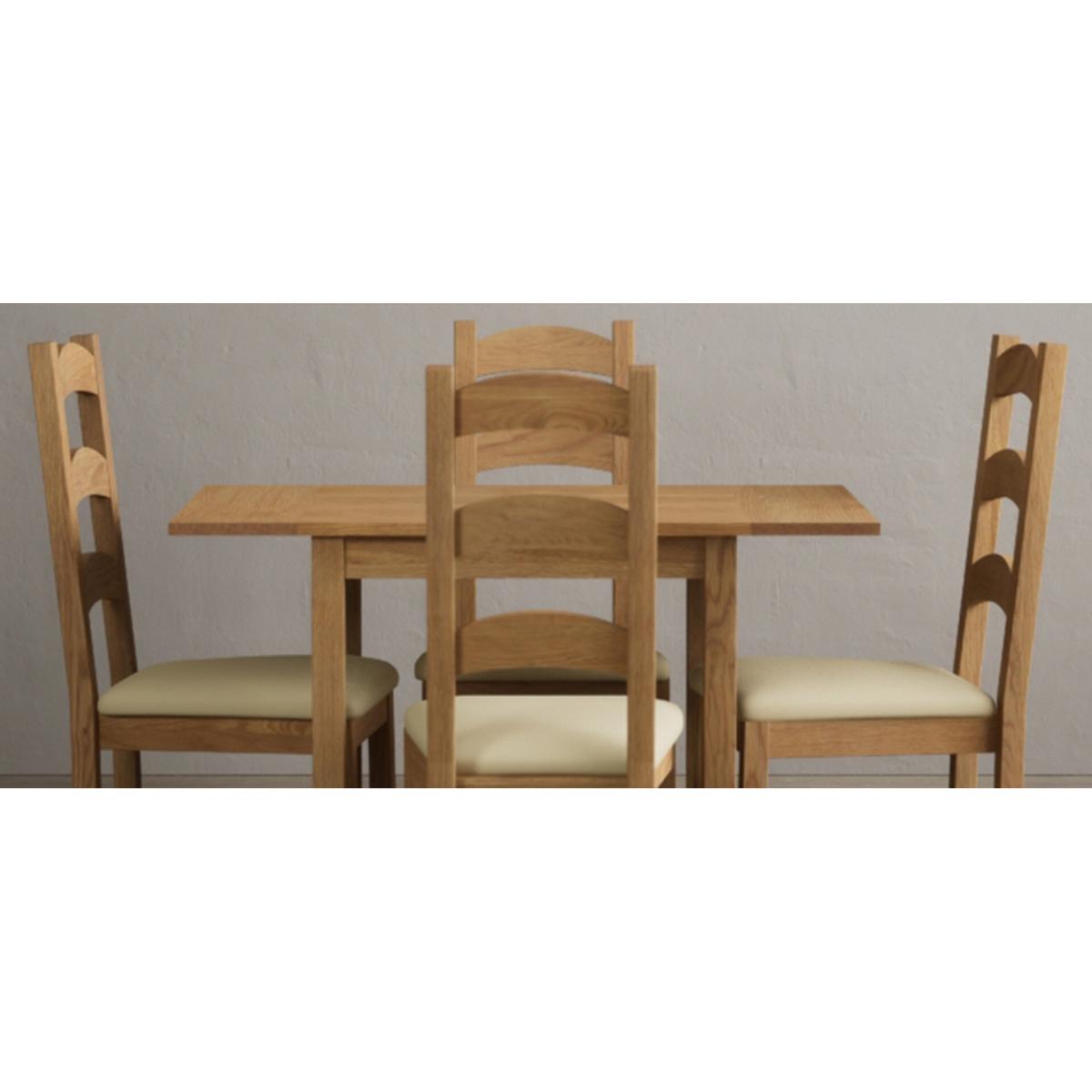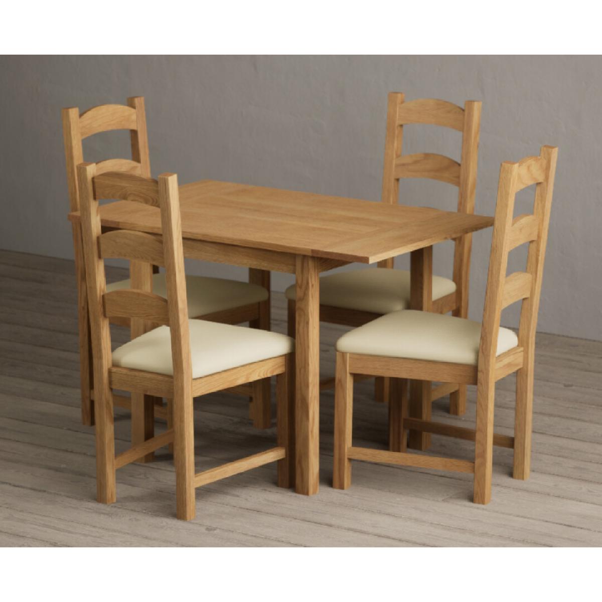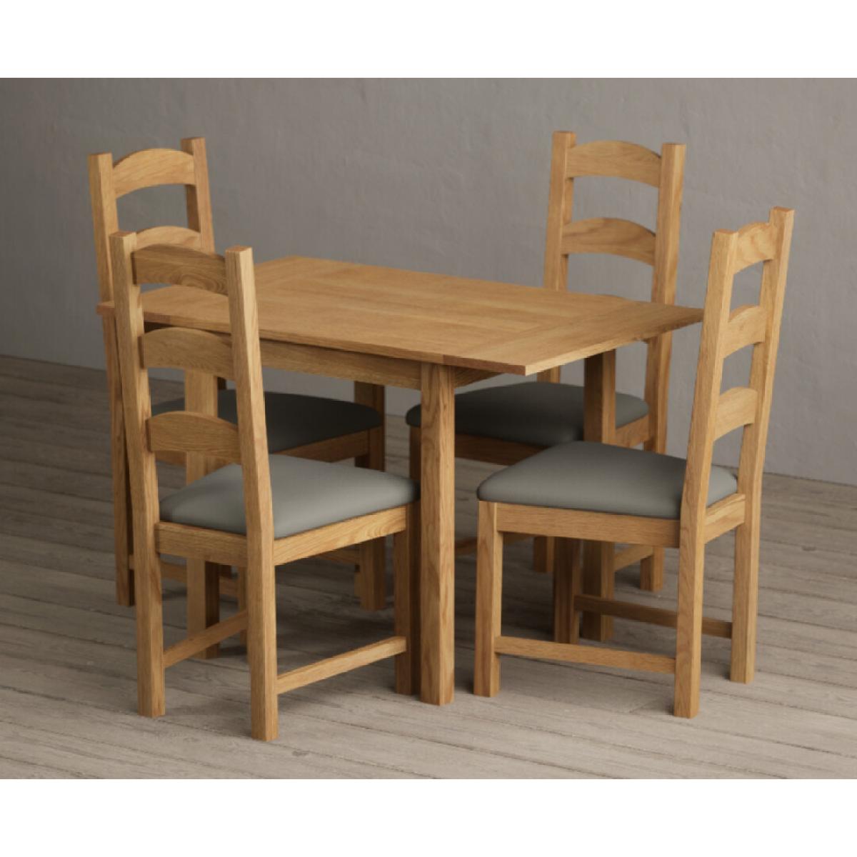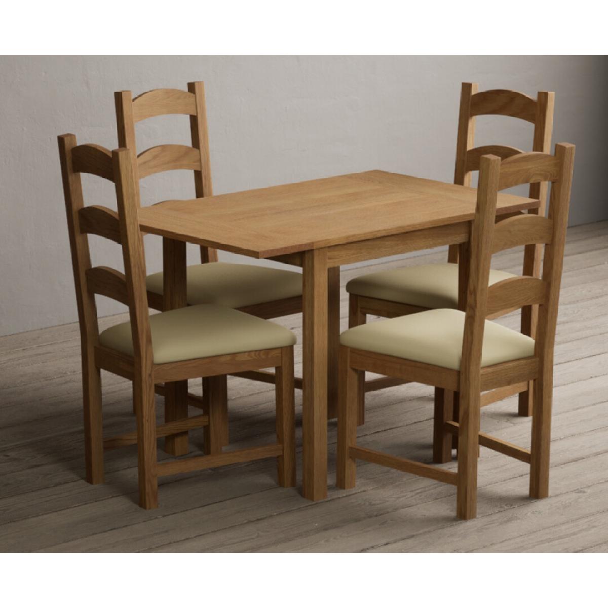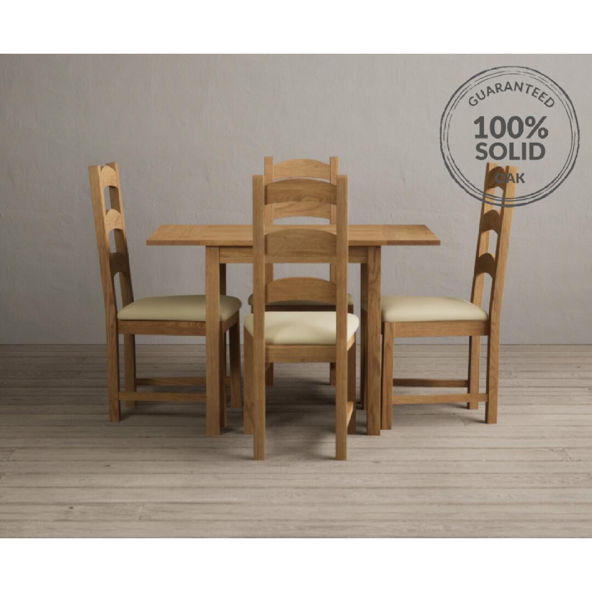 The Extending York 70cm Solid Oak Dining Table with Alton Chairs is a stylish space-saving dining set with an extending solid oak table and matching chairs.